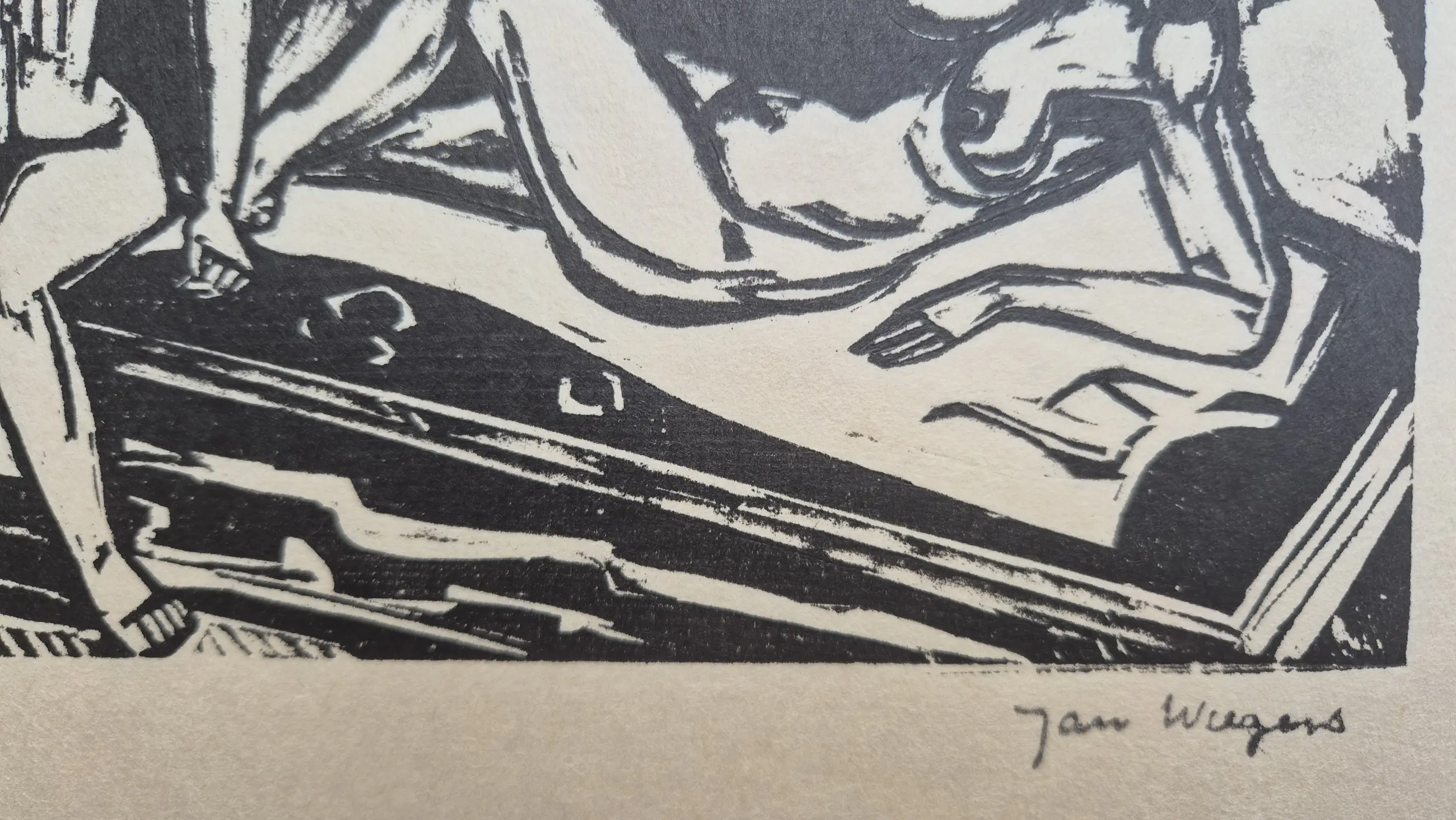 Expressieve houtsnede van De Ploeg kunstenaar Jan Wiegers.
