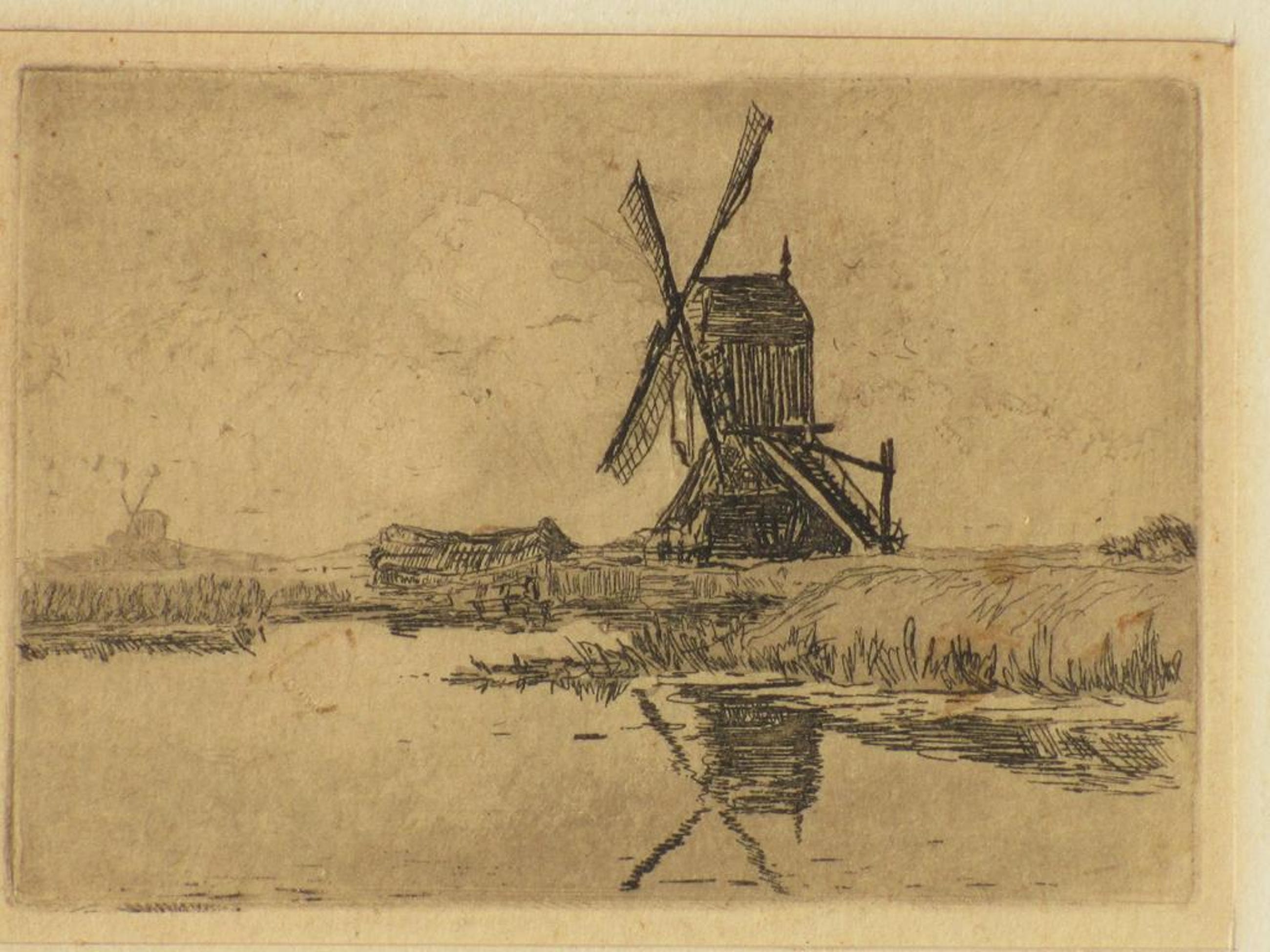 Ets onder passepartout, beeldmaat 7x10,5, ondergrond 14x17