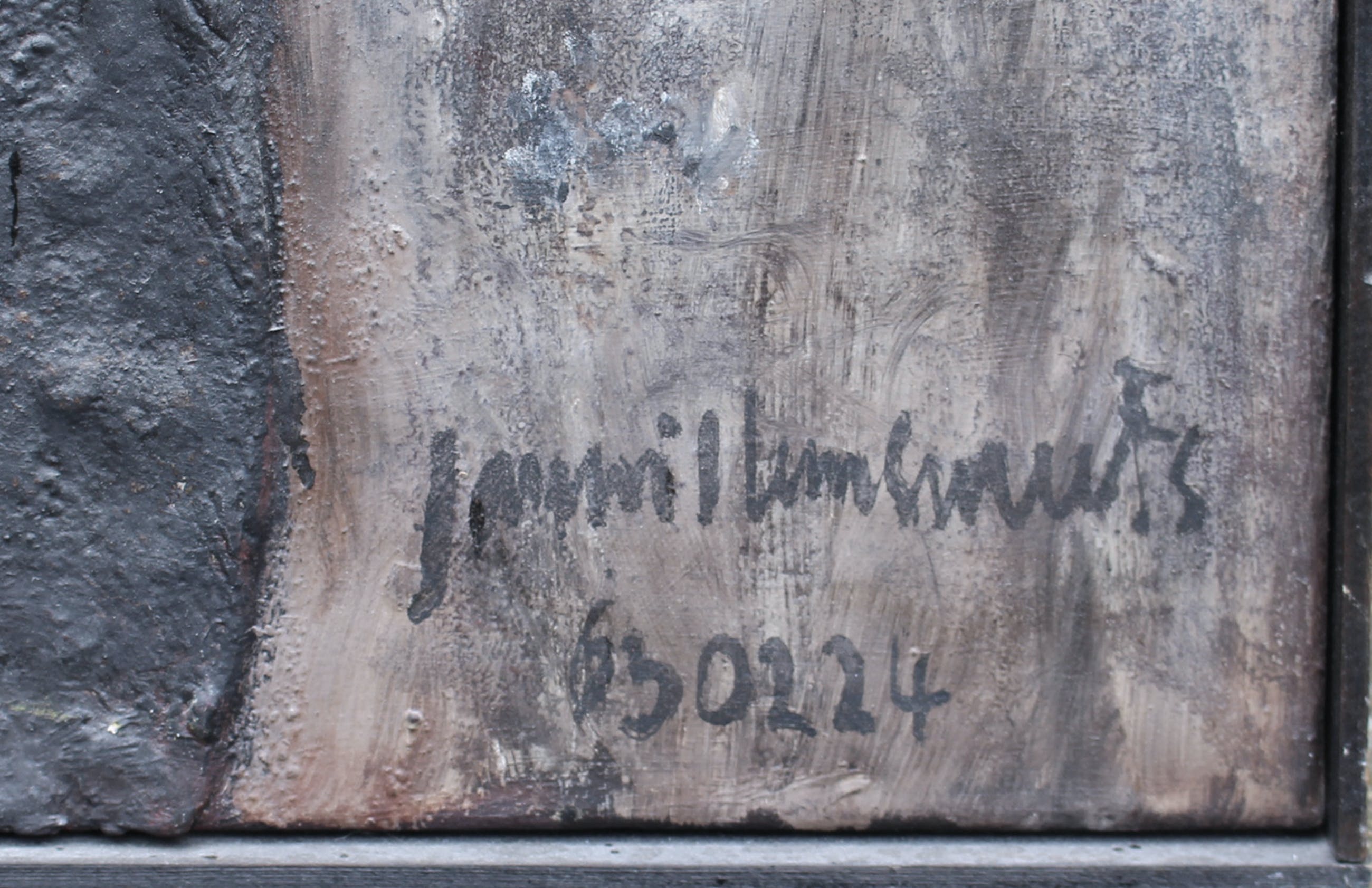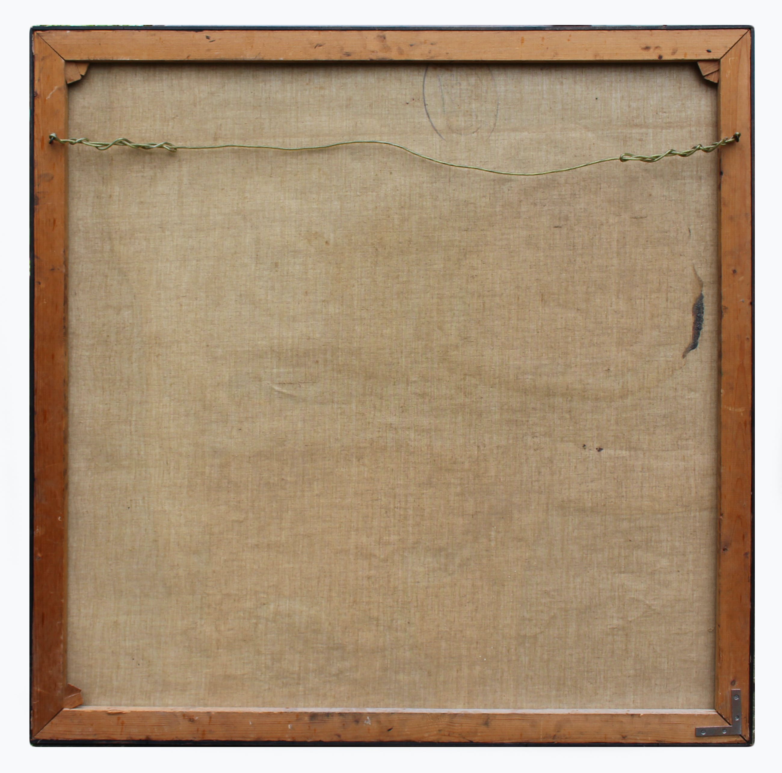 gemengde techniek (olieverf en repen canvas) gesigneerd rechtsonder met datering doekmaat: 100 x 100 cm.