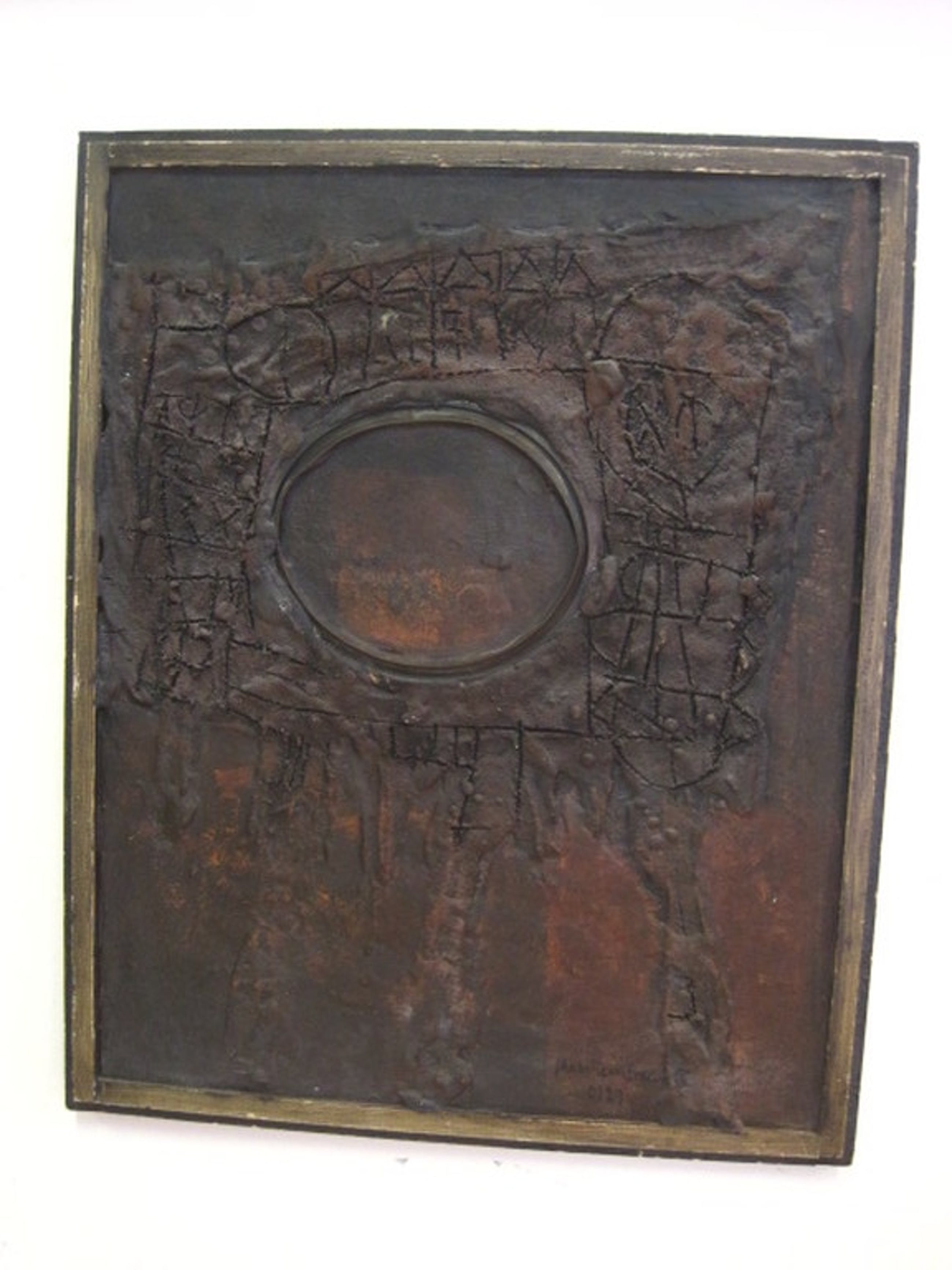Medium /Techniek : pva, zand, aluminium, olieverf op doek