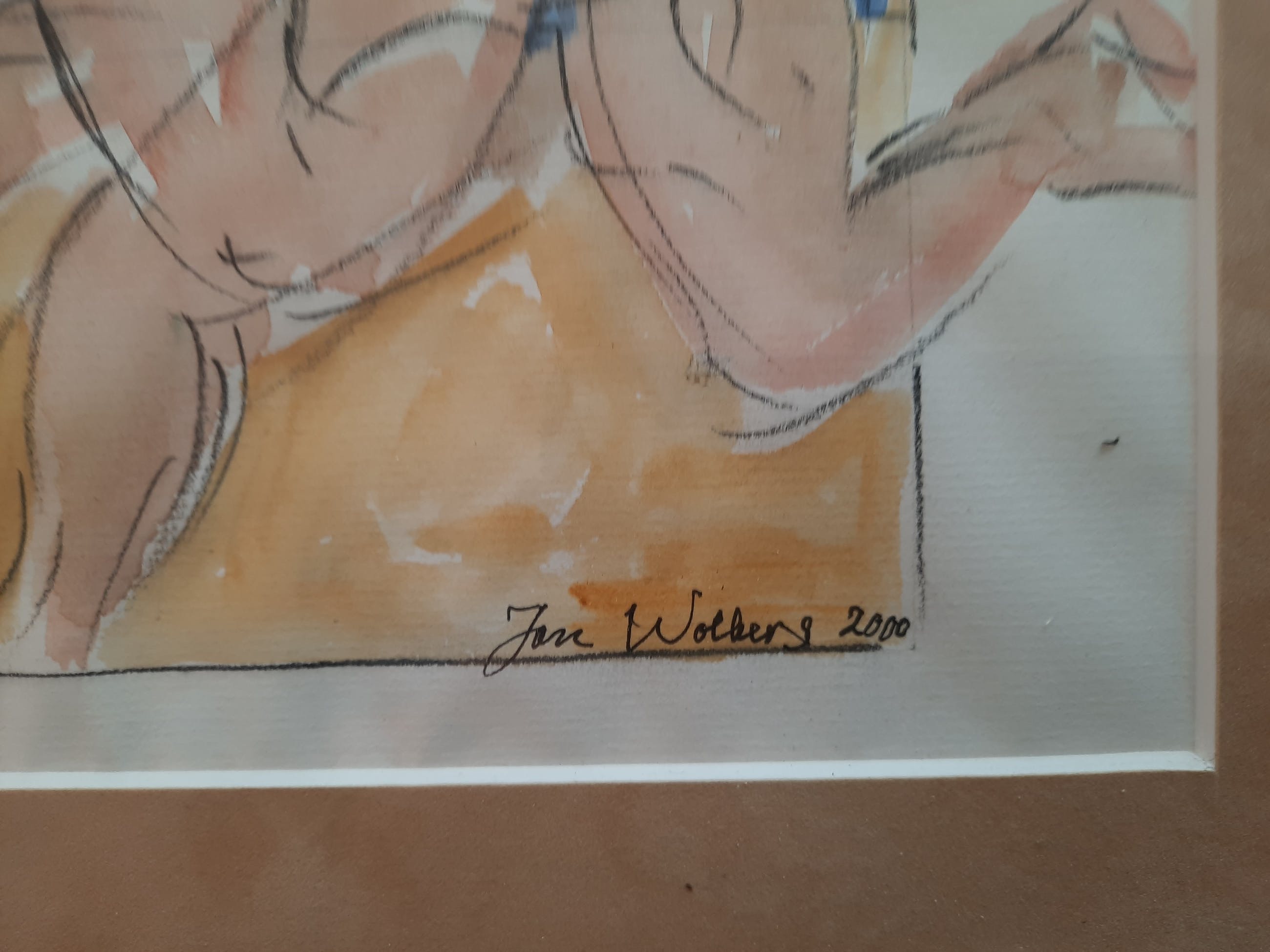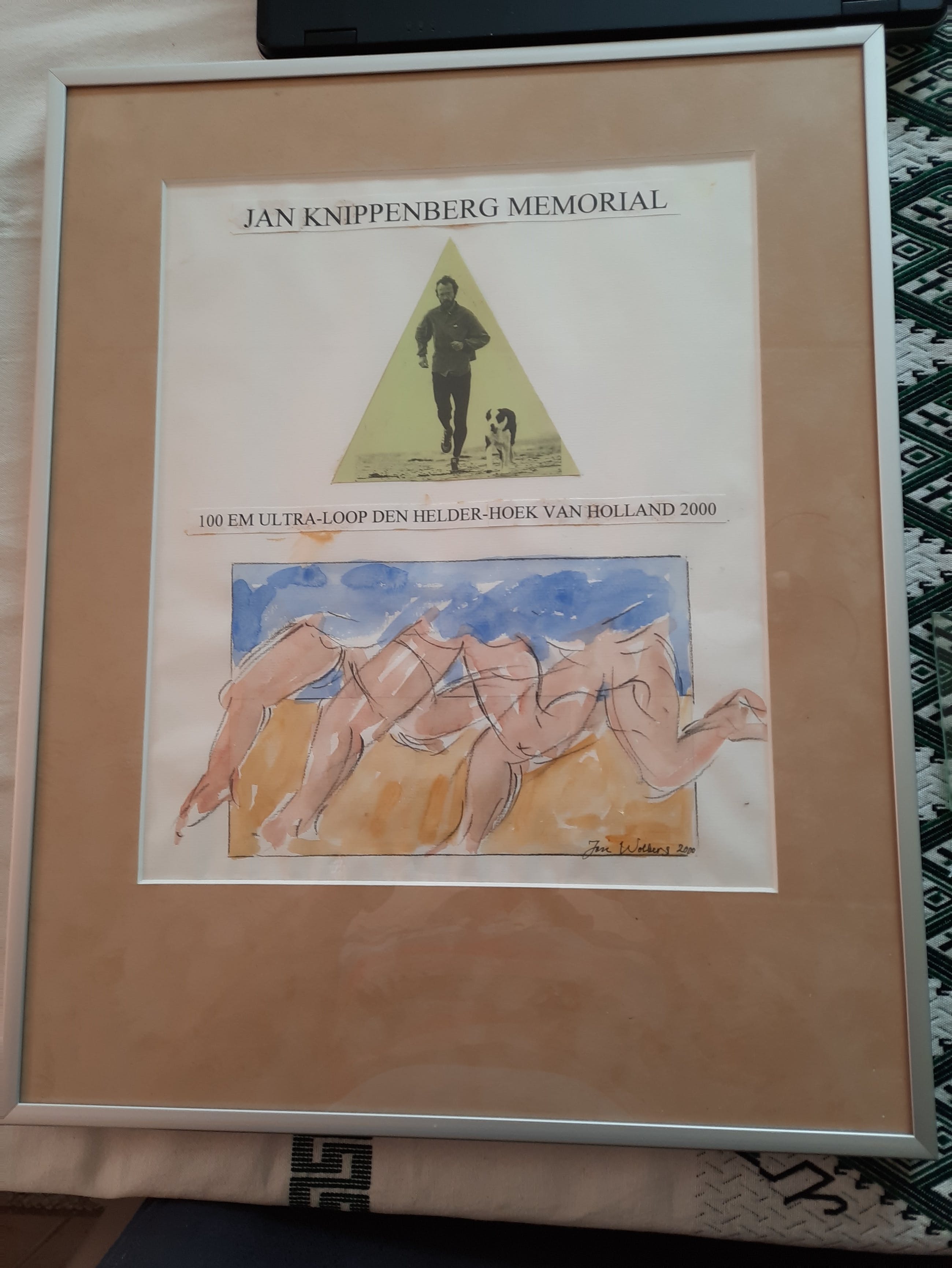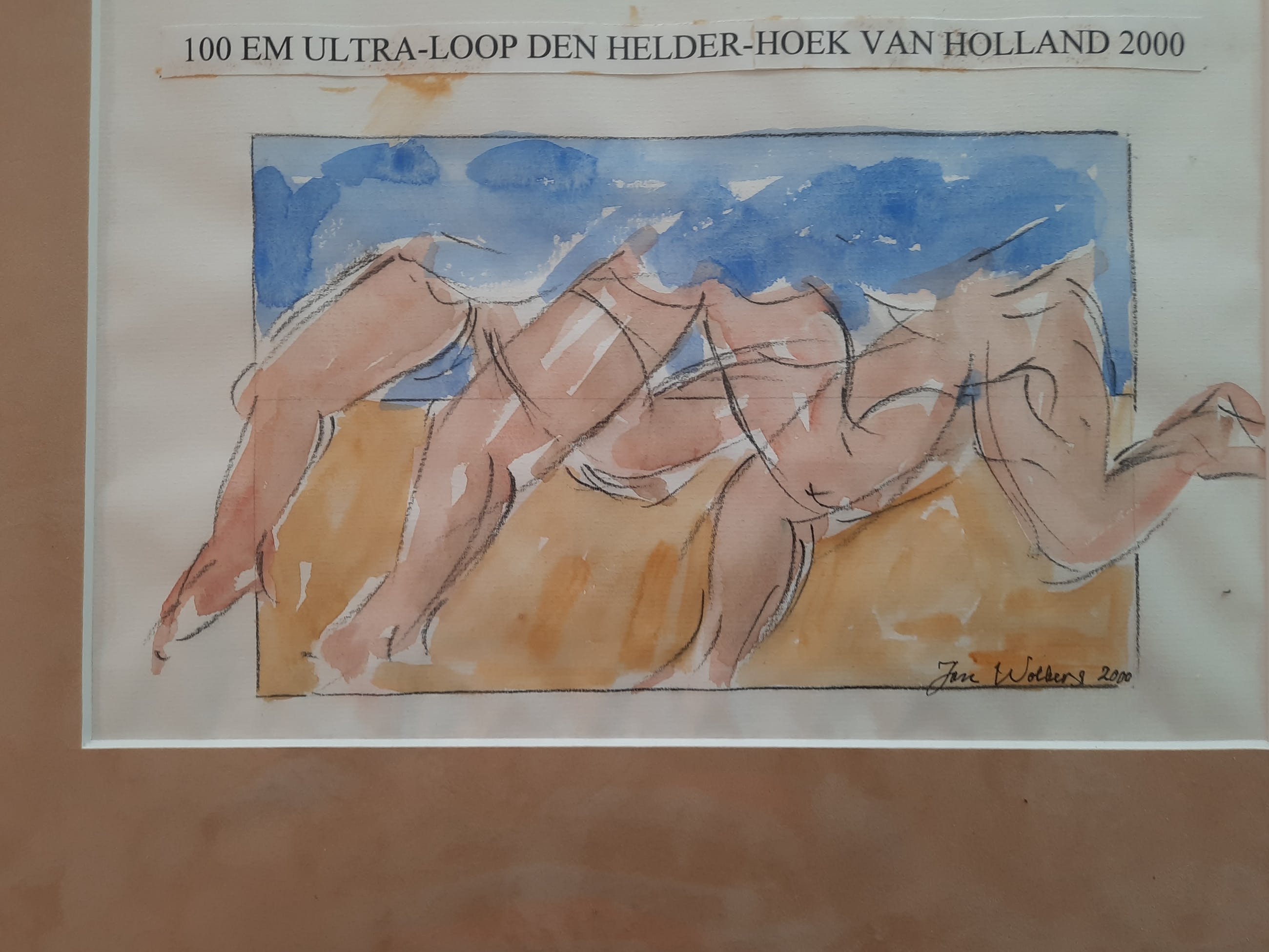In 2000 gekregen van Jan Wolkers. Het was een ontwerp voor een T-shirt voor leerlingen die deelnamen aan een sportief evenement (De Jan Knippenberg Memorial) Het waren leerlingen van OSG De Hogeberg op Texel, de school waar de zoons van Jan Wolkers (Bob en Tom) ook op hebben gezeten. Het kunstwerk is een samengesteld werkstuk bestaand uit knip- en plakwerk en een originele en unieke aquarel van Jan. Jan noemde het werk; "Dikke benen", verwijzend naar de gespierde benen van de deelnemers aan de Knippenberg-loop.