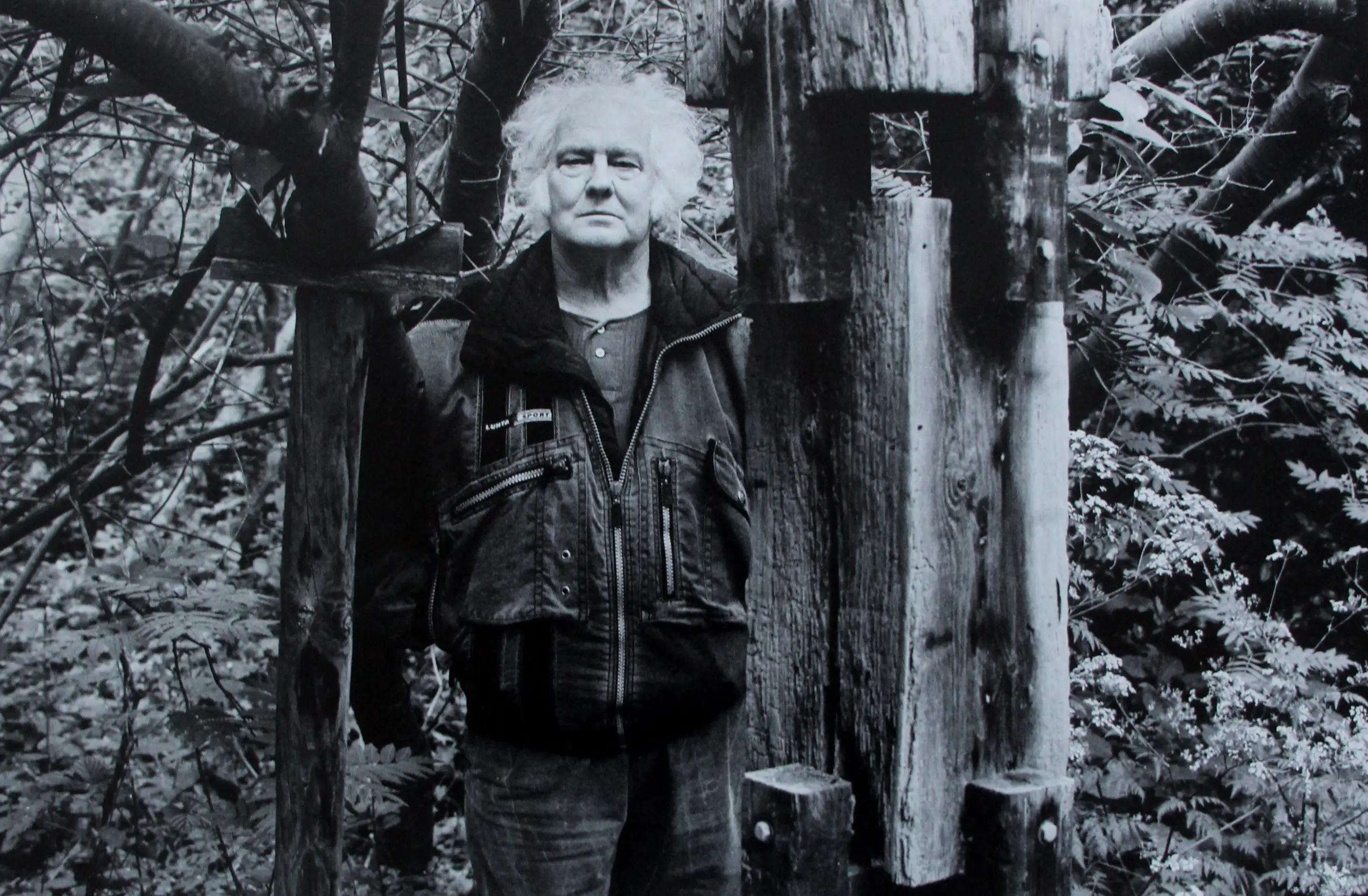 Karakteristieke foto door Steye Raviez (1942-2017). Fotografeerde Jan Wolkers in de natuurlijke omgeving van zijn woning op Texel. Gemaakt voor de serie Winterbeelden in 1995. Afmetingen blad: H31 x b44cm. Afbeeldingen voorstelling: H27 x b40cm.