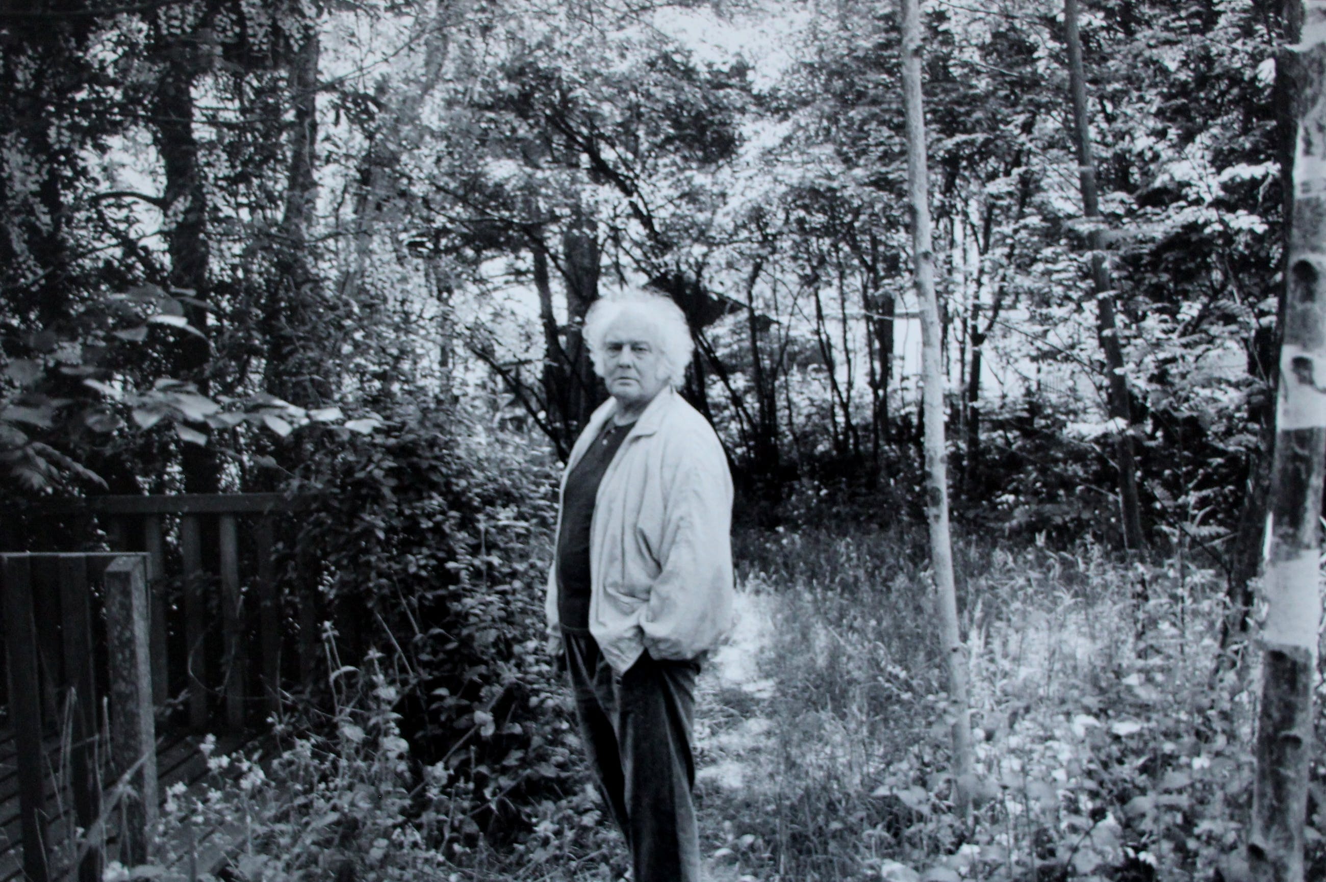 Karakteristieke foto door Steye Raviez (1942-2017). Fotografeerde Jan Wolkers in de natuurlijke omgeving van zijn woning op Texel. Gemaakt voor de serie Winterbeelden in 1995. Afmetingen blad: H31 x b44cm. Afbeeldingen voorstelling: H27 x b40cm.