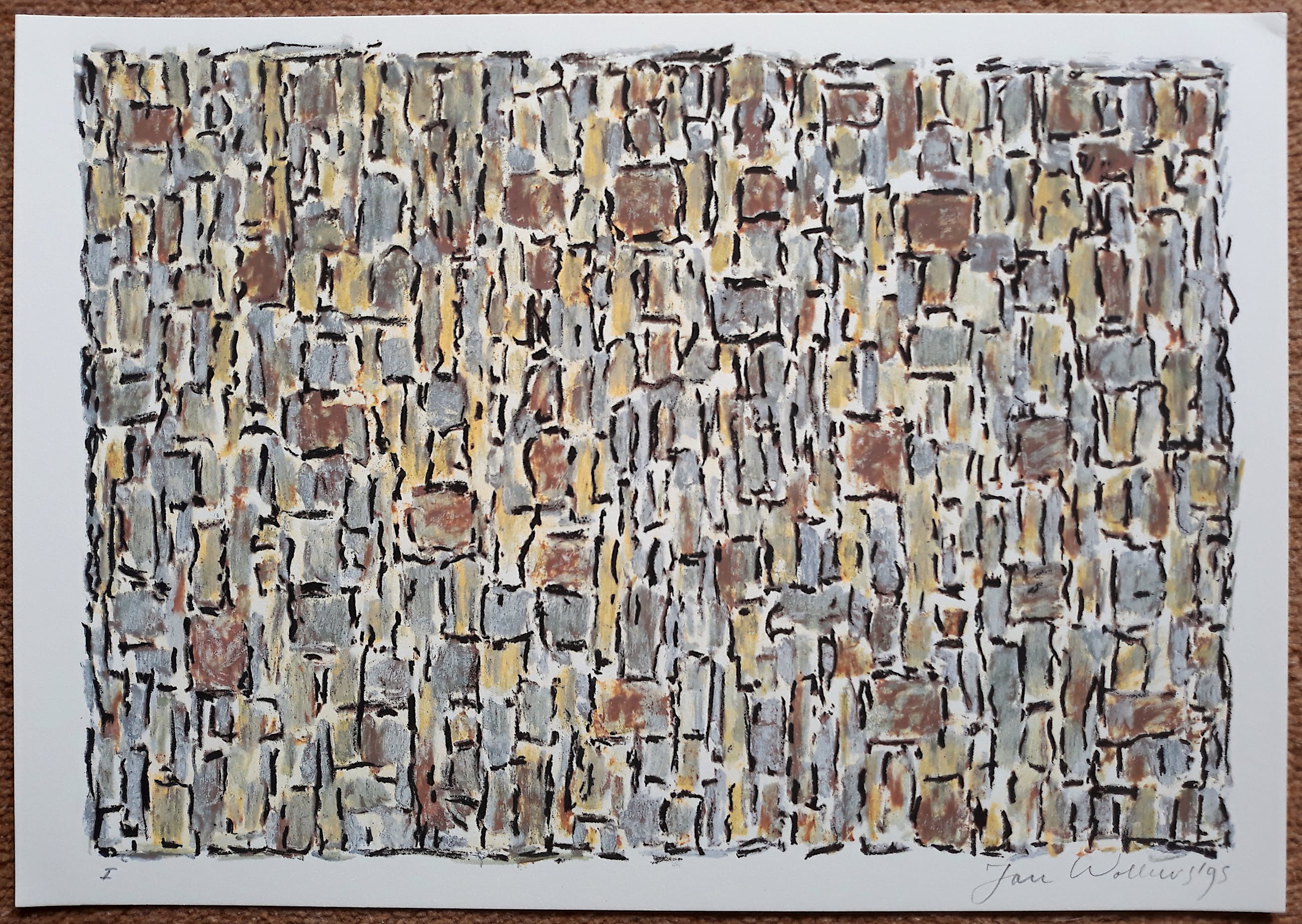 Mooie, gestructureerde compositie van Jan Wolkers uit de portfolio Winterbeelden. Zeefdruk op papier, met potlood gesigneerd, gedateerd (‘95) en genummerd (I). In uitstekende conditie.