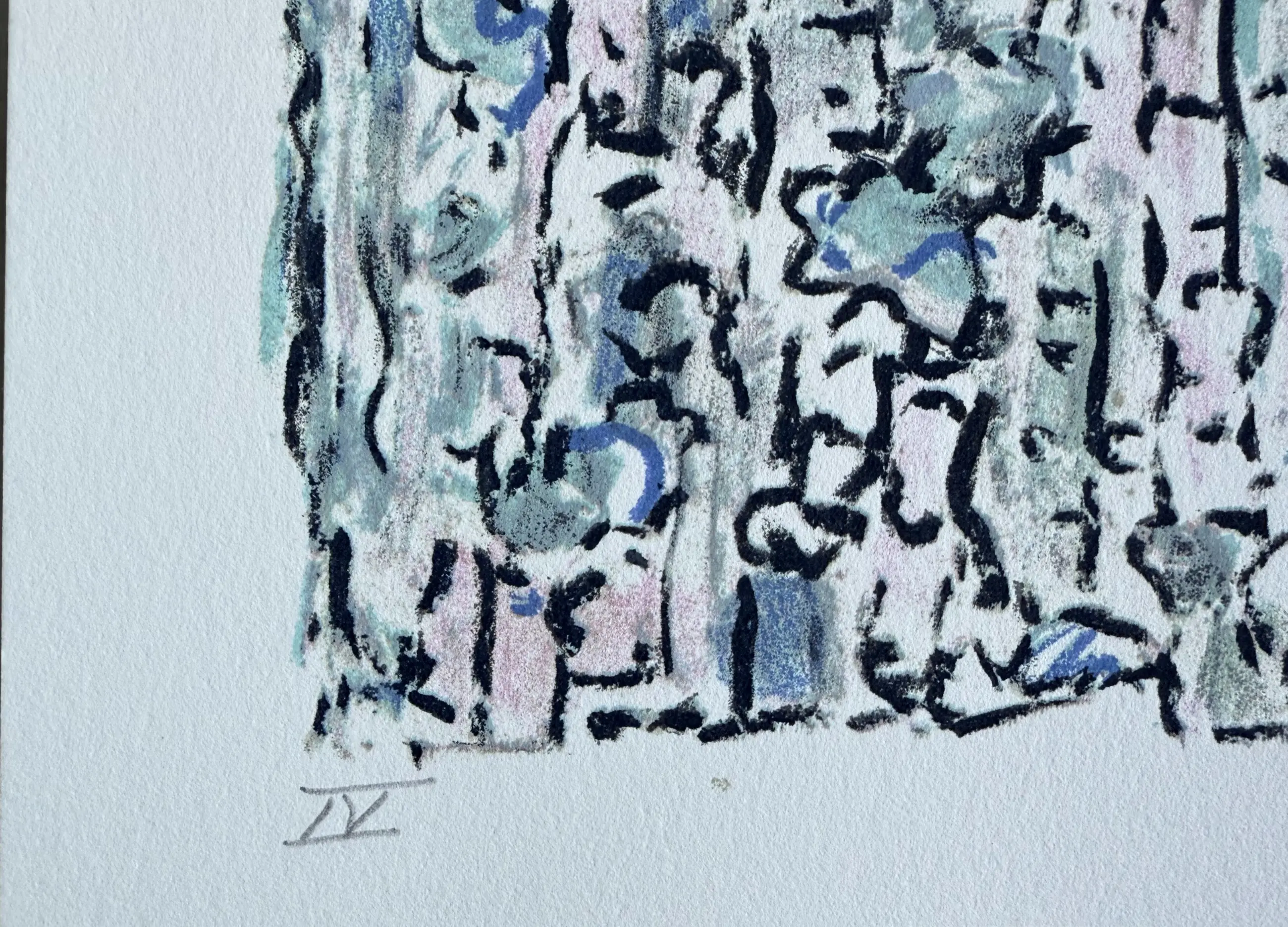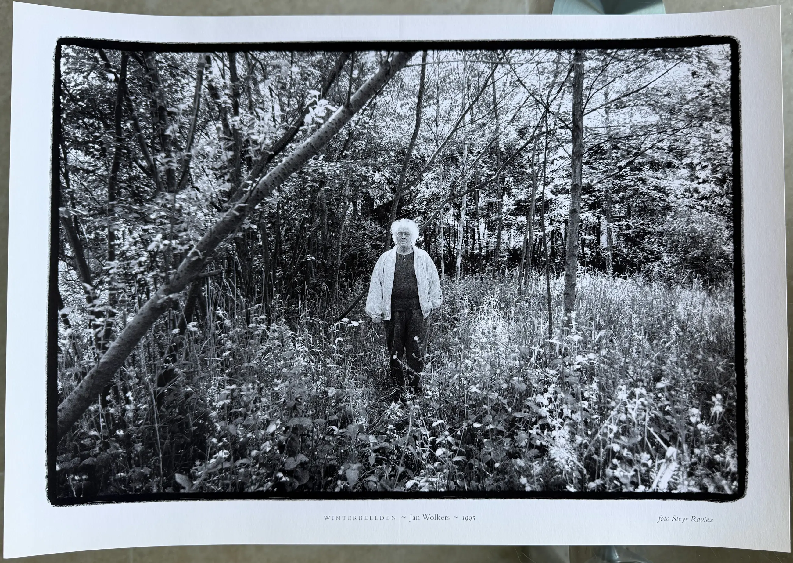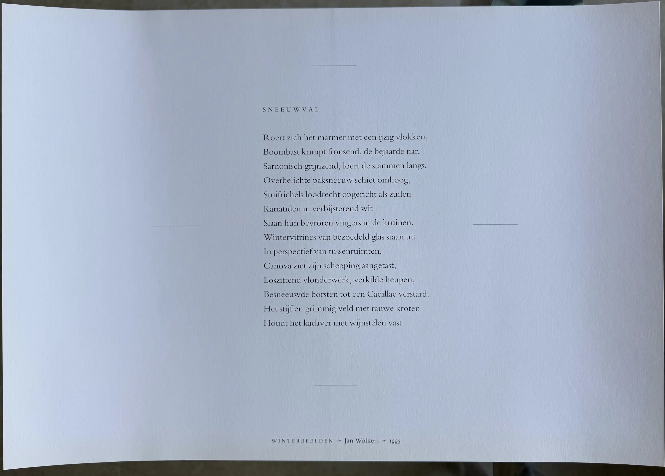Zeefdruk van Jan Wolkers met de titel: 'Winterbeelden III' uit 1995. Het werk is rechtsonder met de hand gesigneerd door de kunstenaar. Met foto en gedicht.