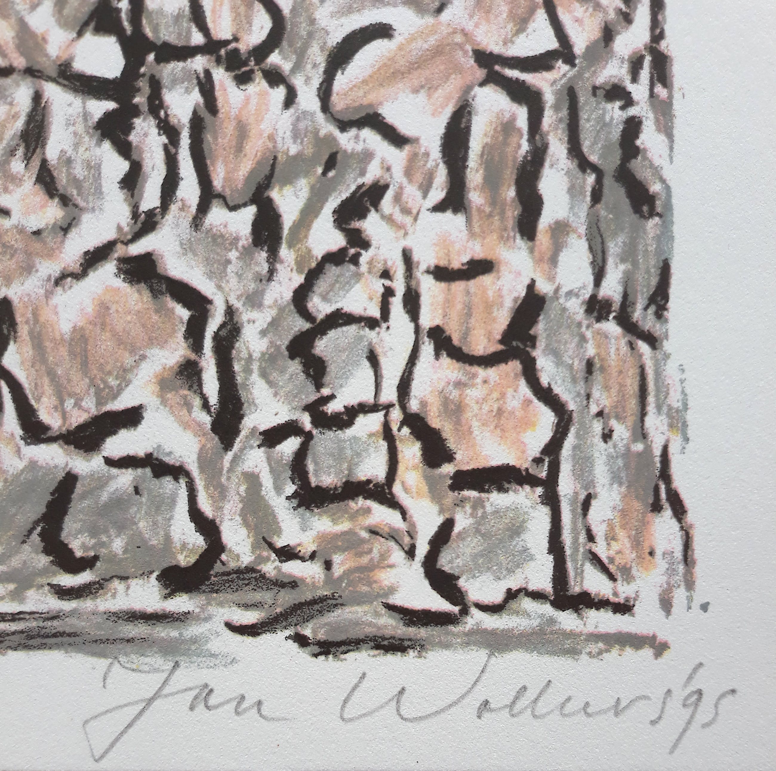 Zeer mooie compositie van Jan Wolkers uit de portfolio Winterbeelden. Zeefdruk op papier, met potlood gesigneerd, gedateerd (‘95) en genummerd (V). In uitstekende conditie.