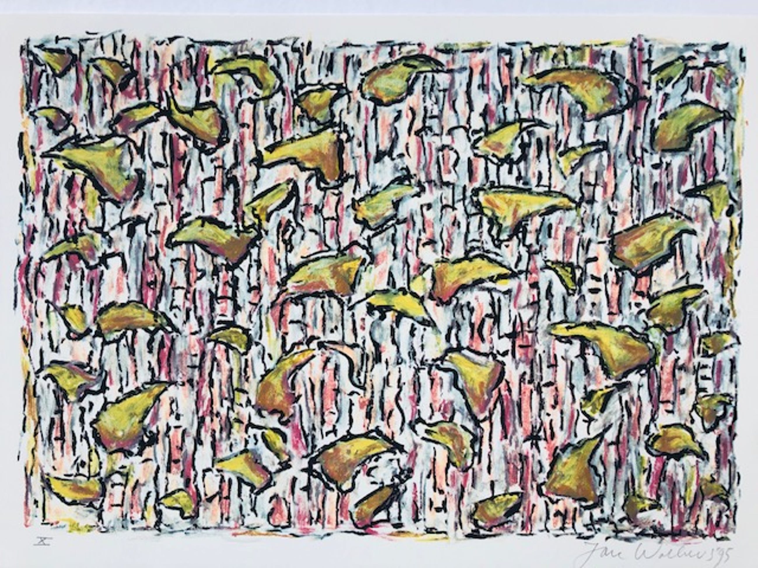 Fraaie zeefdruk van multi-talent Jan Wolkers. Uitgebracht ter ere van zijn zeventigste verjaardag. Gesigneerd en als serie genummerd door de kunstenaar. Nieuwstaat, uit la van een verzamelaar. Geen daglicht gezien. U kunt het werk komen beoordelen in de schatkamer van Rotor in Gorinchem.