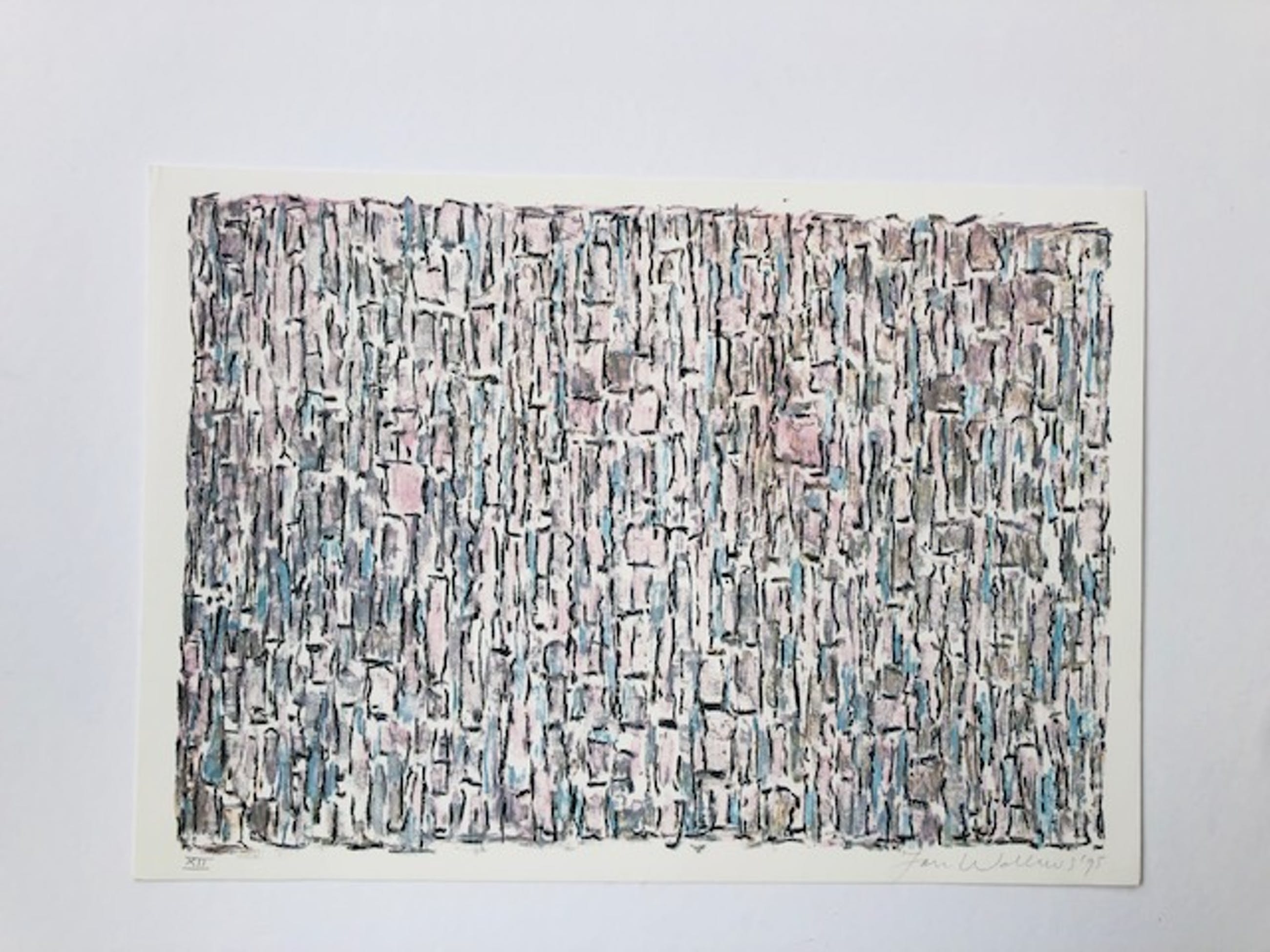 Fraaie zeefdruk van multi-talent Jan Wolkers. Uitgebracht ter ere van zijn zeventigste verjaardag. Gesigneerd en als serie genummerd door de kunstenaar. Nieuwstaat, uit la van een verzamelaar. Geen daglicht gezien. U kunt het werk komen beoordelen in de schatkamer van Rotor in Gorinchem.