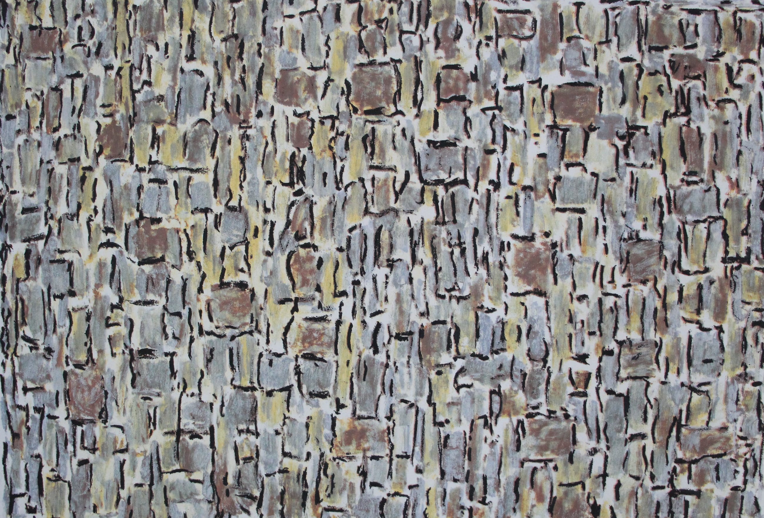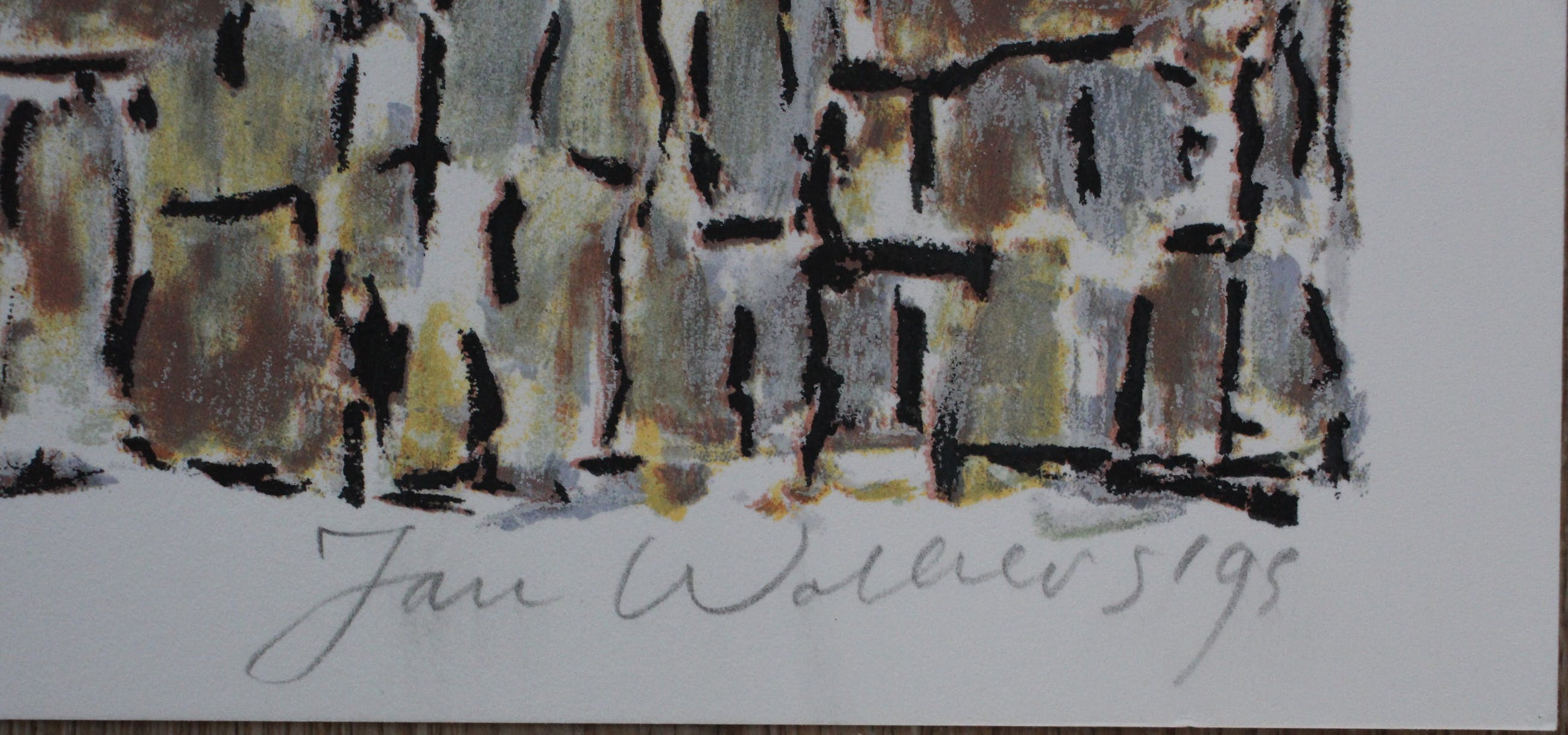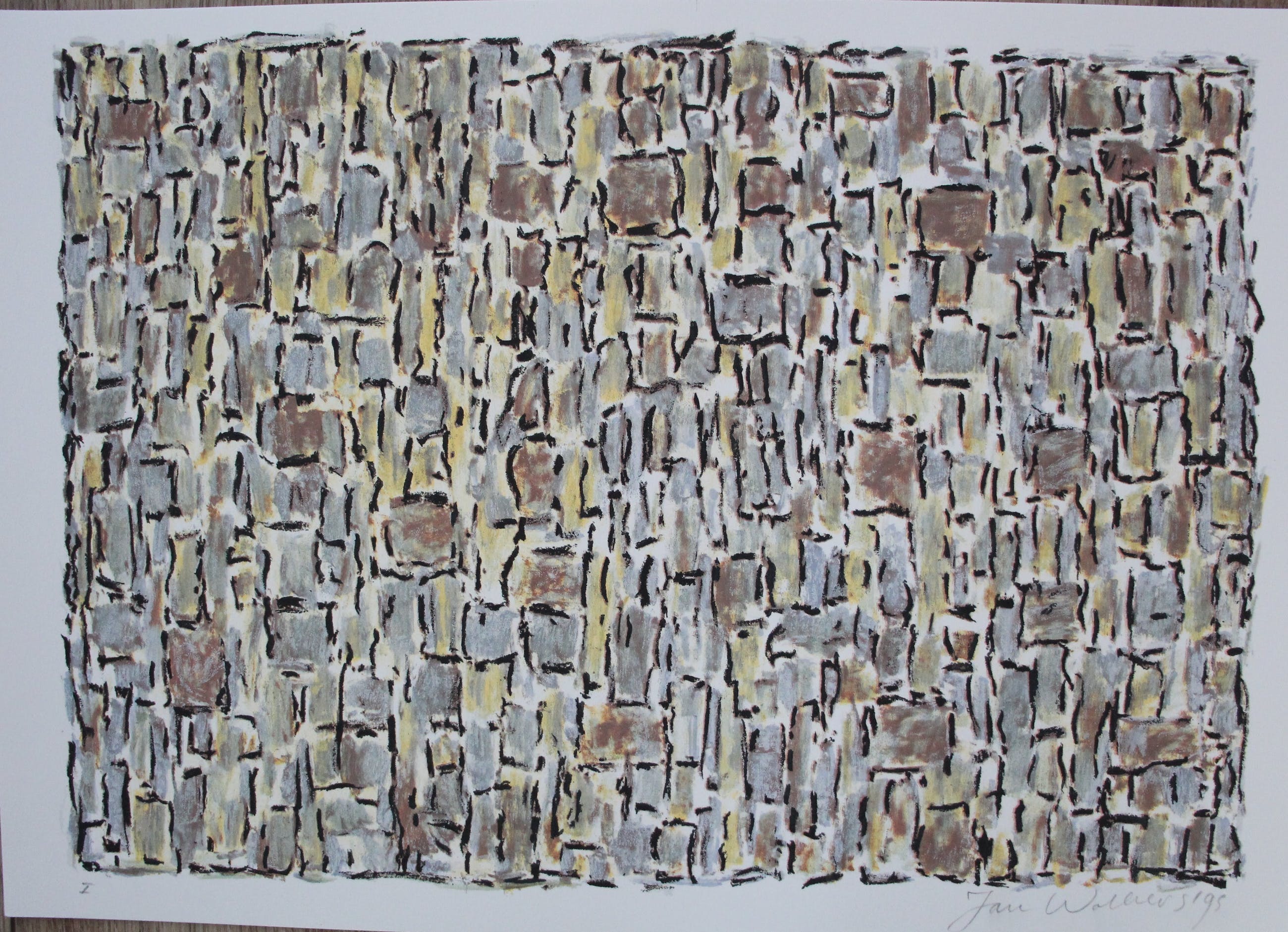 Zeefdruk van Jan Wolkers met de titel: Winterbeelden I Kleurpalet: geel, grijs, wit, bruin