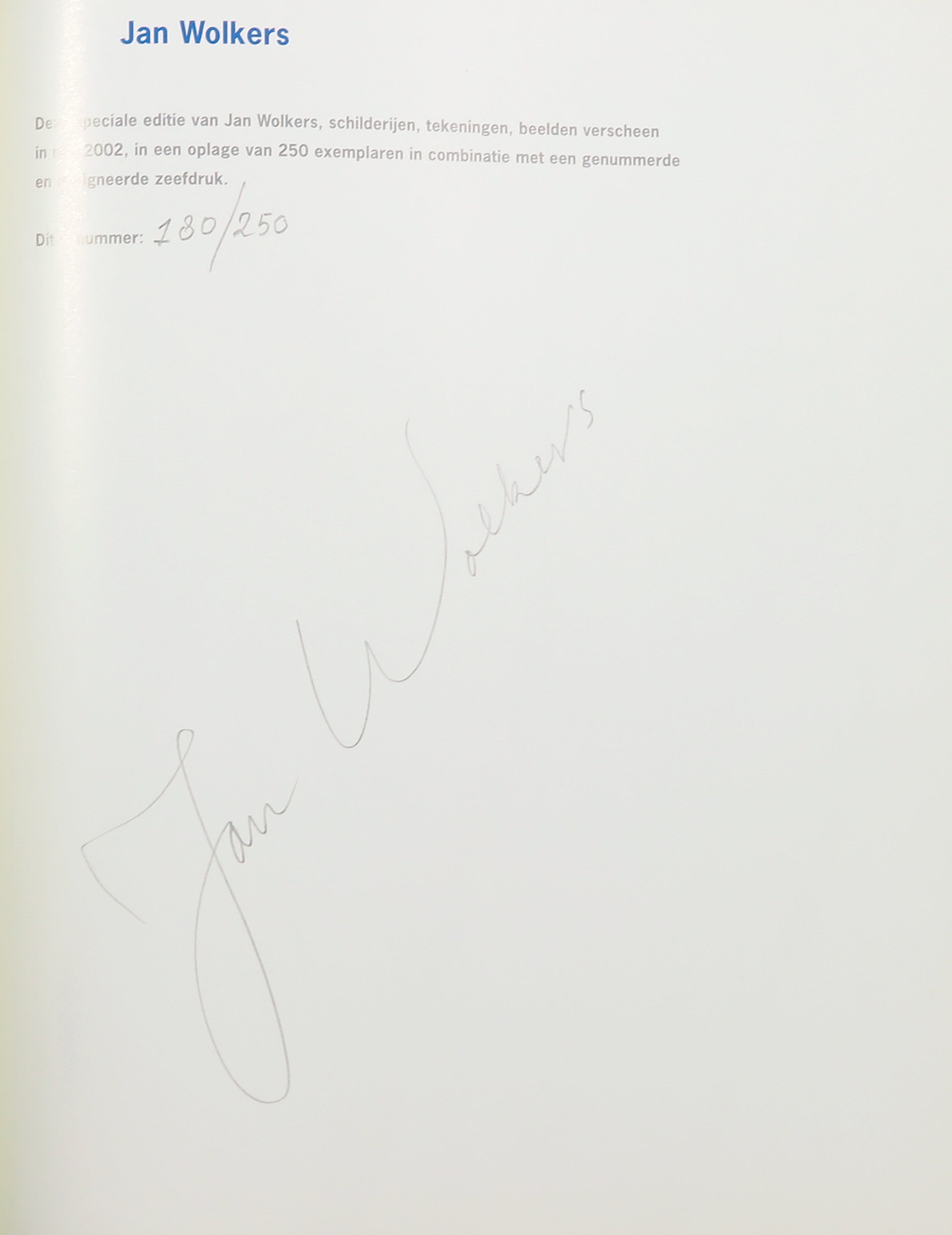 Bij dit item zit een door Wolkers gesigneerde oeuvrecatalogus, met dezelfde genummerde oplage (180/250).