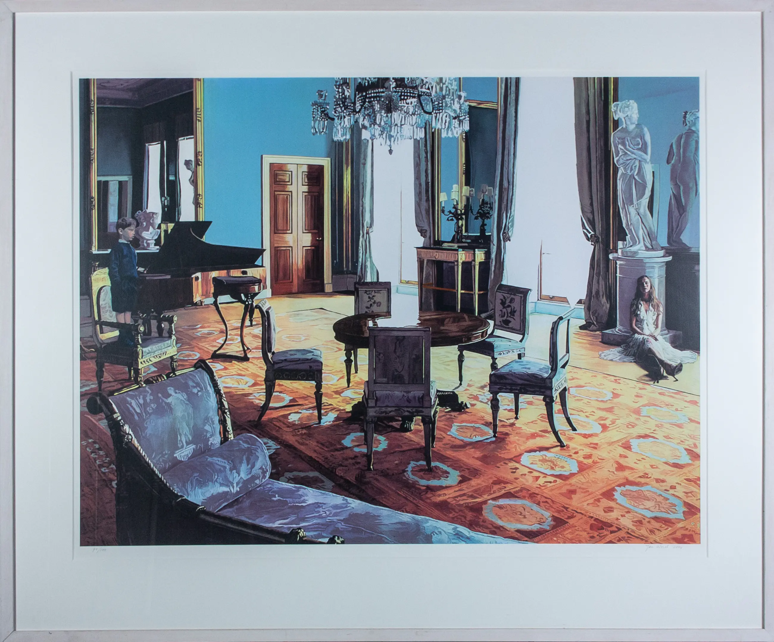 Passe-partout/lijsten: Beschadigingen aan lijsten worden niet beschreven. Indien een werk achter glas is ingelijst en het glas gebroken is, zal dit wel vermeld worden. Passe-partouts worden op geen enkele manier gegarandeerd en ook niet altijd meegezonden.