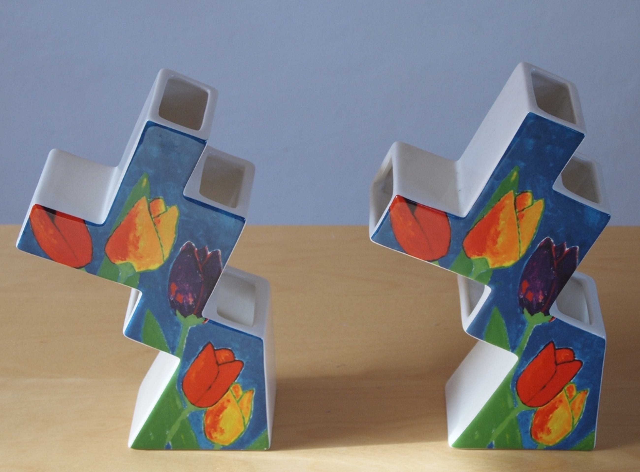 Schoonhoven Keramiek - twee tulpenvazen Philadelphia ontwerp Janine Lokhorst.