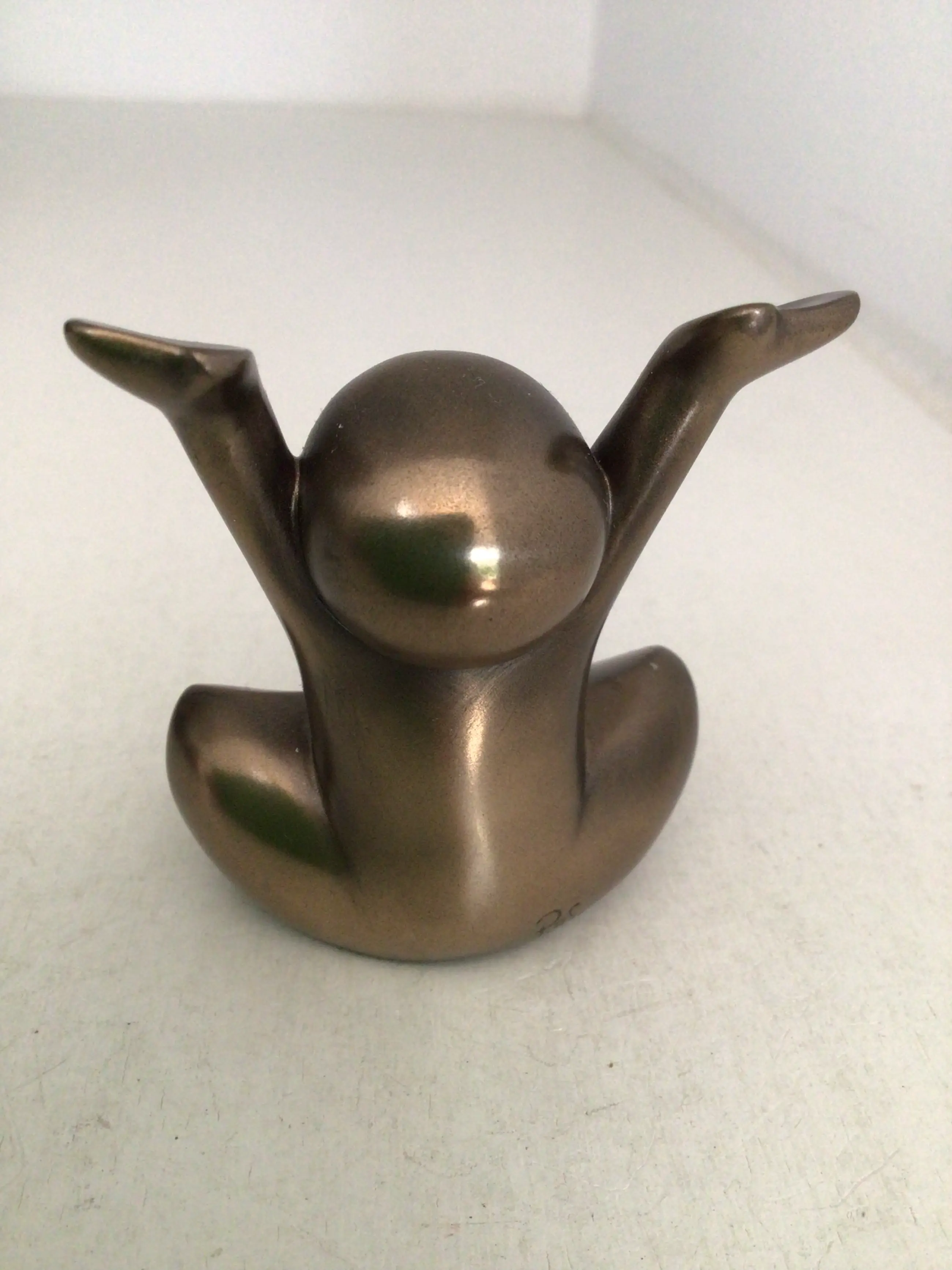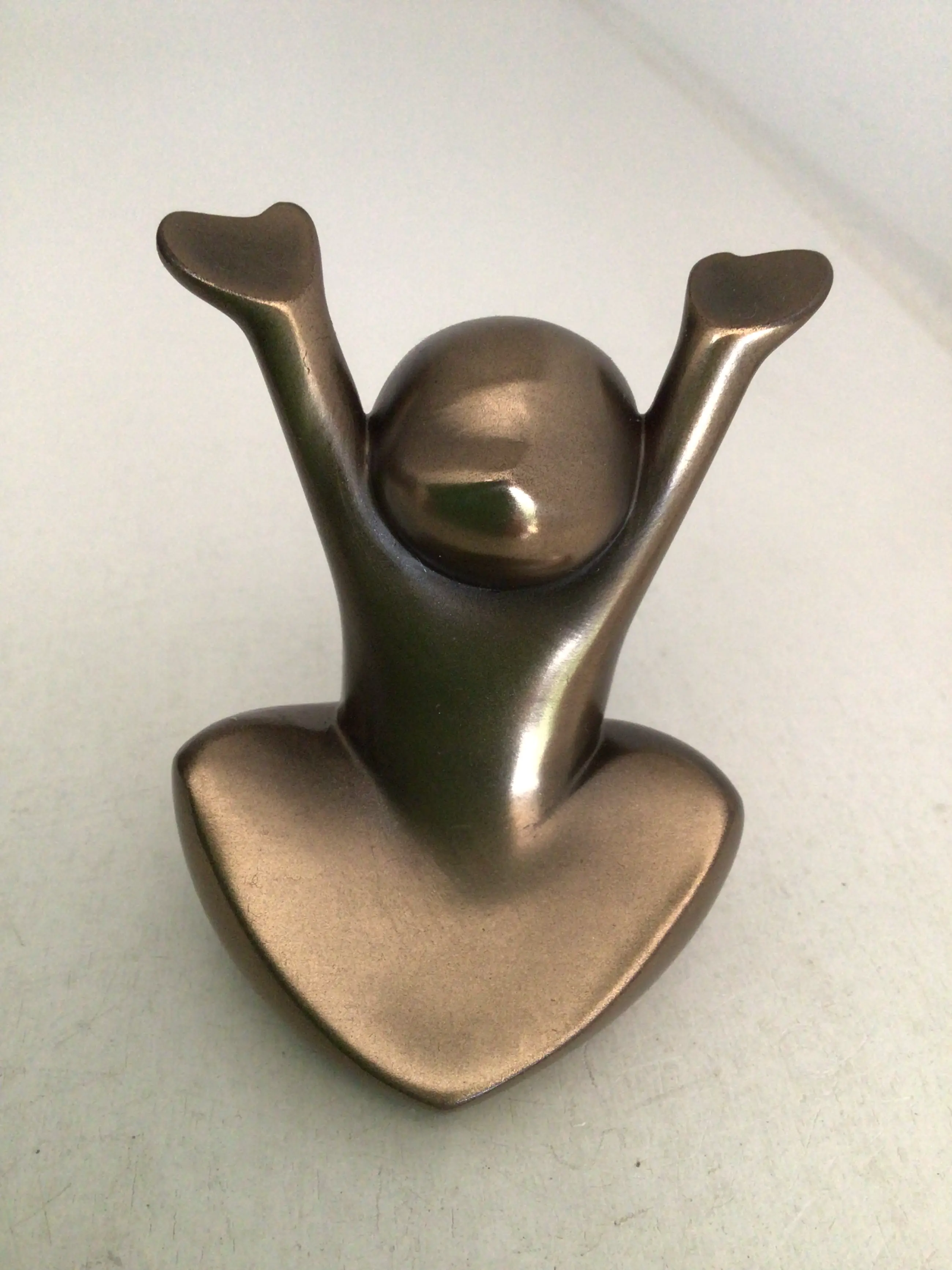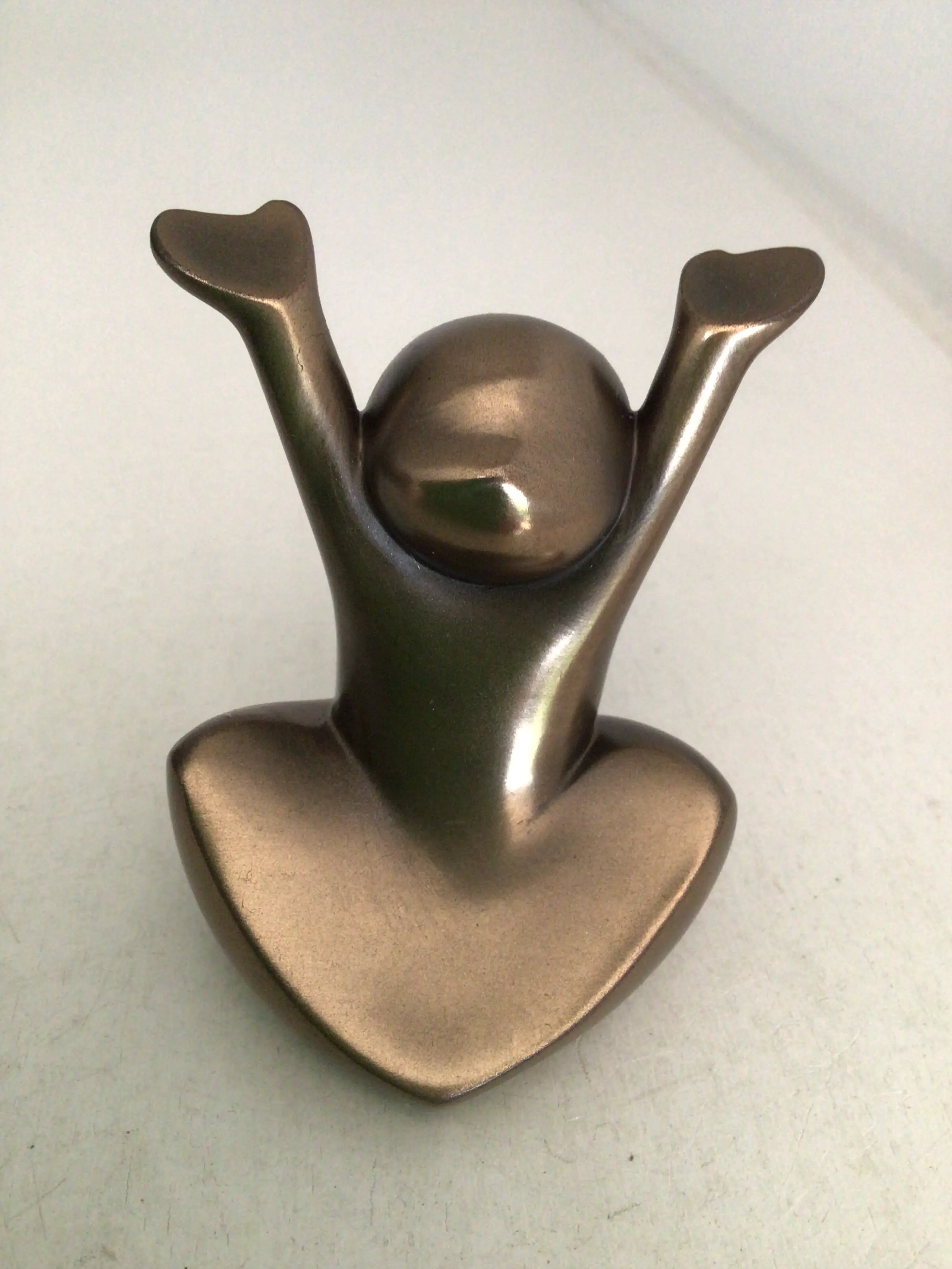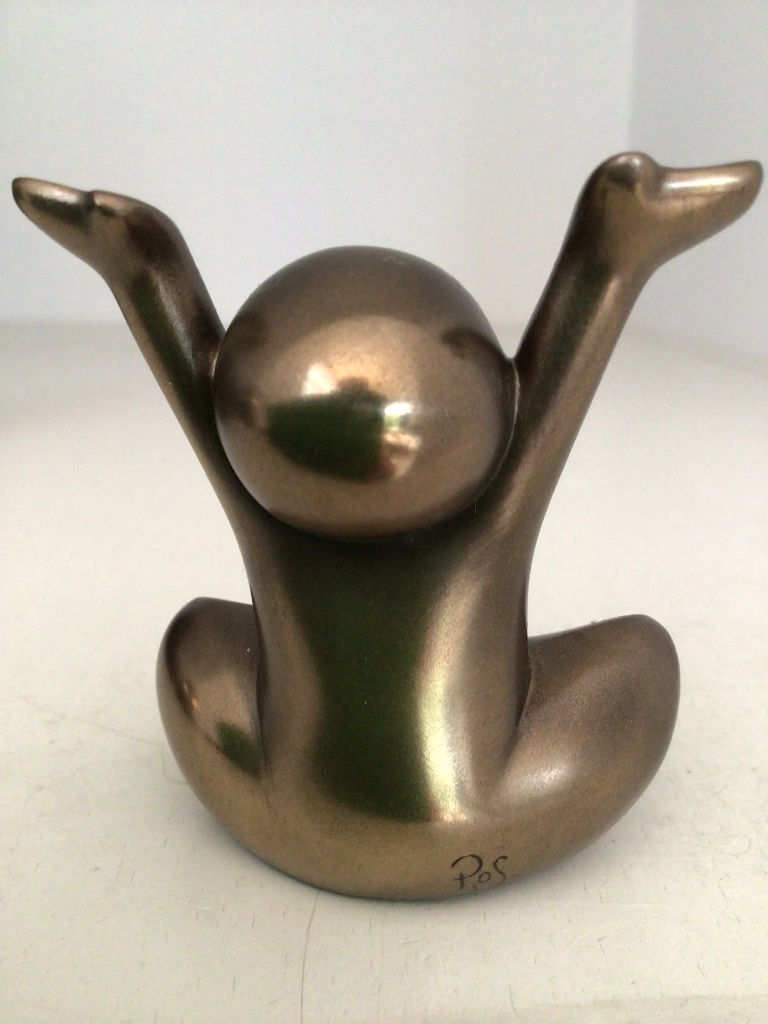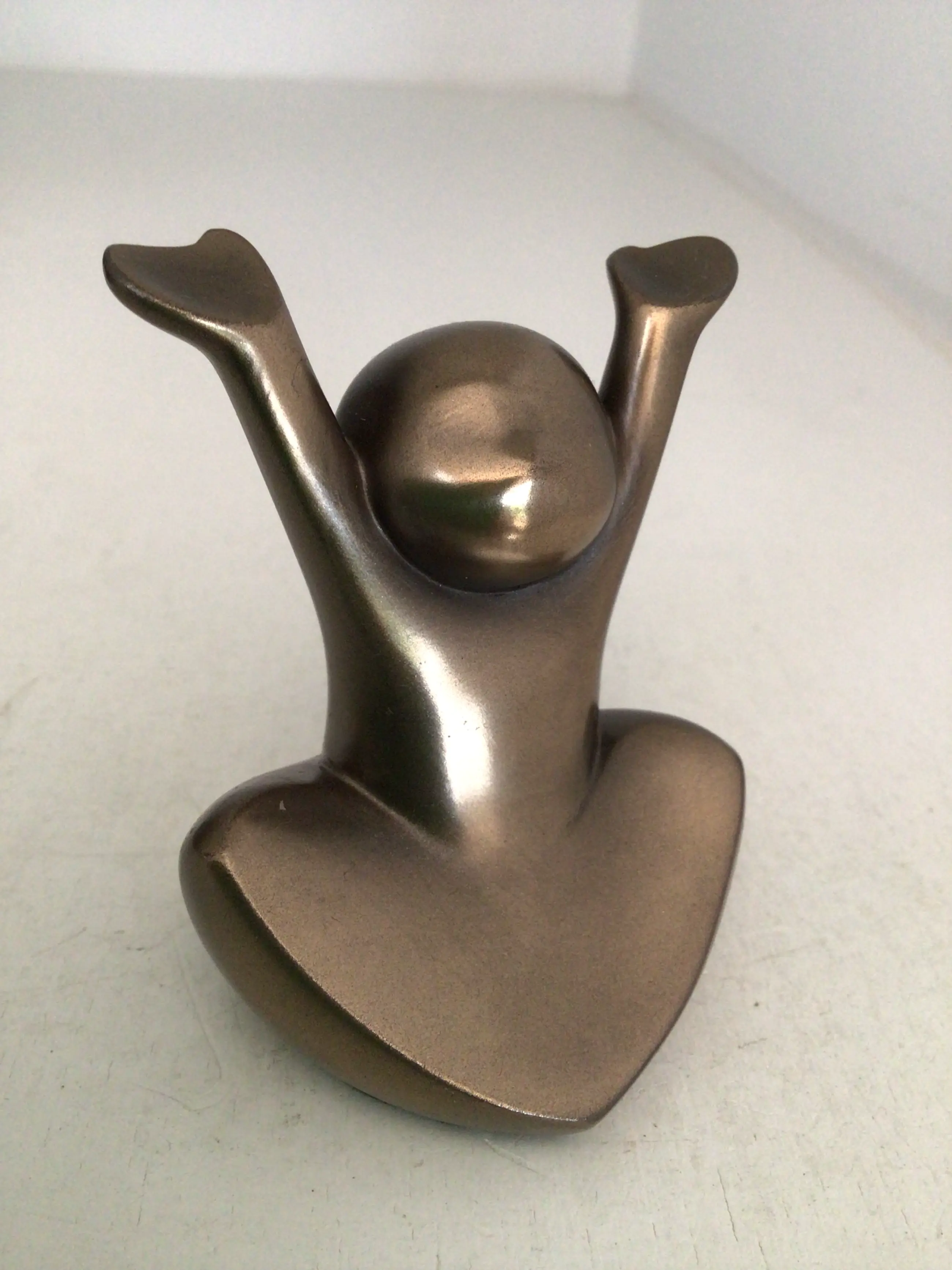 Zeer fraai en vertederend beeld van een vrolijk kind met de handjes in de lucht ! Kunstenares: Janneke Ros Afmetingen: 7 x 6 cm Materiaal: resin met een fraaie glanzende brons uitstraling Wordt geleverd inclusief originele verpakking. Het beeld verkeert in zeer goede staat en wordt zorgvuldig verpakt en aangetekend verzonden.