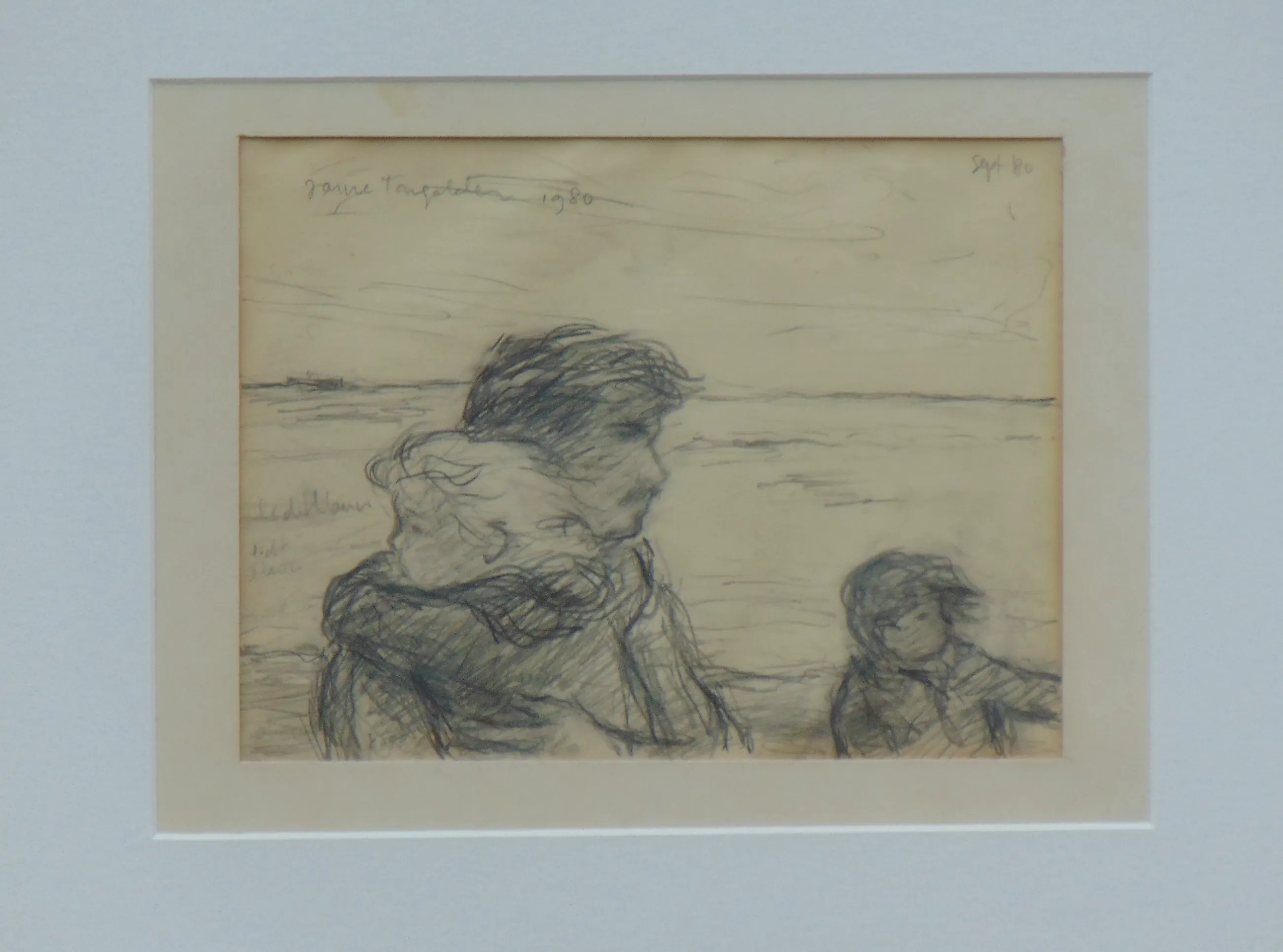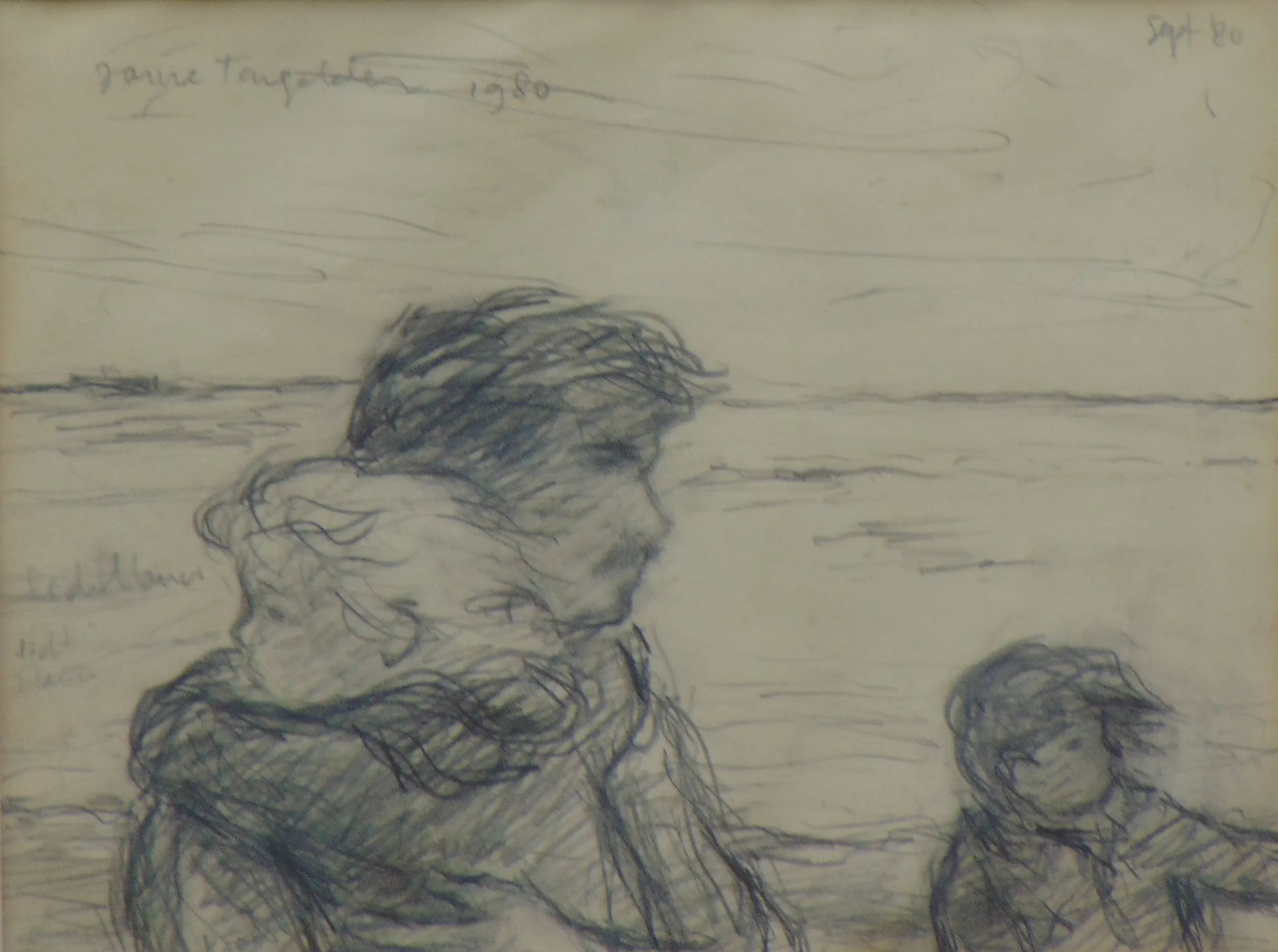 Deze potloodtekening is linksboven gesigneerd. Het werkje is ingelijst met dubbele passe-partout.
