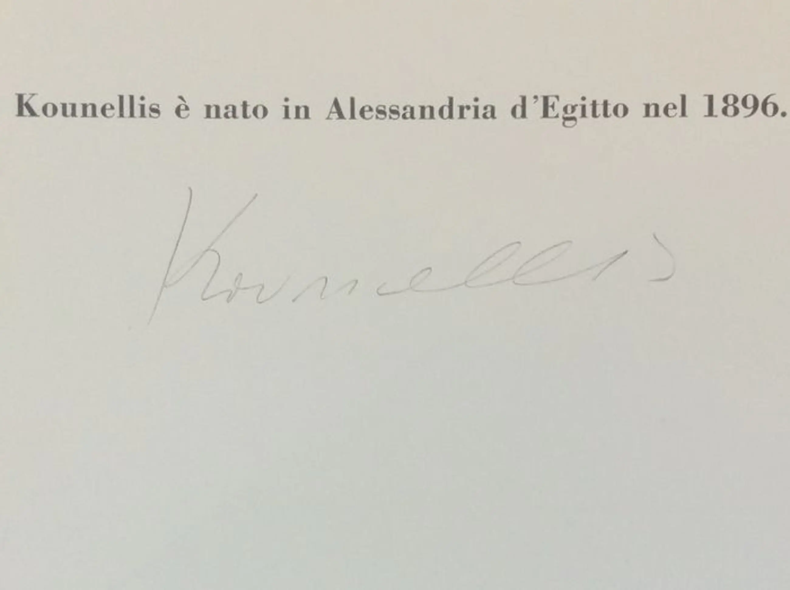 In folio groot (mm.490x34.5), redactiemap in mz. Doek (op het voorpaneel een kleurenillustratie uit een roman van Verne) met waardevolle afbeeldingen - op zwaar gecoat papier - van de tien jaar durende tentoonstellingen van de grote Griekse kunstenaar Jannis Kounellis (1969-1980) in de Lucio Amelio Gallery in Napels. Er zijn 15 foto's van Claudio Abate, Mimmo Jodice en Werner Krueger, genomen in een fotolitho door Colorfotolito uit Napels. "Oplage in 300 exemplaren gesigneerd door de kunstenaar". Op de achteromslag bovenaan staat ook: "Kounellis werd geboren in Alexandrië, Egypte in 1896. Hij woont momenteel in de buurt van Dublin, ernstig ziek" met zijn handgeschreven handtekening. Jannis Kounellis (Piraeus, 23 maart 1936 - Rome, 16 februari 2017) was een genaturaliseerde Italiaanse Griekse schilder en beeldhouwer. leidende vertegenwoordiger van wat de criticus Germano Celant "Arte Povera" noemde. Goed bewaard gebleven exemplaar