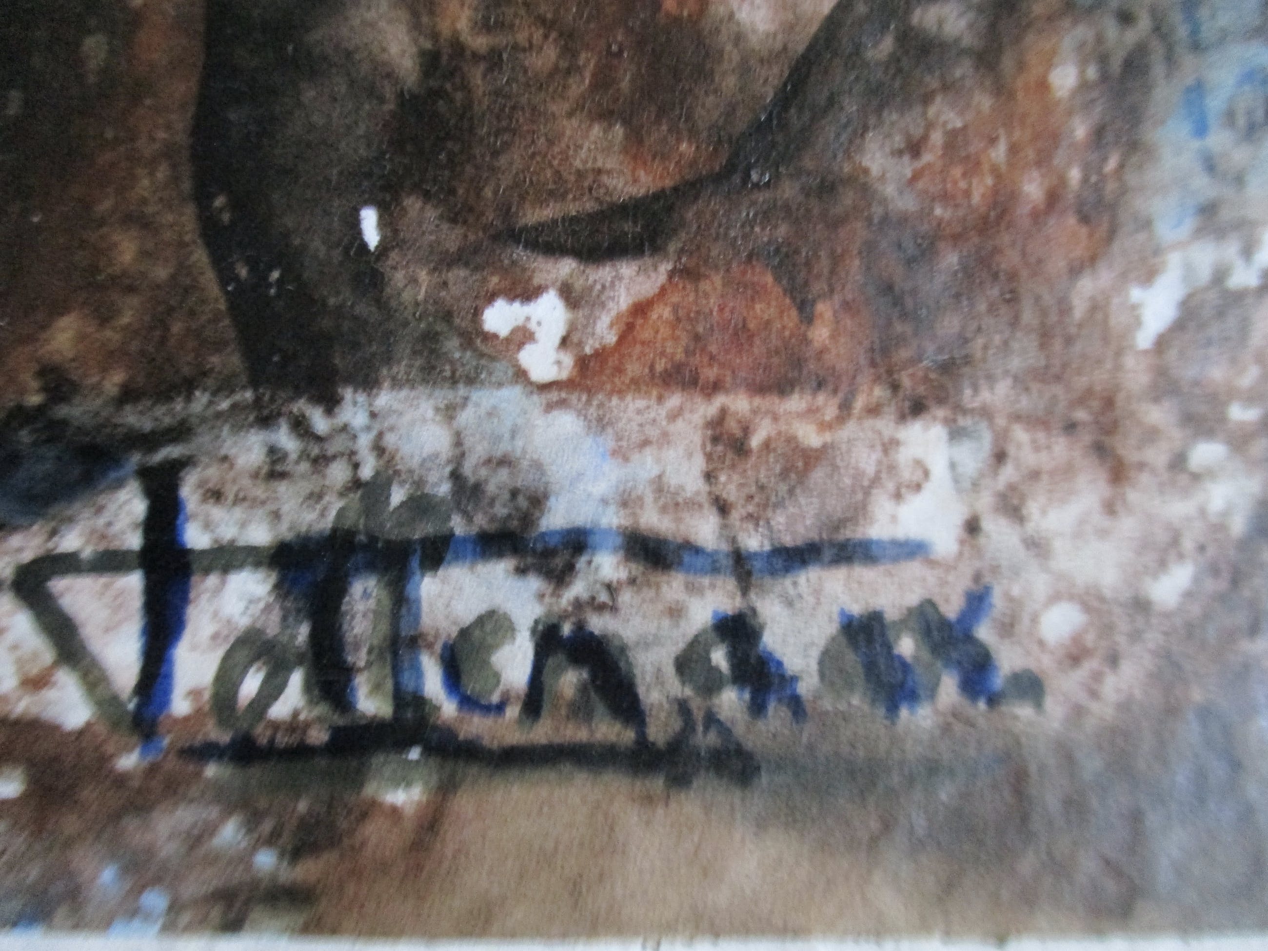 Aquarel van Janny Tollenaar, gesigneerd. Op het passe-partout waar ik dit blad uitgehaald heb stond " Rotskust Irland 1" verzending tussen twee platen, 8,25, aangetekend 10,20