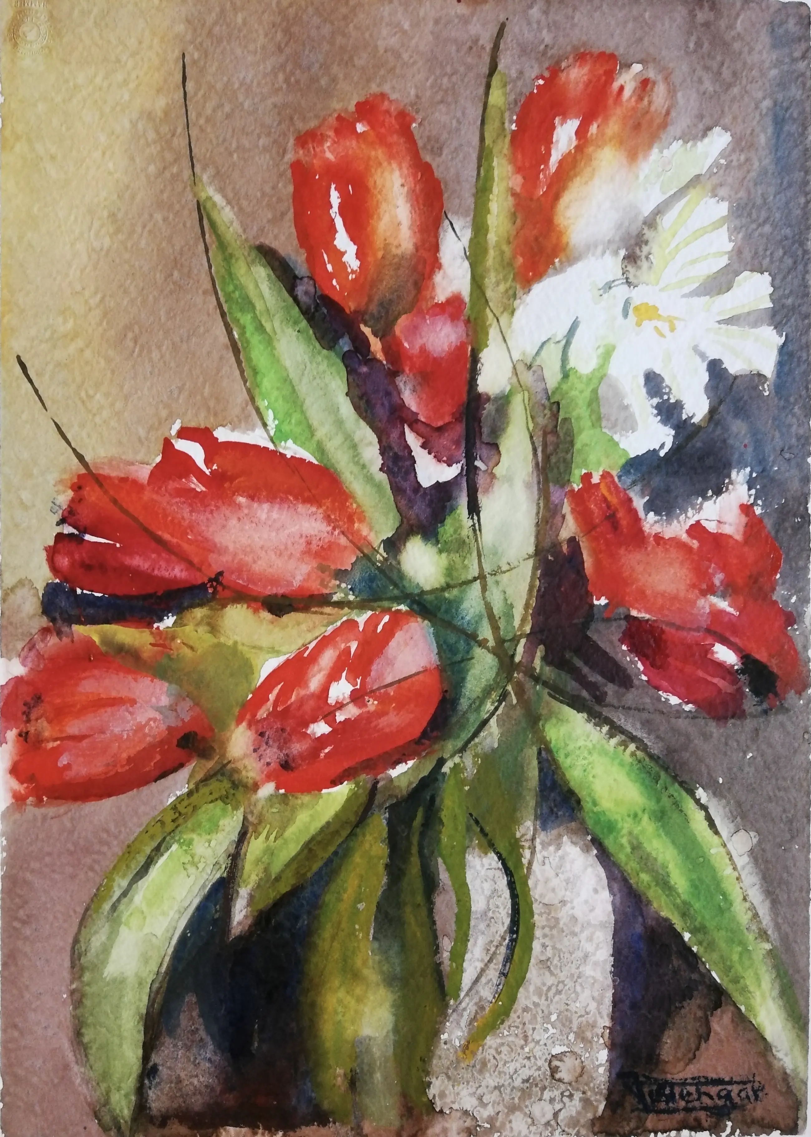 aquarel van janny Tollenaar, gesigneerd rechtsonder. Verzending tussen twee platen.