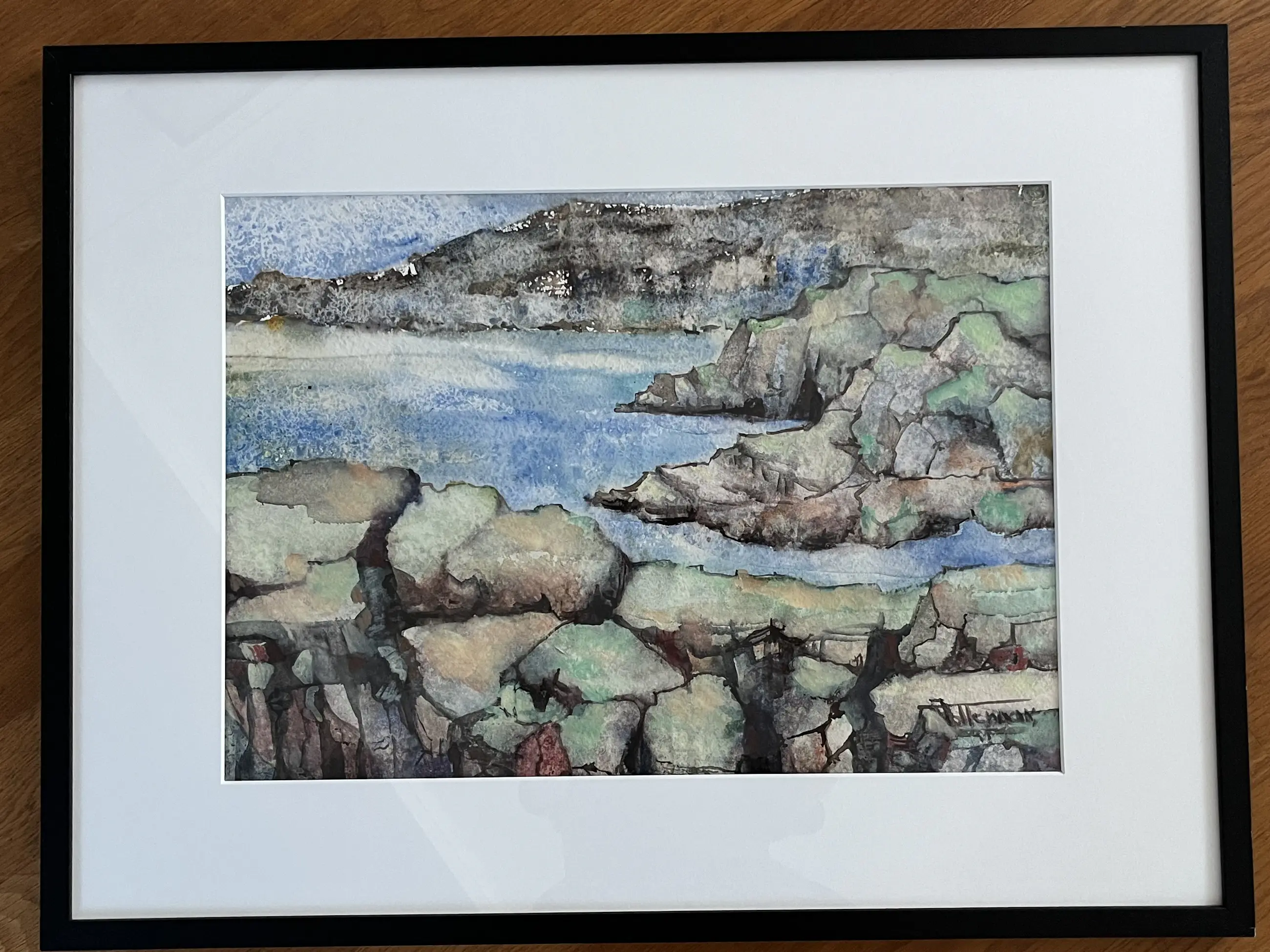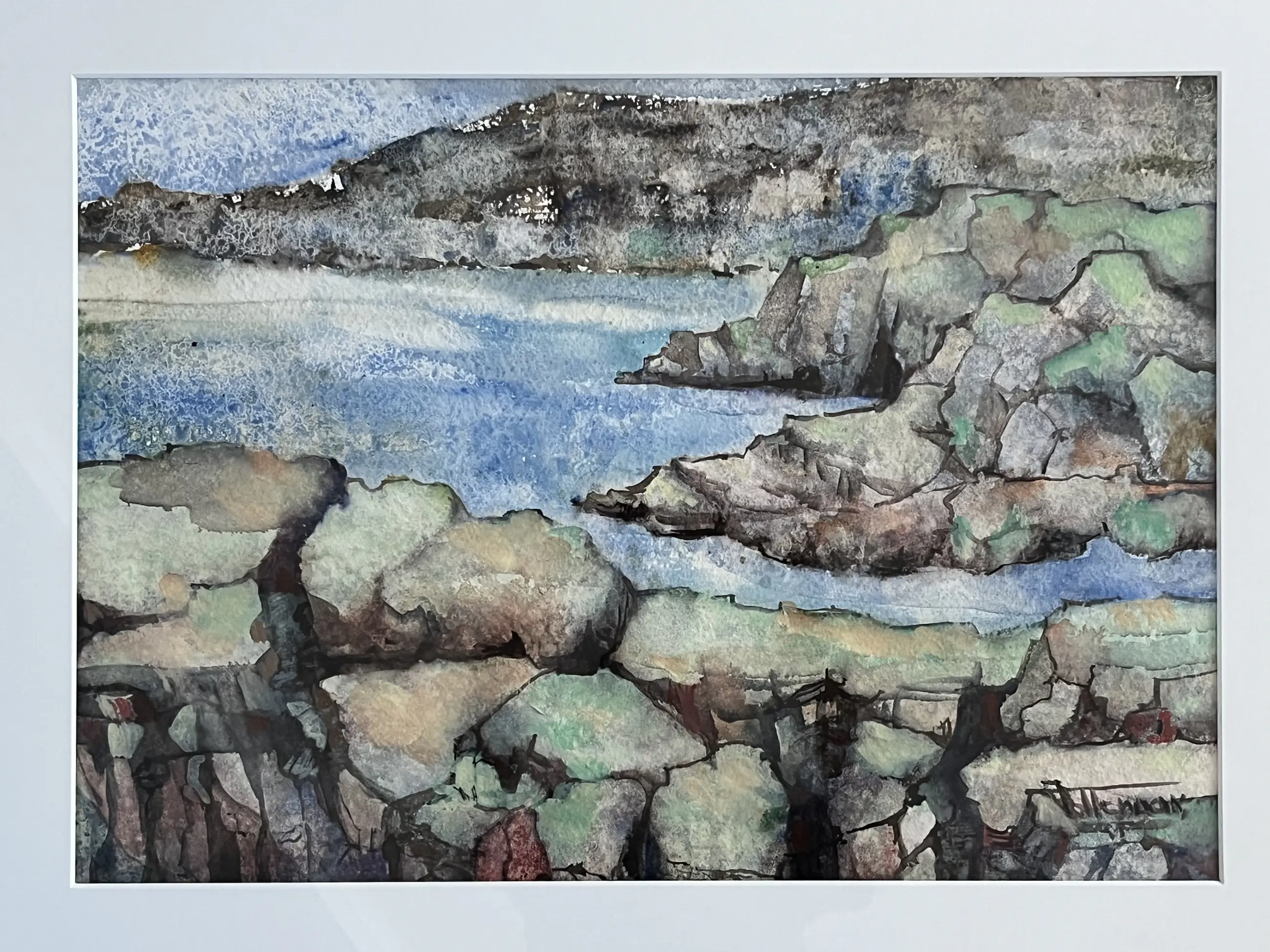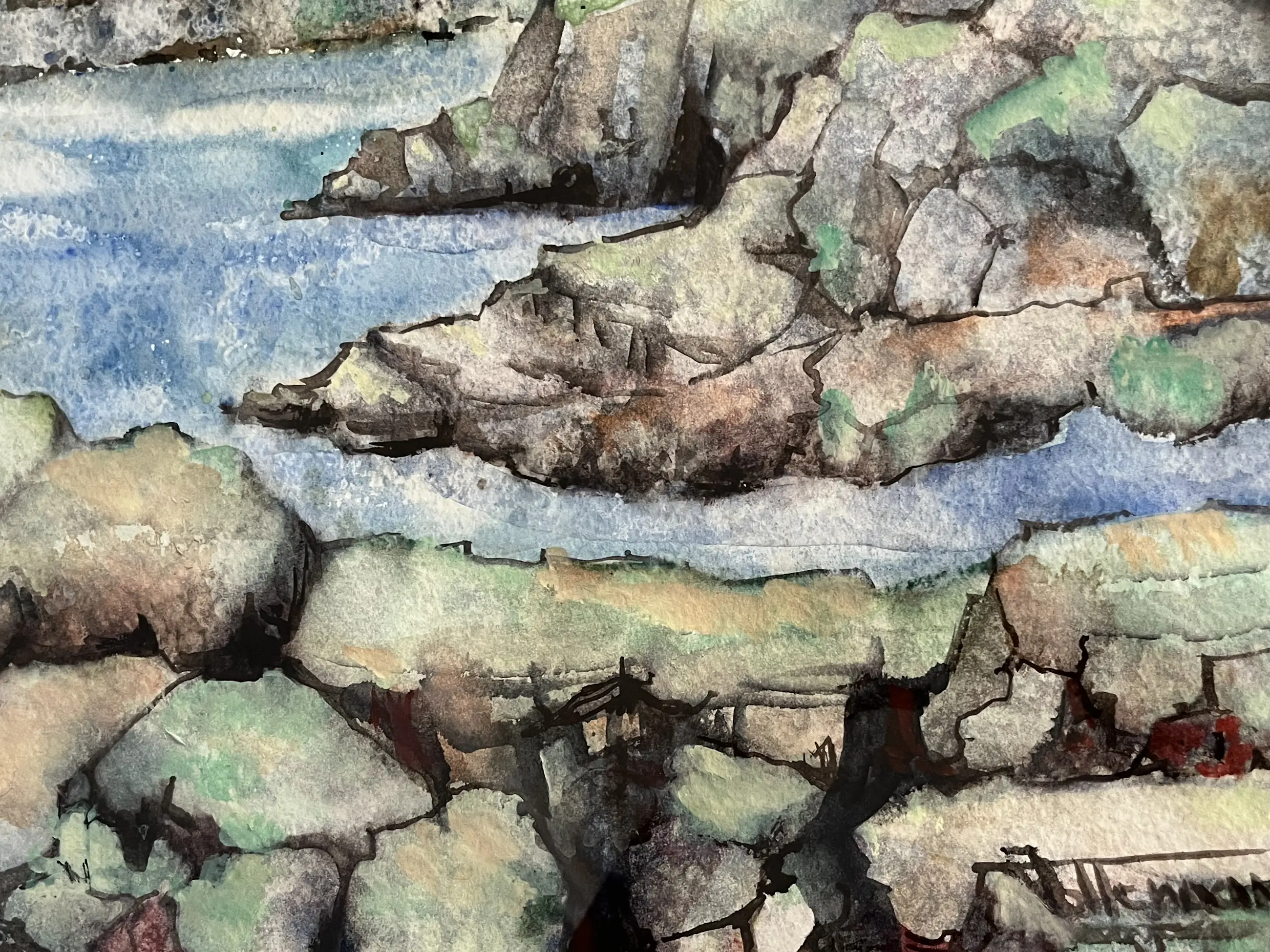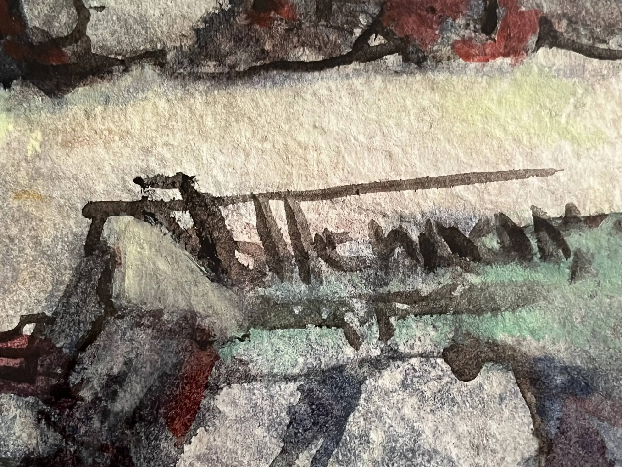 Aquarel is gelijst in zwarte houten wissellijst. Lijst heeft lichte gebruikssporen. Afmeting voorstelling 41 x 58 cm. Inclusief lijst 63 x 83 cm.