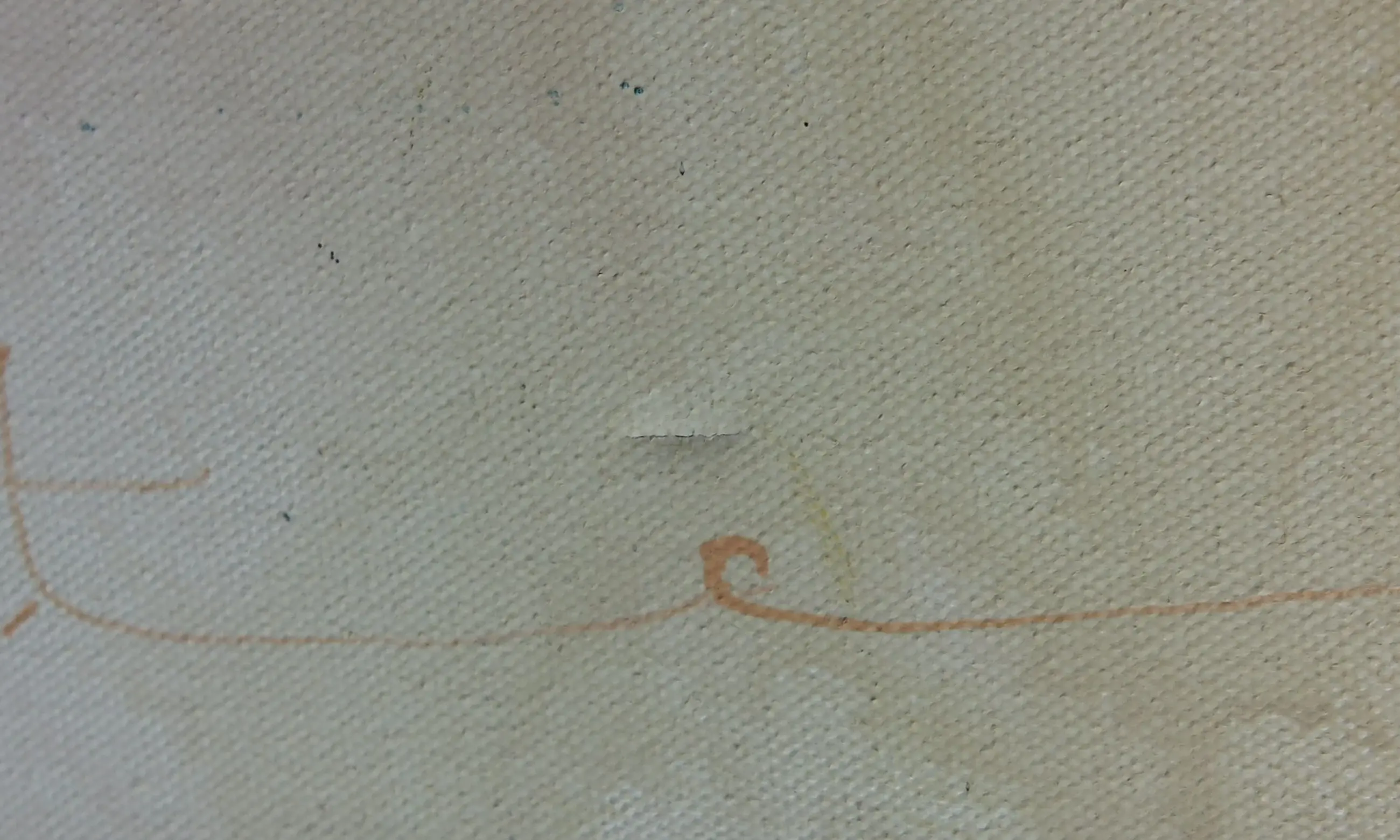 | Er zit een klein deukje in het doek. Zie laatste afbeelding. | |