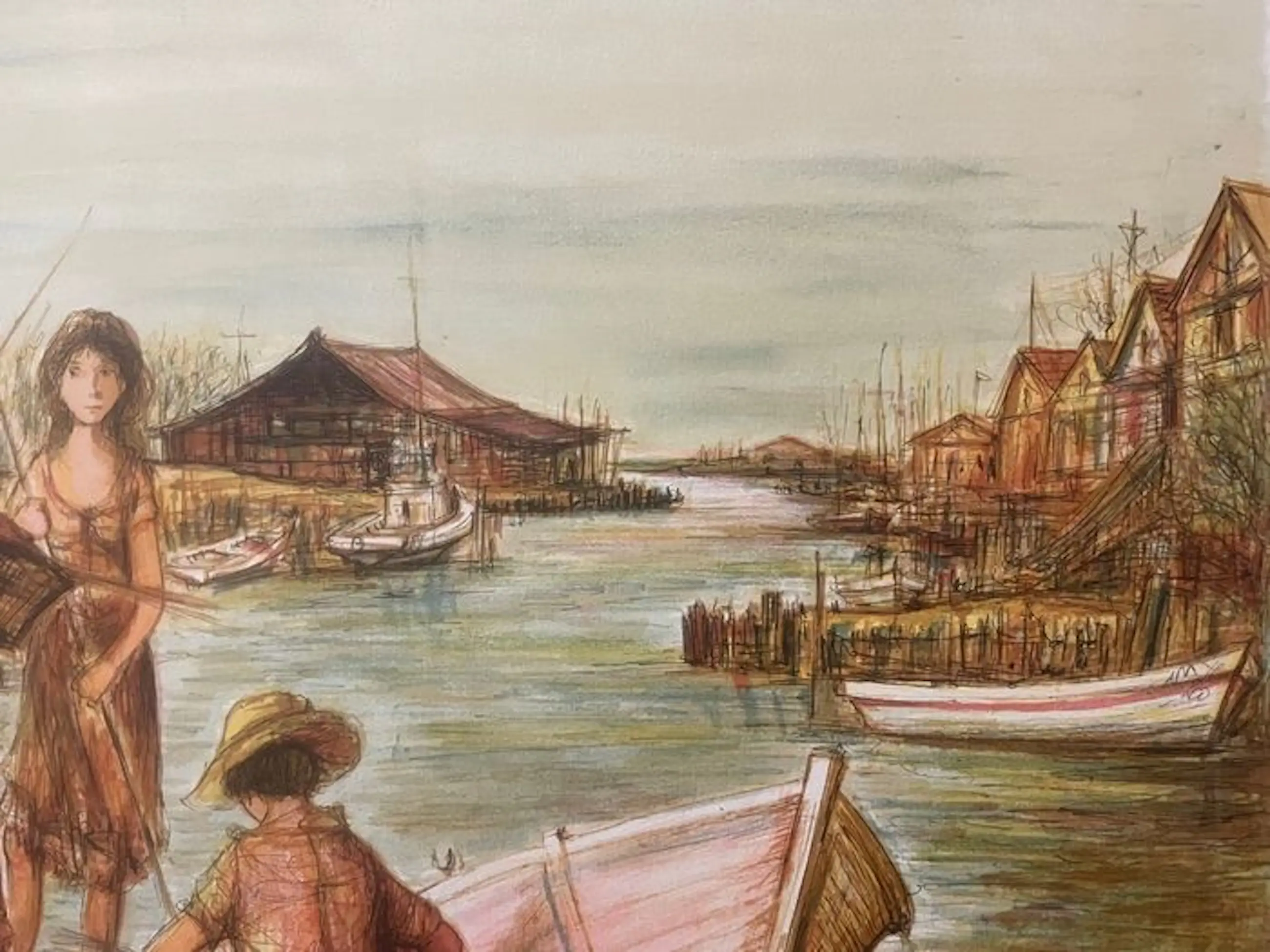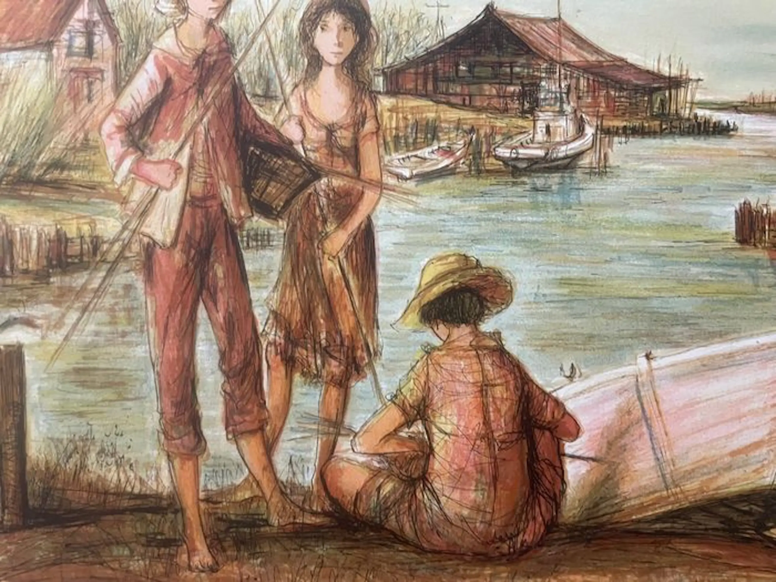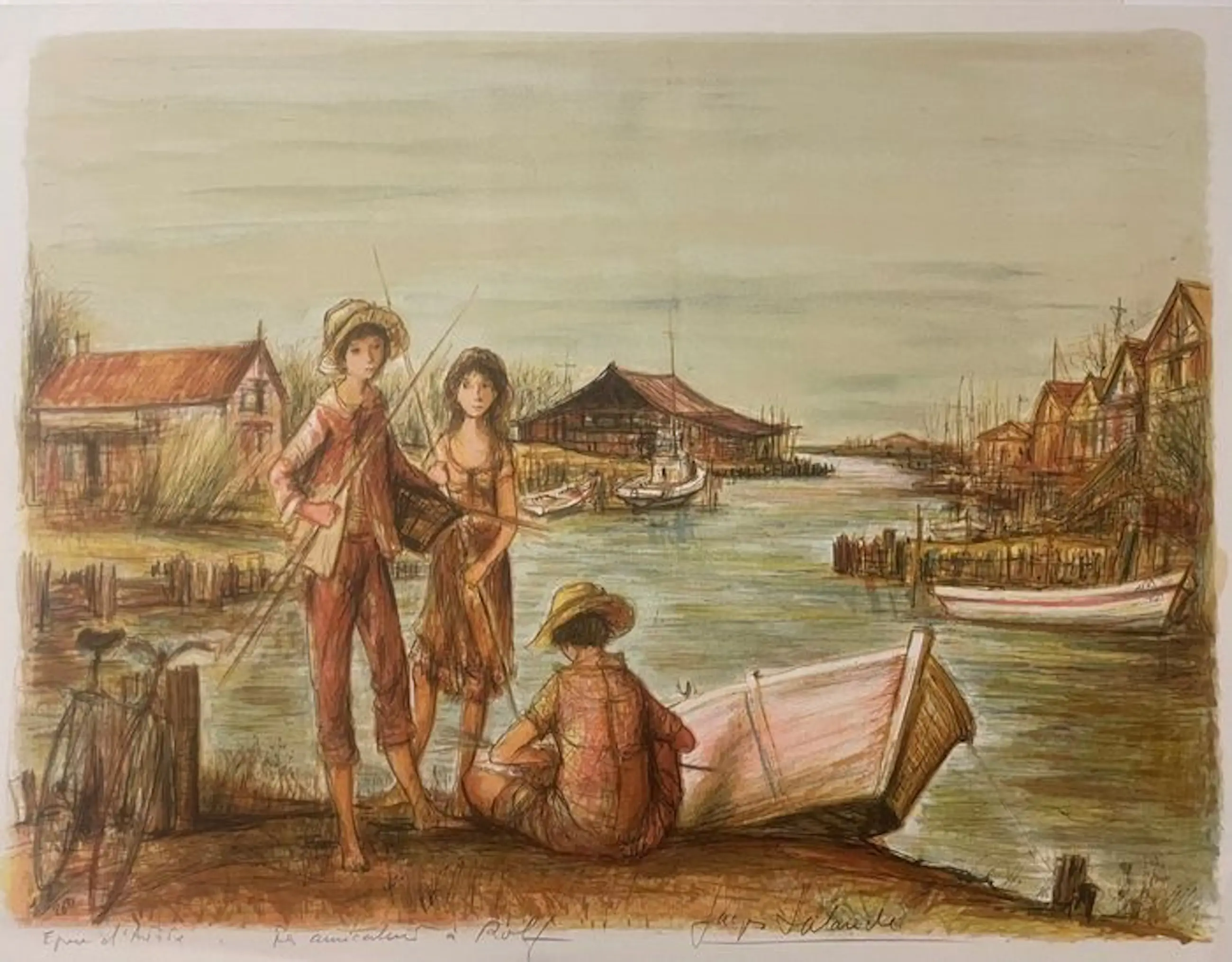 Jaques Lalande - Litho, Titel, Les petits pecheurs.