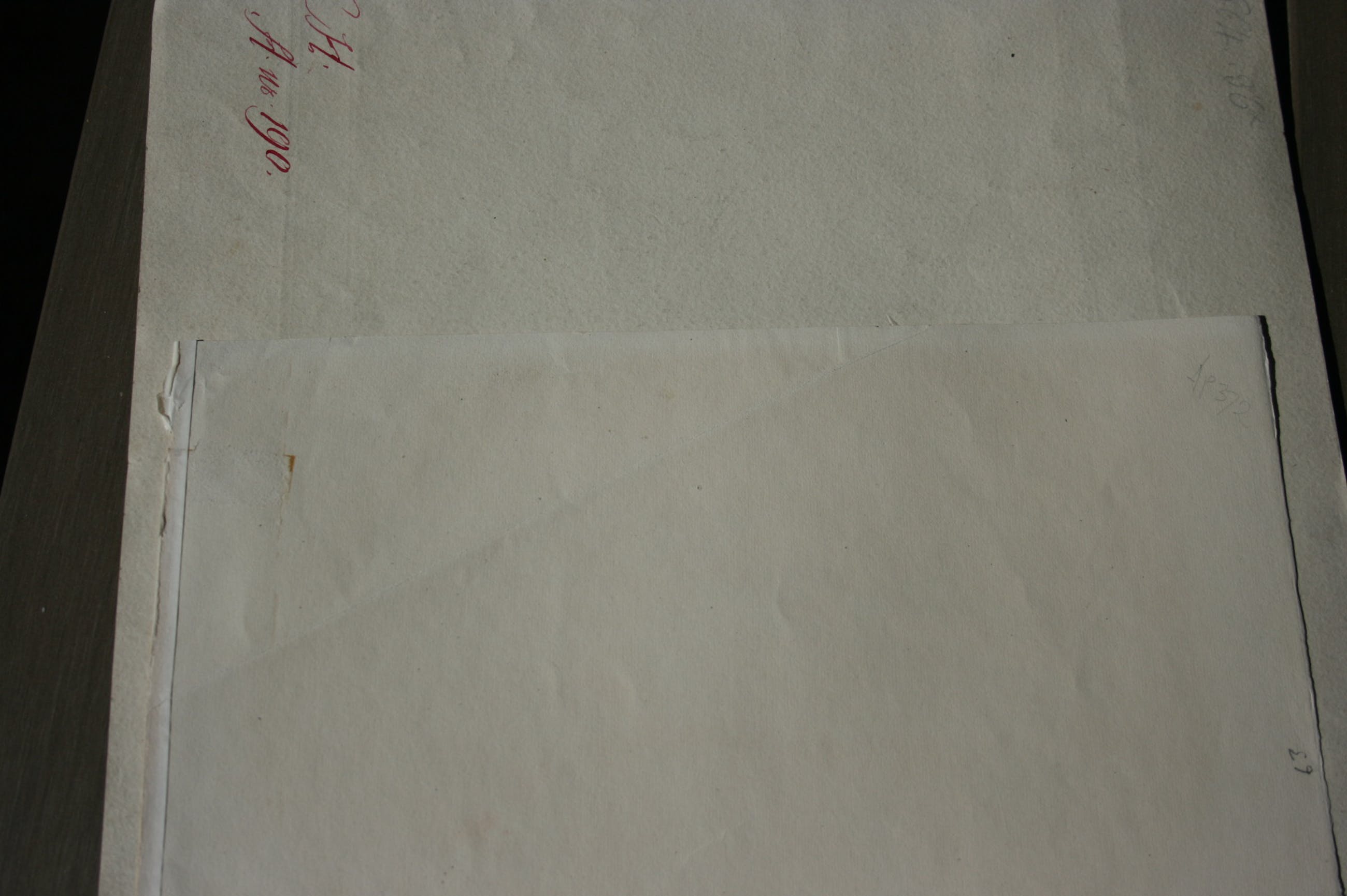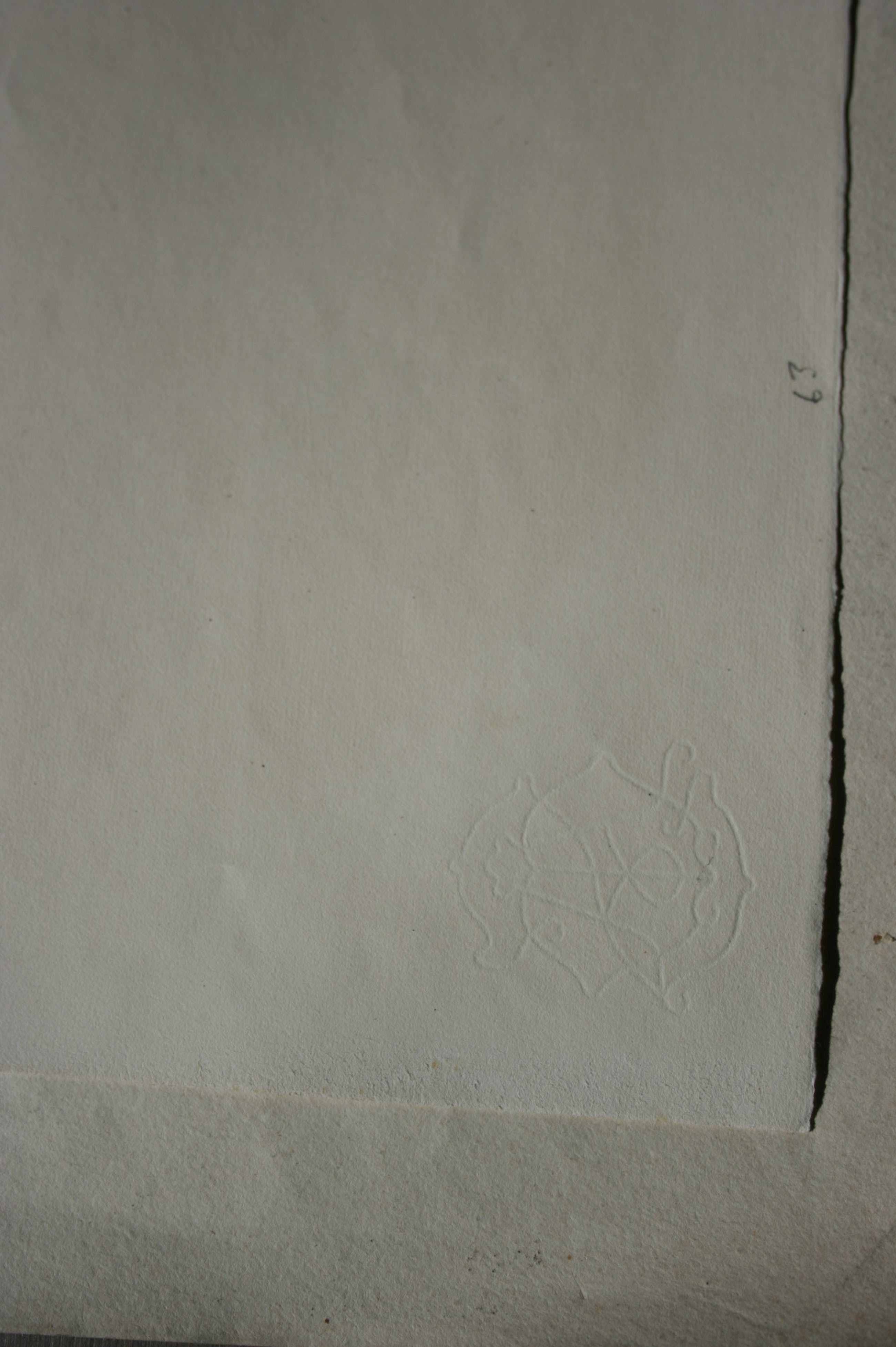 oben links Knickfalte , rechts ausserhalb der Darstellung Papier durchstossen, kleines Loch, alt unterlegt von hinten