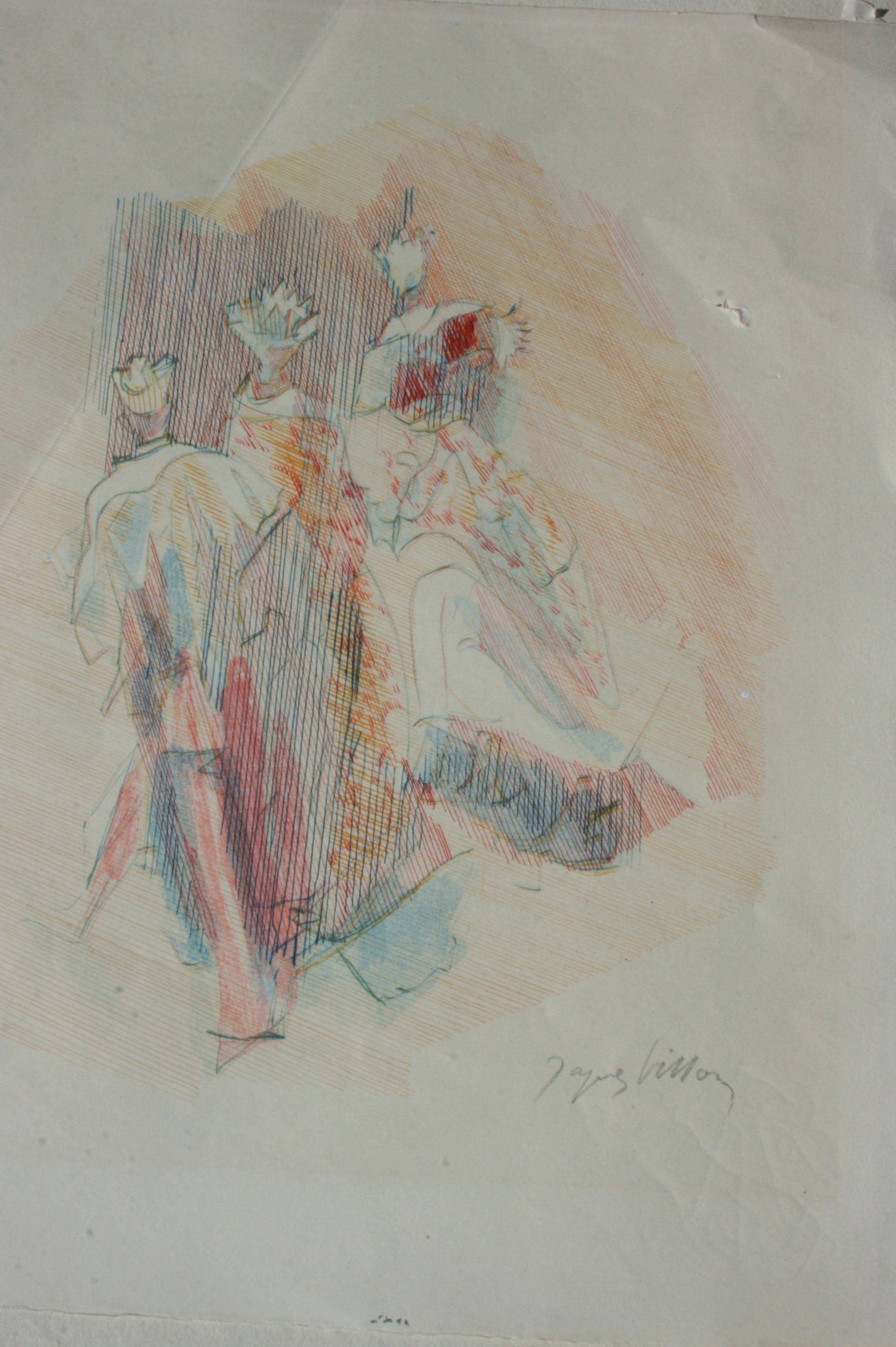Een belangrijk livre d'artiste met de eerste editie van Frénauds tekst, slechts één ORIGINELE IN KLEUR GEDRUKTE ETS VAN JACQUES VILLON (Een van de 170 genummerde exemplaren gedrukt op fijn velijnpapier. Gallimard, Parijs. 1947 rechts unten mit Bleistift signiert Jaques Villon Blattgroesse 30x22 cm Darstellung 16x22 cm