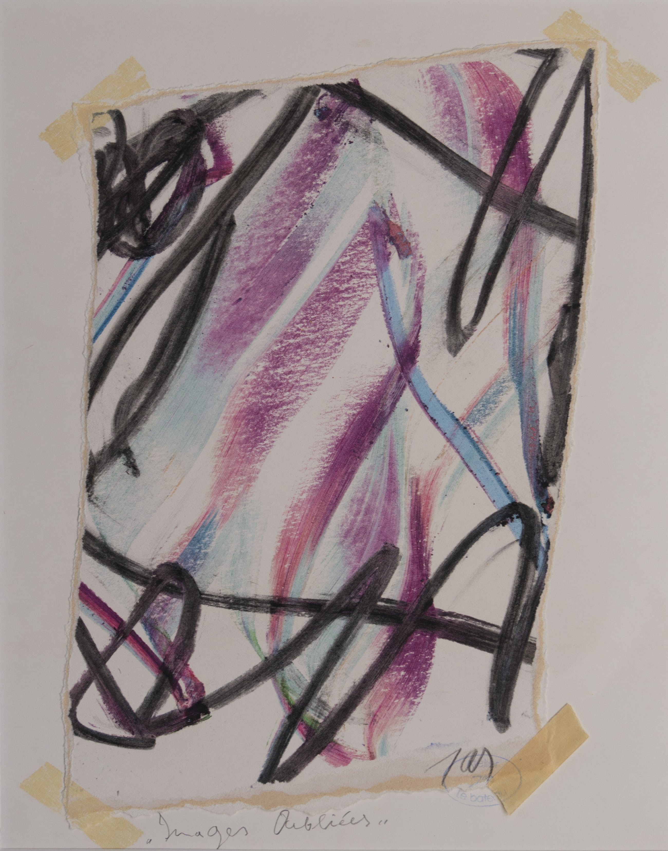 Getekend met het speciaal door JAS ontwikkelde Clowny-krijt, meerkleurig krijt wat bij elke hoek en elke beweging een ander effect sorteert. Ook Karel Appel en Willem de Kooning hebben later gebruik gemaakt van zijn krijt.