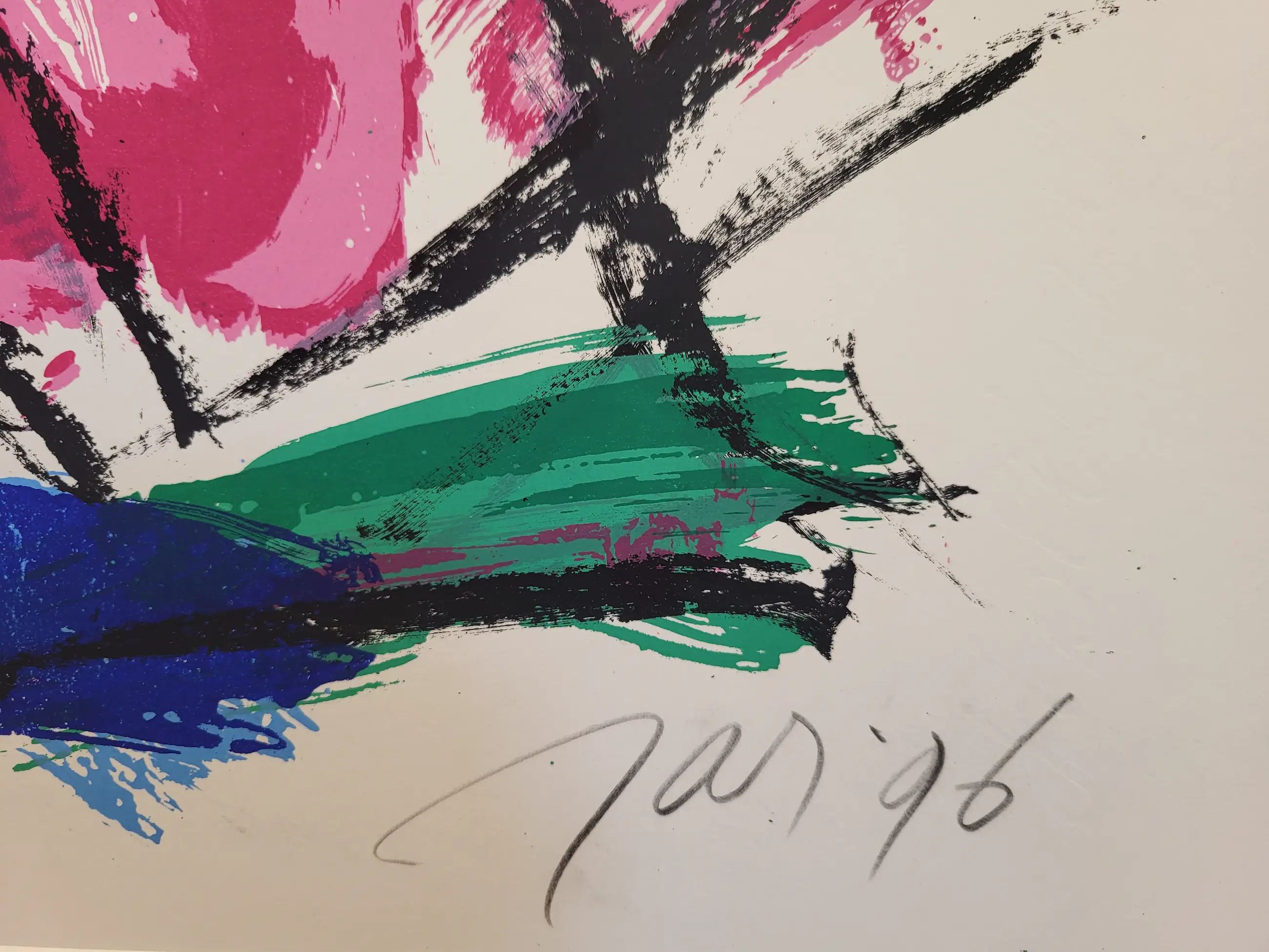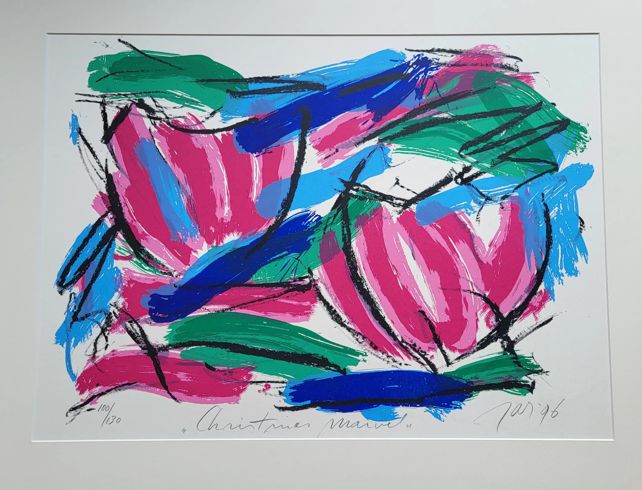 Mooie karakteristieke JAS zeefdruk op dik papier. Handgesigneerd, gedateerd (1996) en genummerd (nummer 100 uit een oplage van 130).