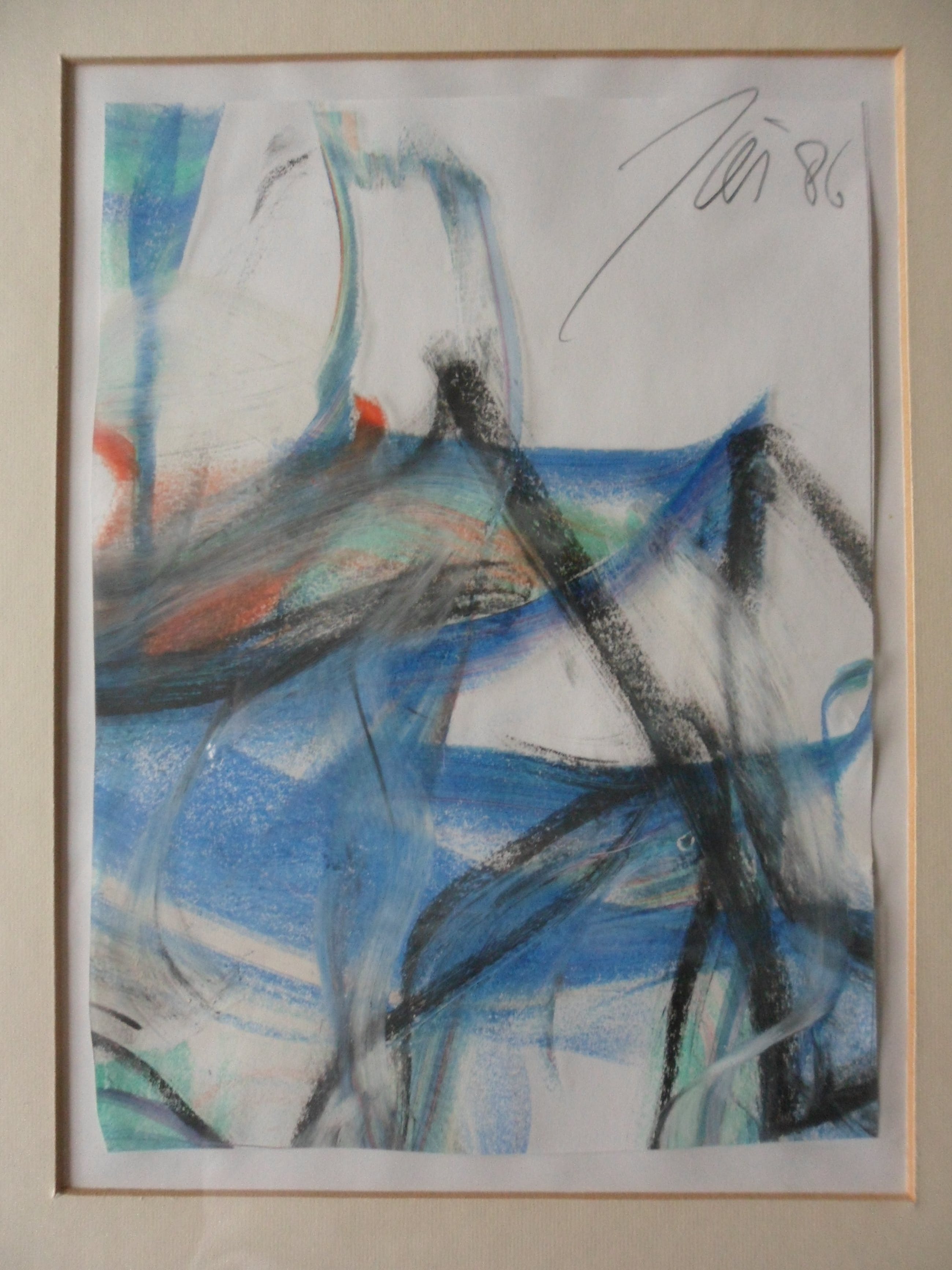 Getekend met het speciaal door JAS ontwikkelde Clowny-krijt, meerkleurig krijt wat bij elke hoek en elke beweging een ander effect sorteert. Ook Karel Appel en Willem de Kooning hebben later gebruik gemaakt van zijn krijt.