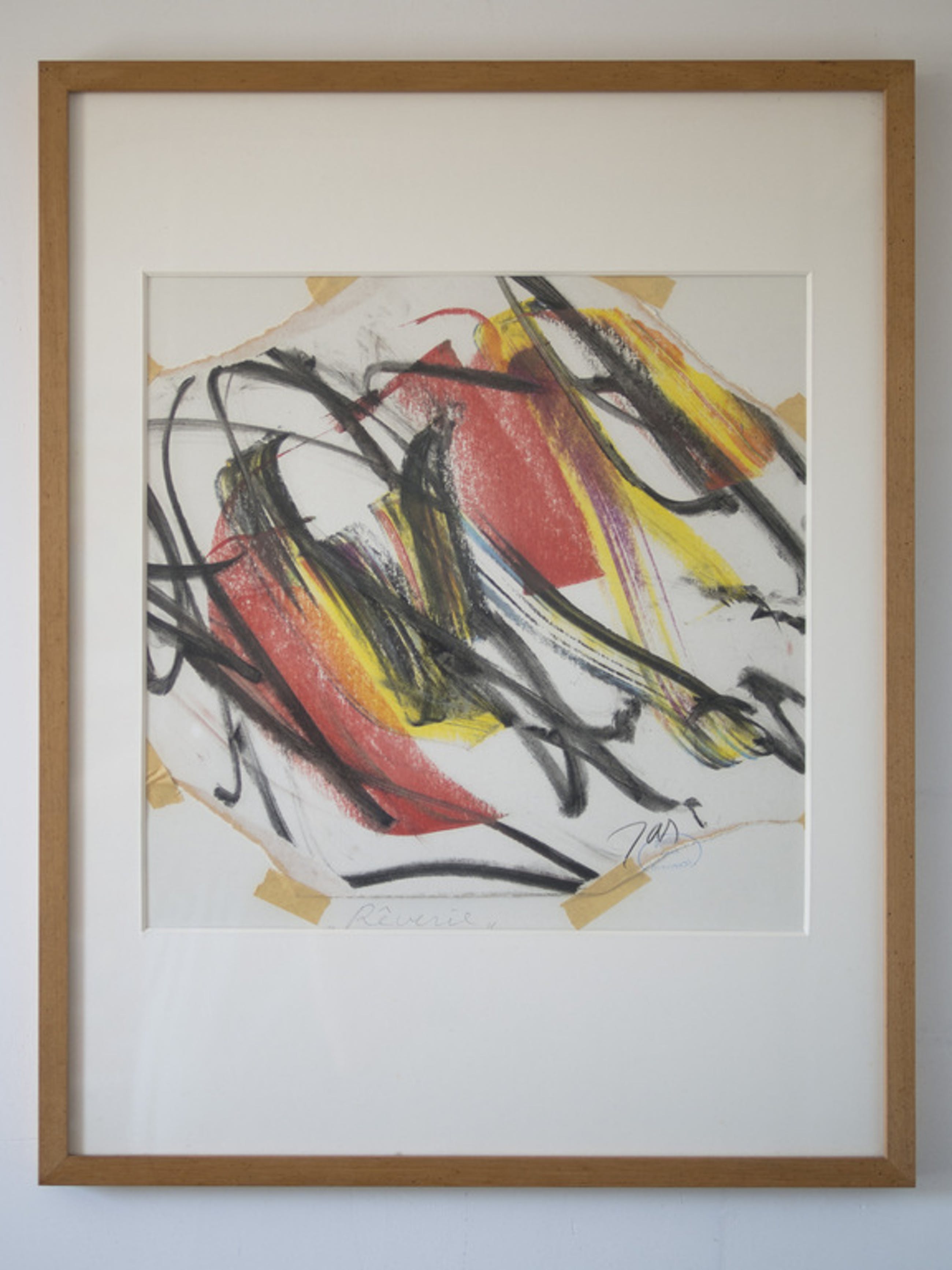 Het meest opvallende aan dit kunstwerk is dat het uitgescheurd en daarna vastgeplakt lijkt te zijn. Heeft de kunstenaar het werk eerst verscheurd en zich daarna bedacht? Hoe dan ook, de scheuren zijn onderdeel van het kunstwerk geworden en maken het tot een uniek en tot de verbeelding sprekend werk.