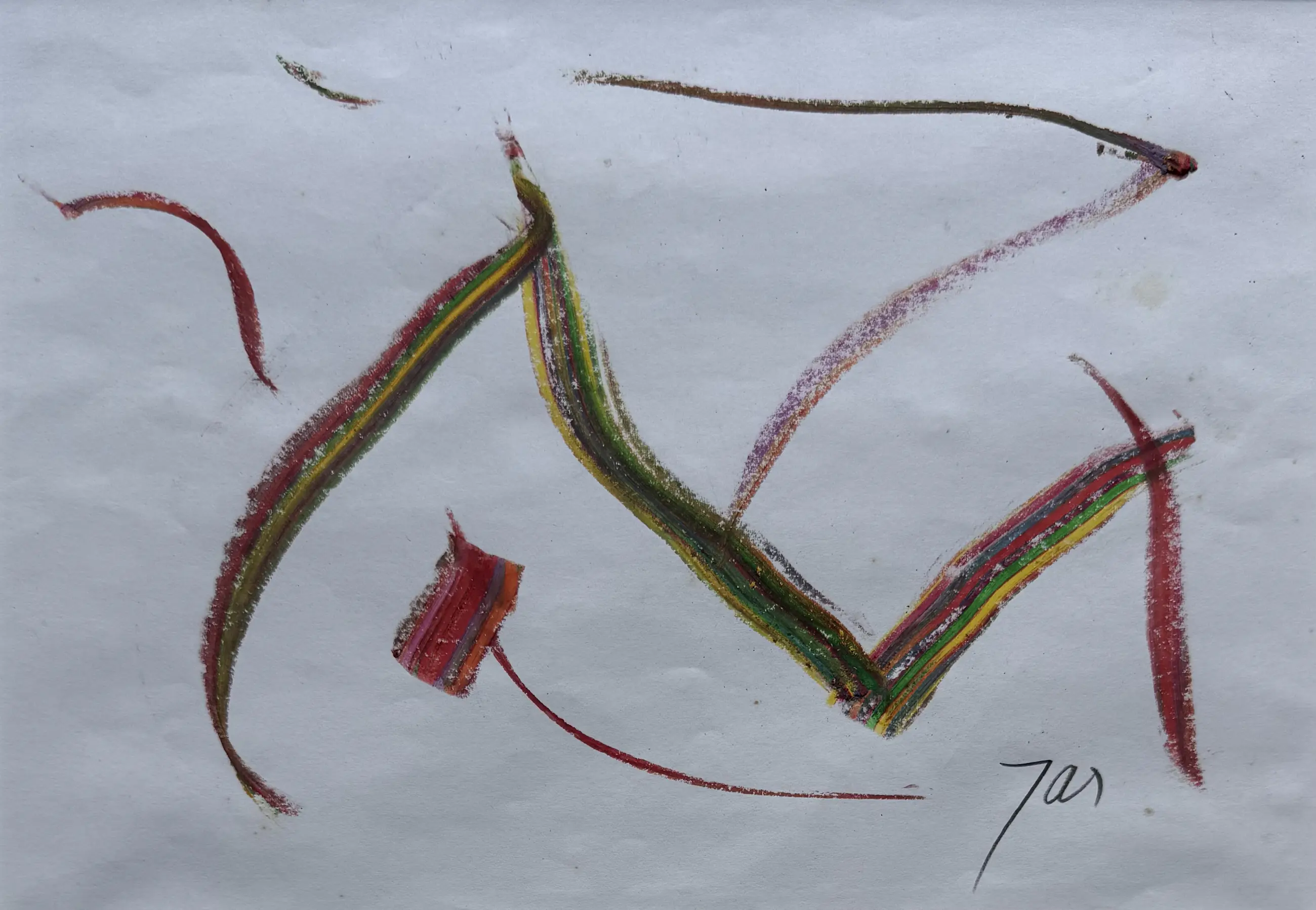 Getekend met het speciaal door JAS ontwikkelde Clowny-krijt, meerkleurig krijt wat bij elke hoek en elke beweging een ander effect sorteert. Ook Karel Appel en Willem de Kooning hebben later gebruik gemaakt van zijn krijt.