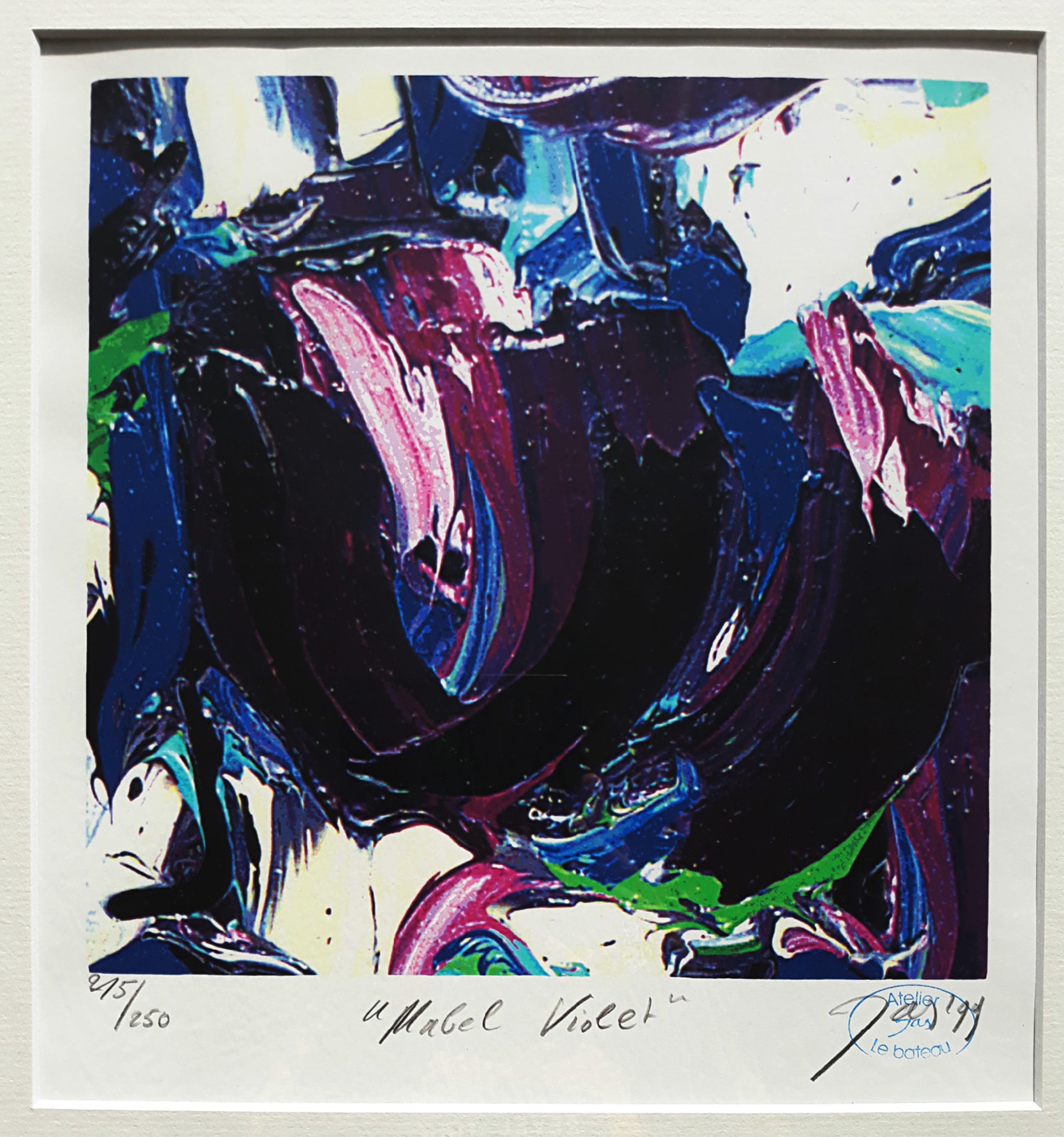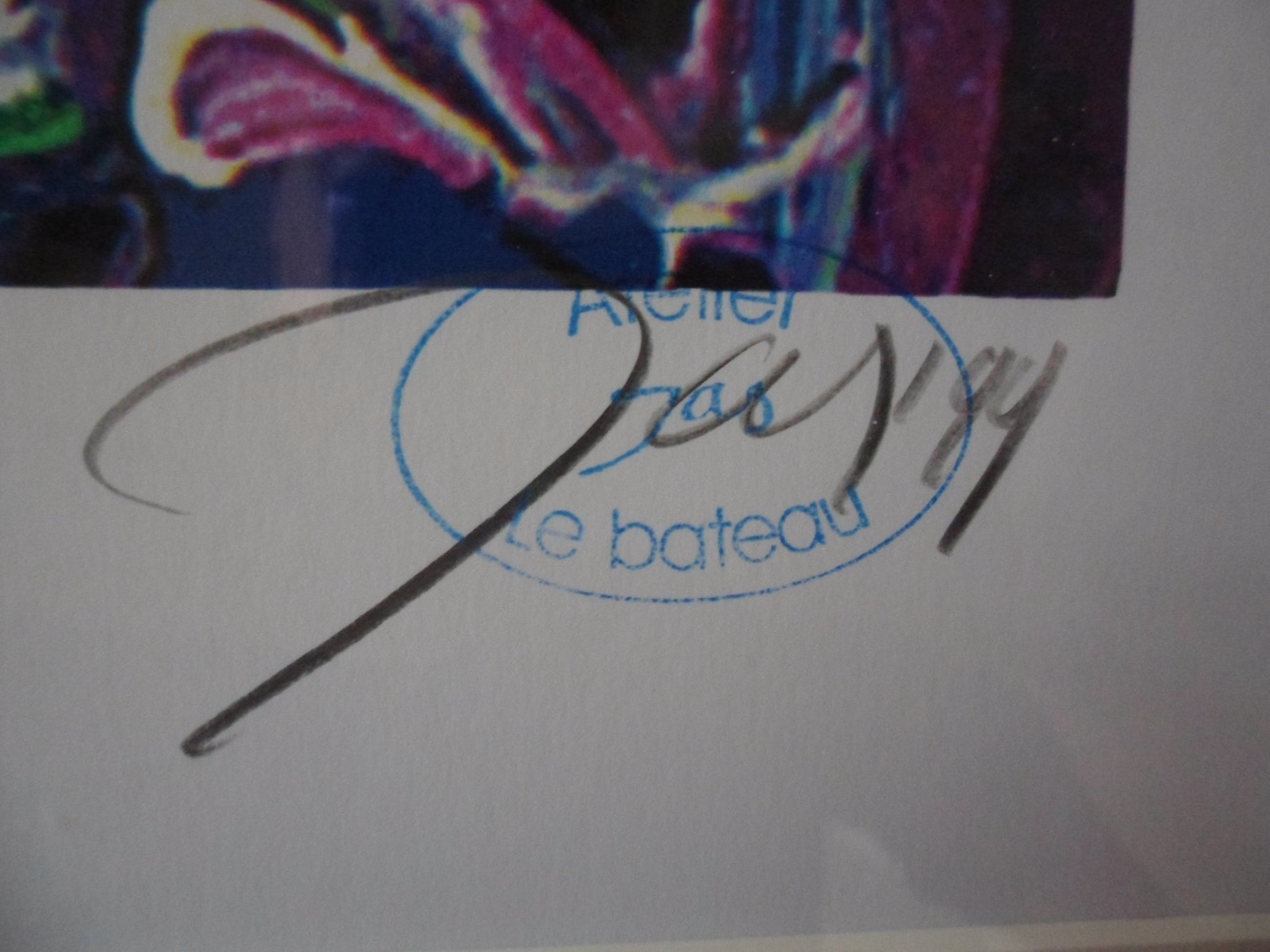 Prachtig, kleurrijk werk van JAS (Johan Adriaan Smit). Zeefdruk op papier, met potlood gesigneerd, gedateerd (’99), getiteld en genummerd (243/250).