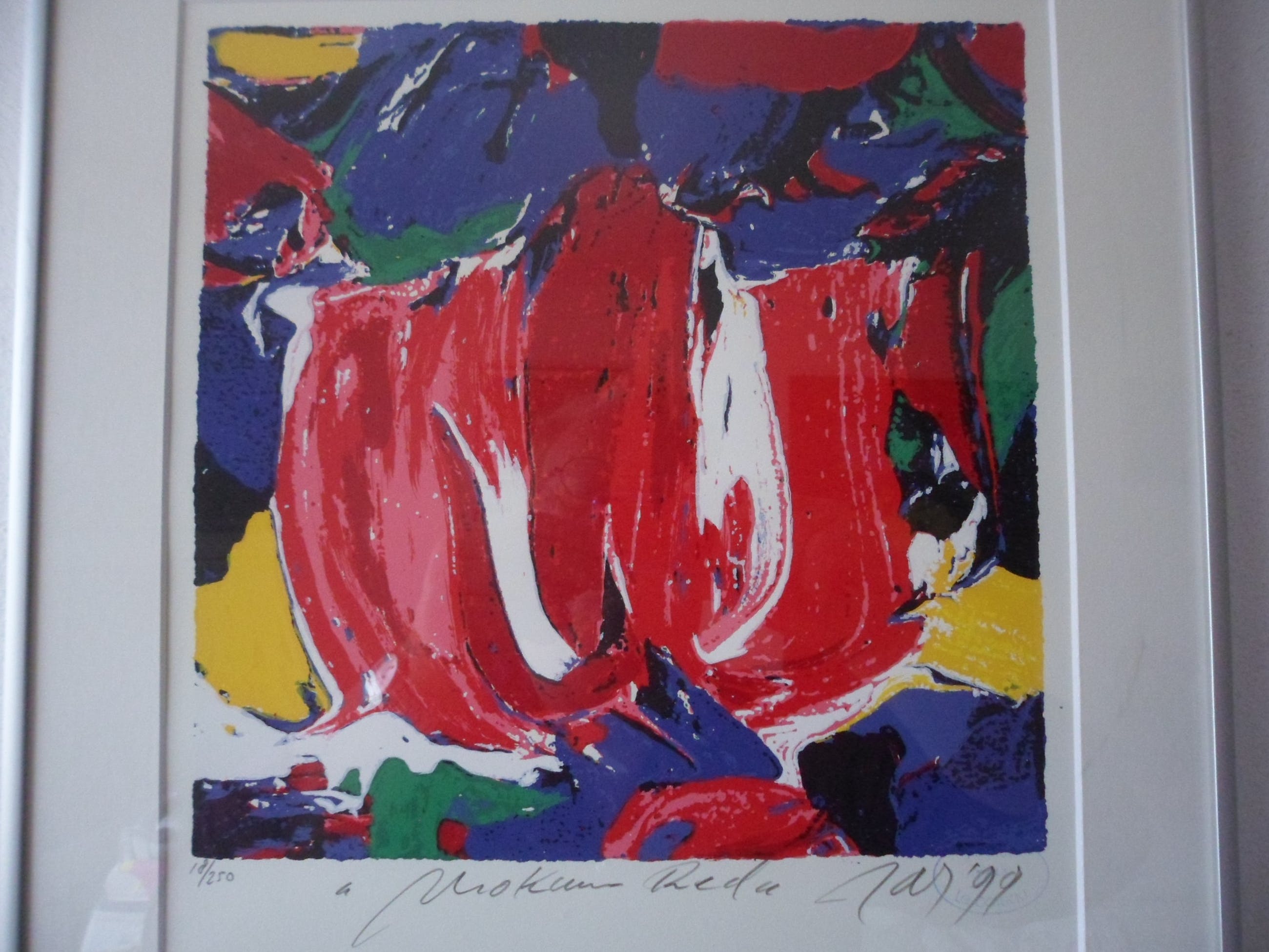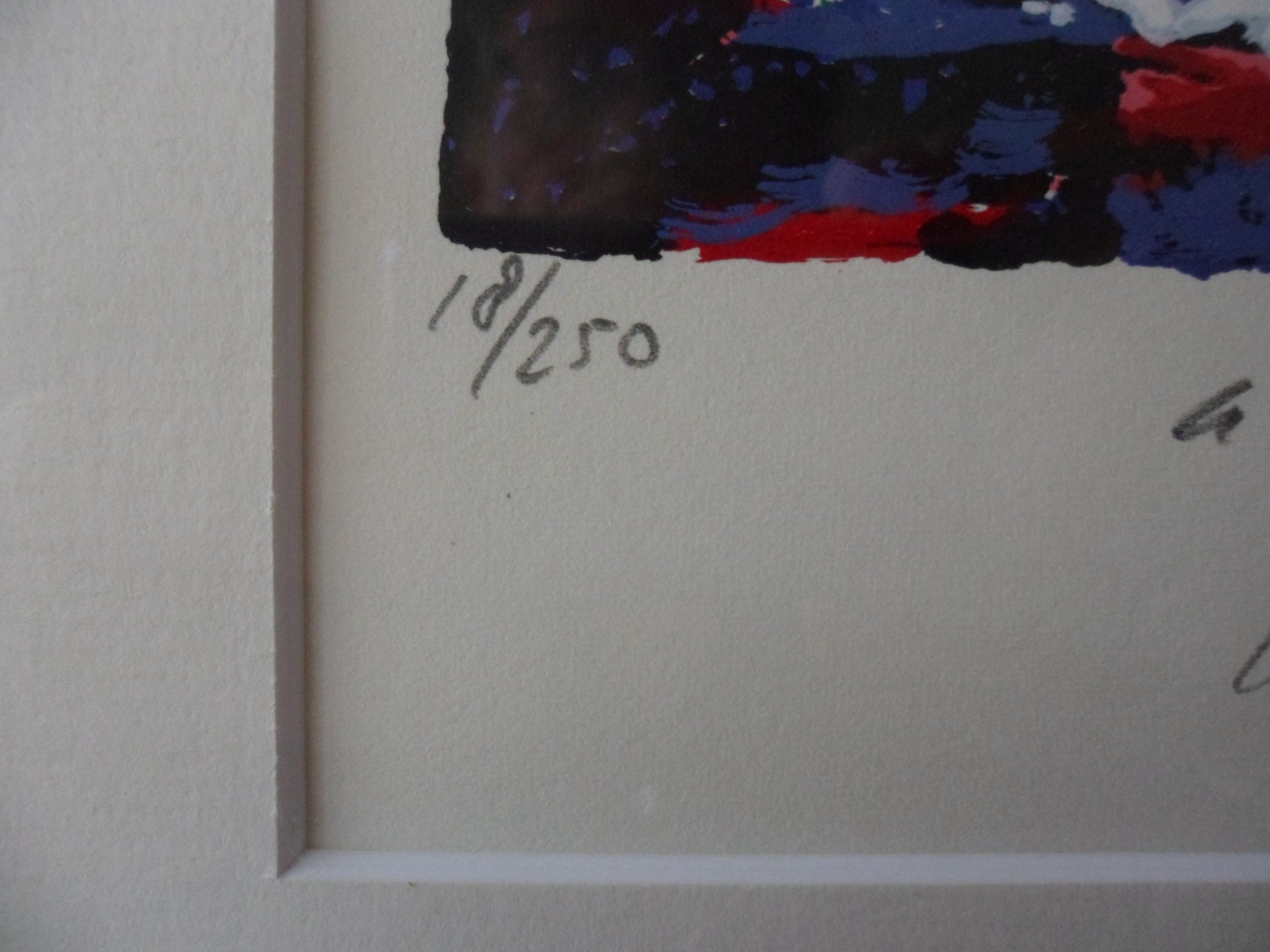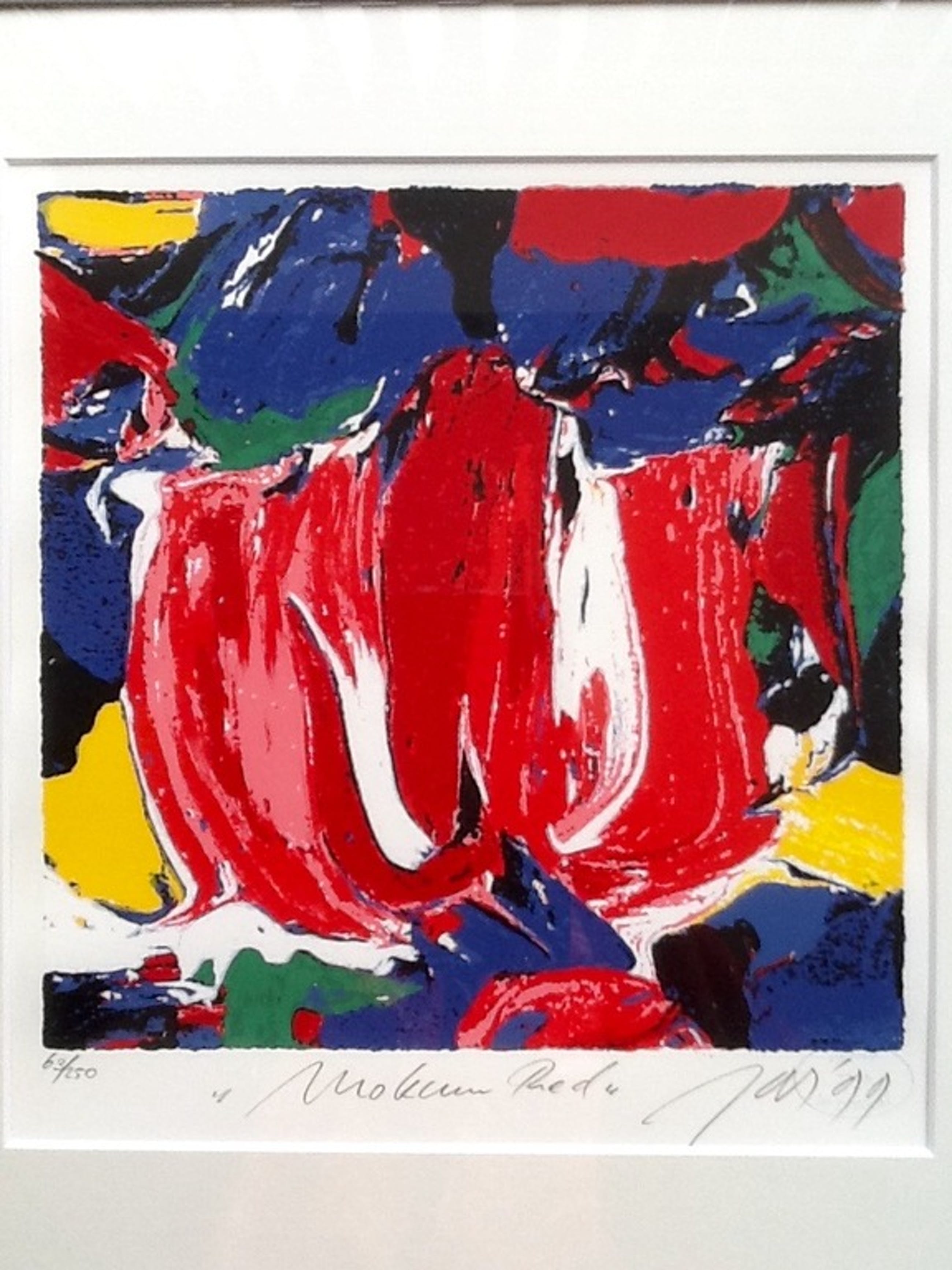 Prachtig, kleurrijk werk van JAS (Johan Adriaan Smit). Zeefdruk op papier, met potlood gesigneerd, gedateerd (’99), getiteld en genummerd (18/250).