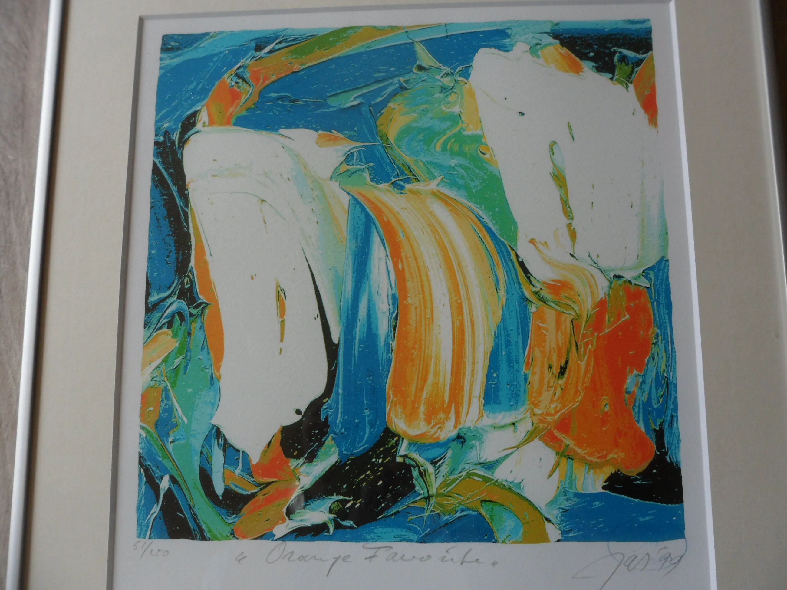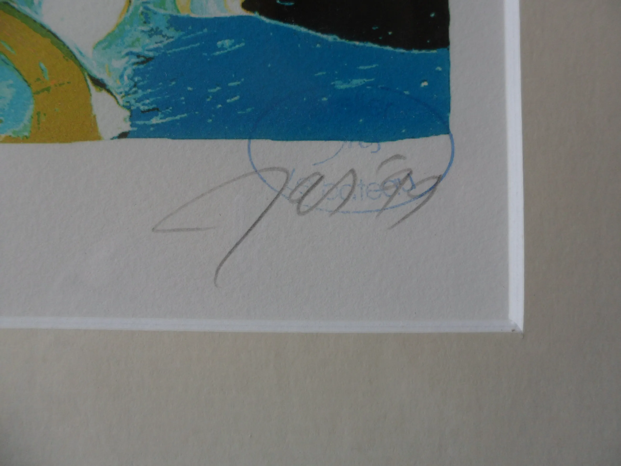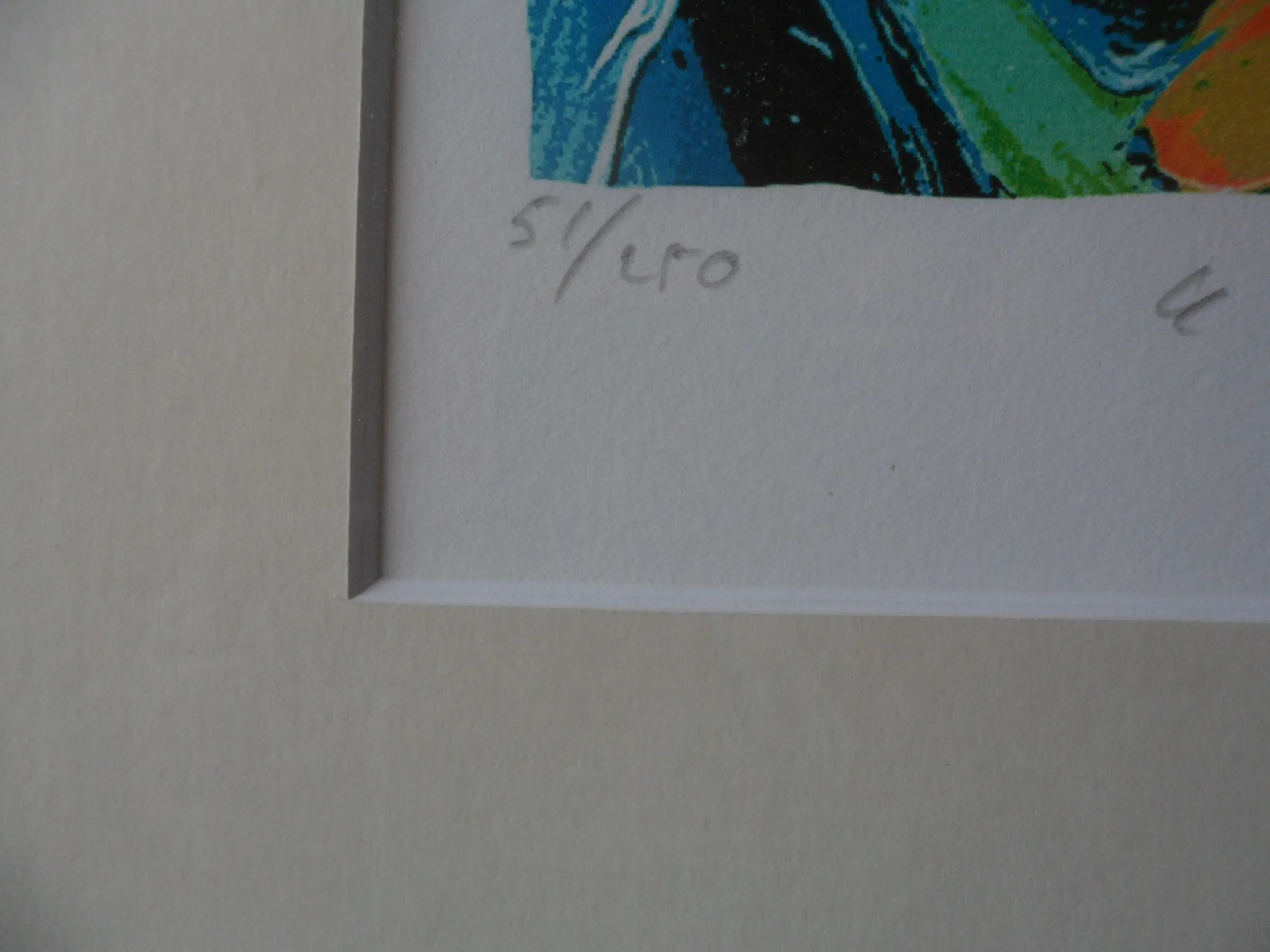 Prachtig, kleurrijk werk van JAS (Johan Adriaan Smit). Zeefdruk op papier, met potlood gesigneerd, gedateerd (’99), getiteld en genummerd (51/250).