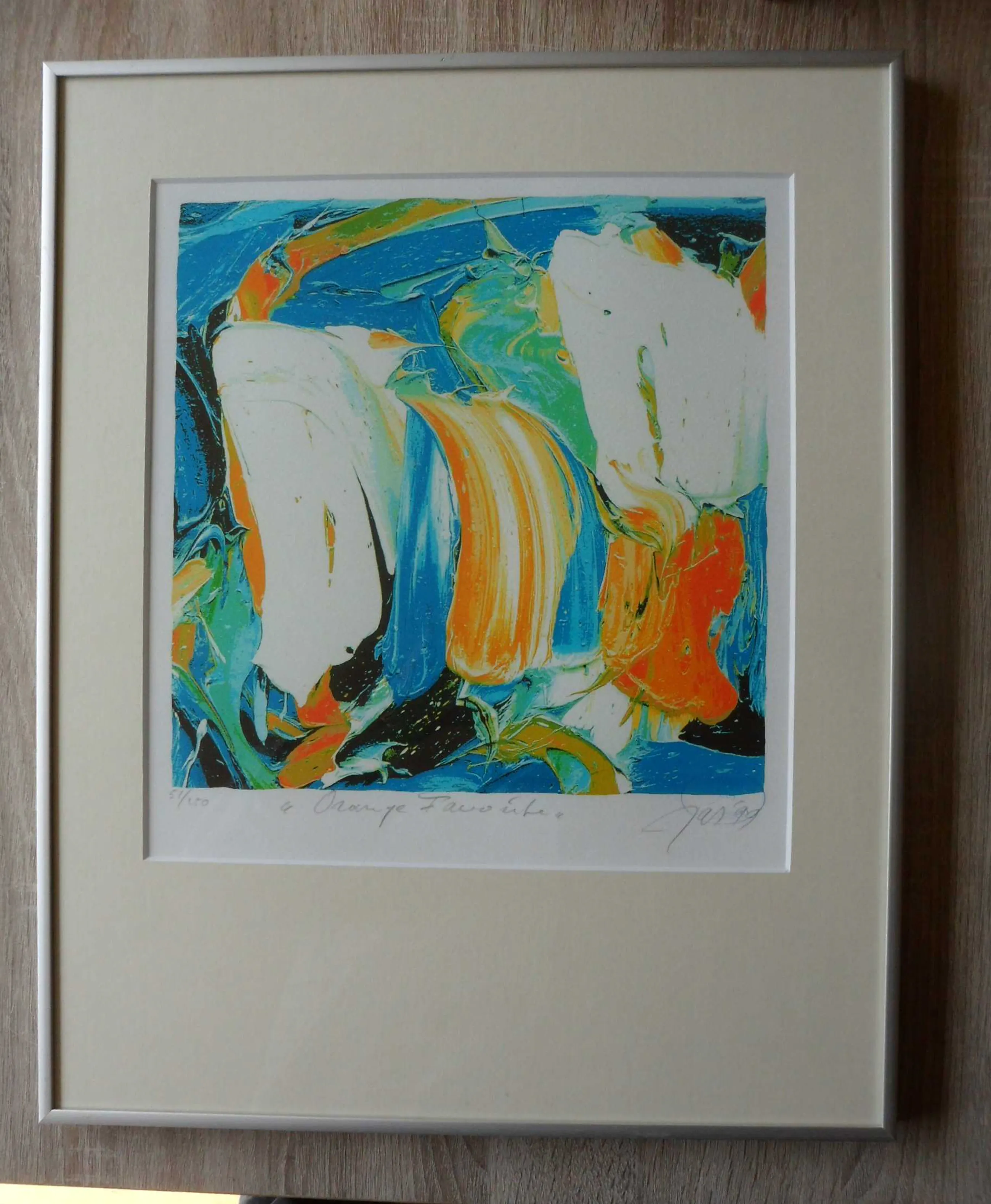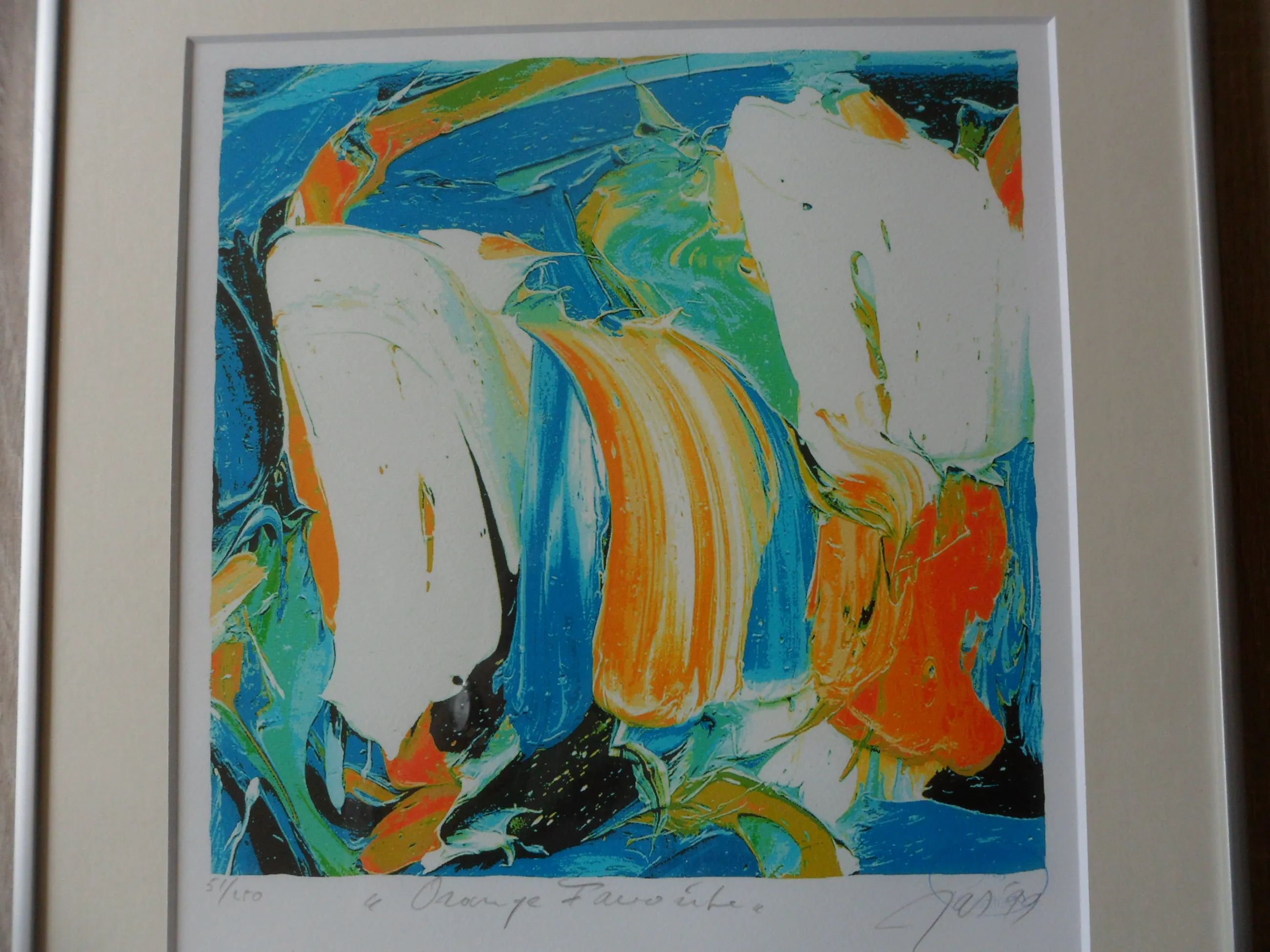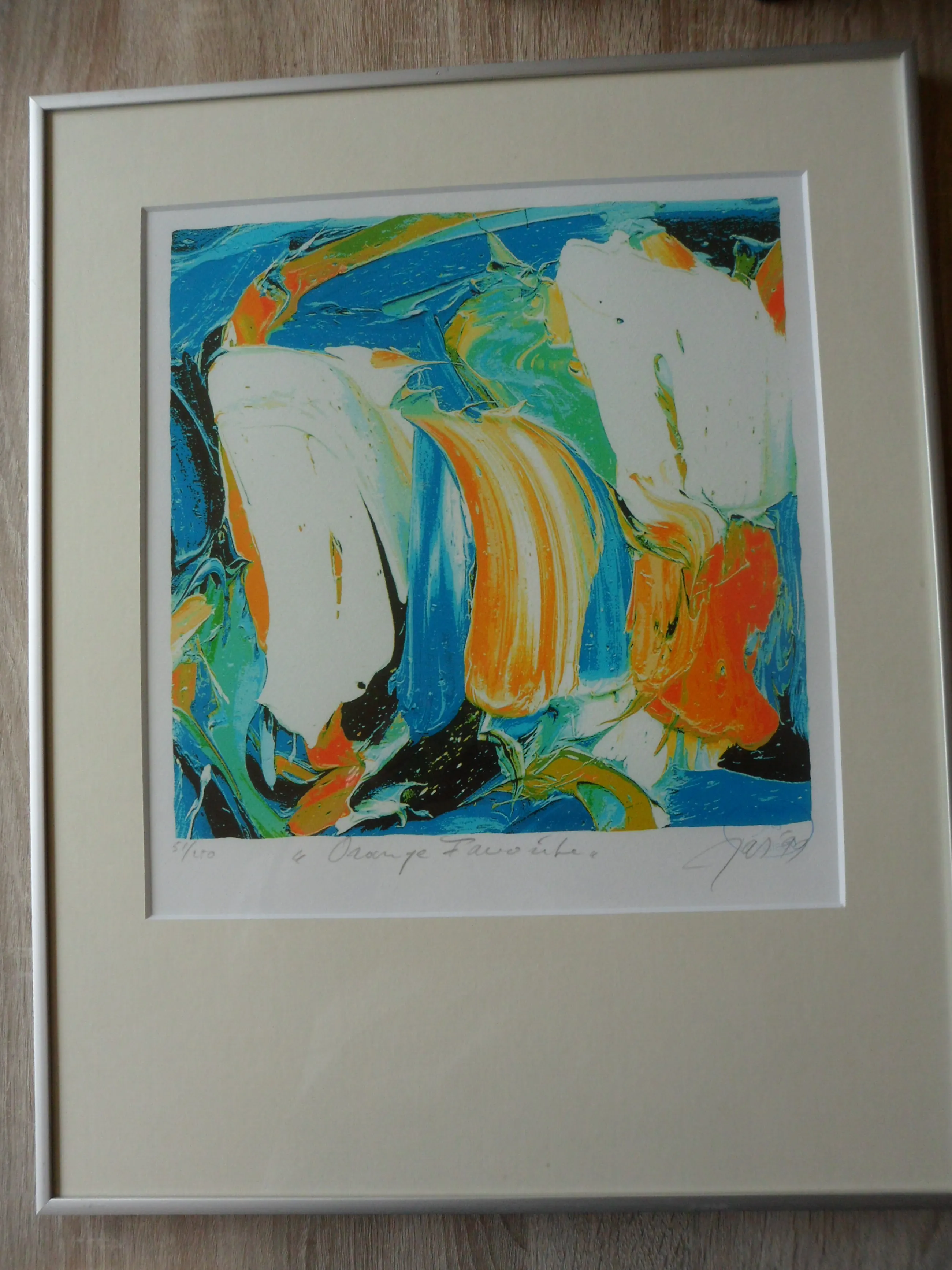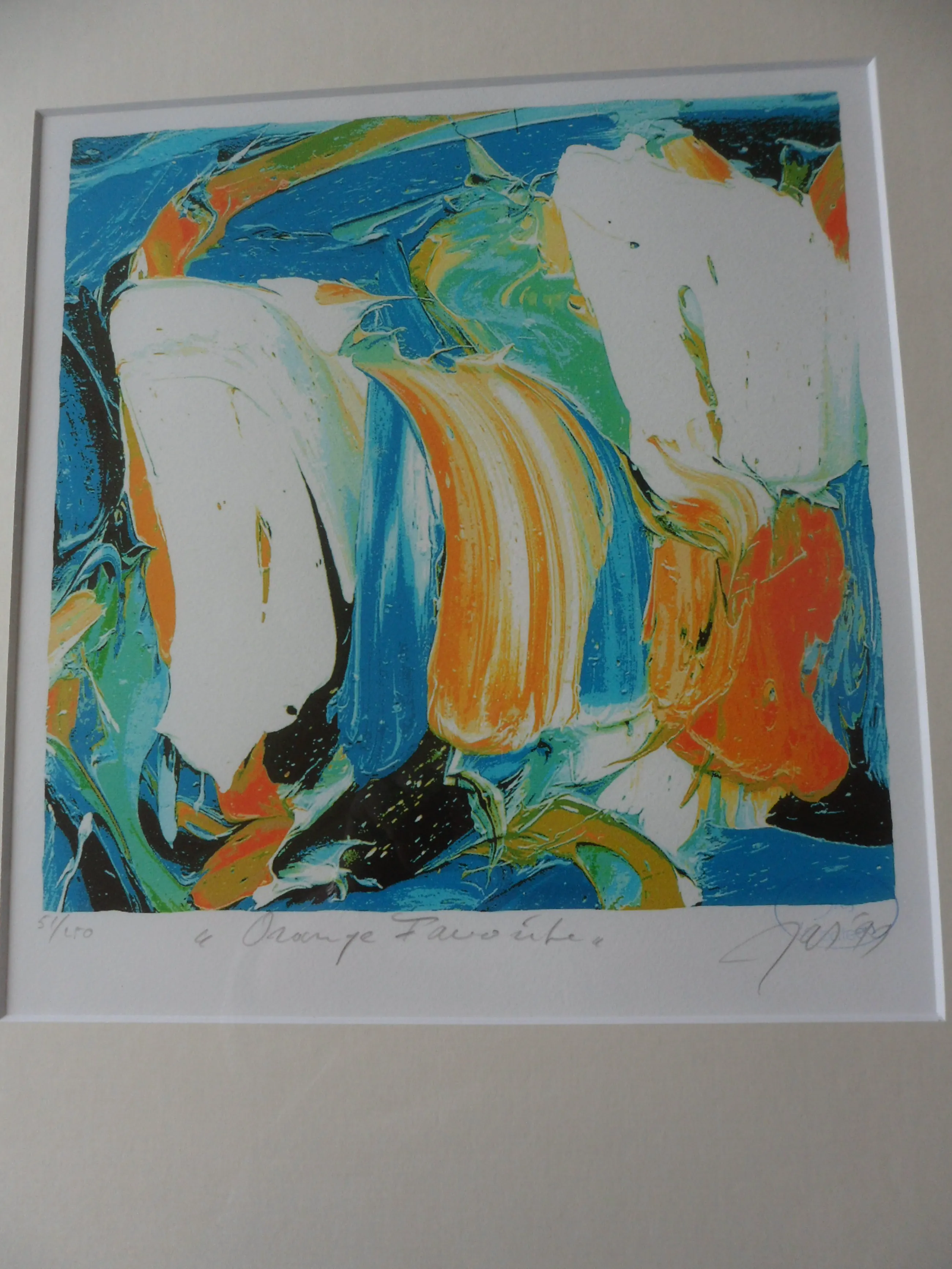 Prachtig, kleurrijk werk van JAS (Johan Adriaan Smit). Zeefdruk op papier, met potlood gesigneerd, gedateerd (’99), getiteld en genummerd (51/250).