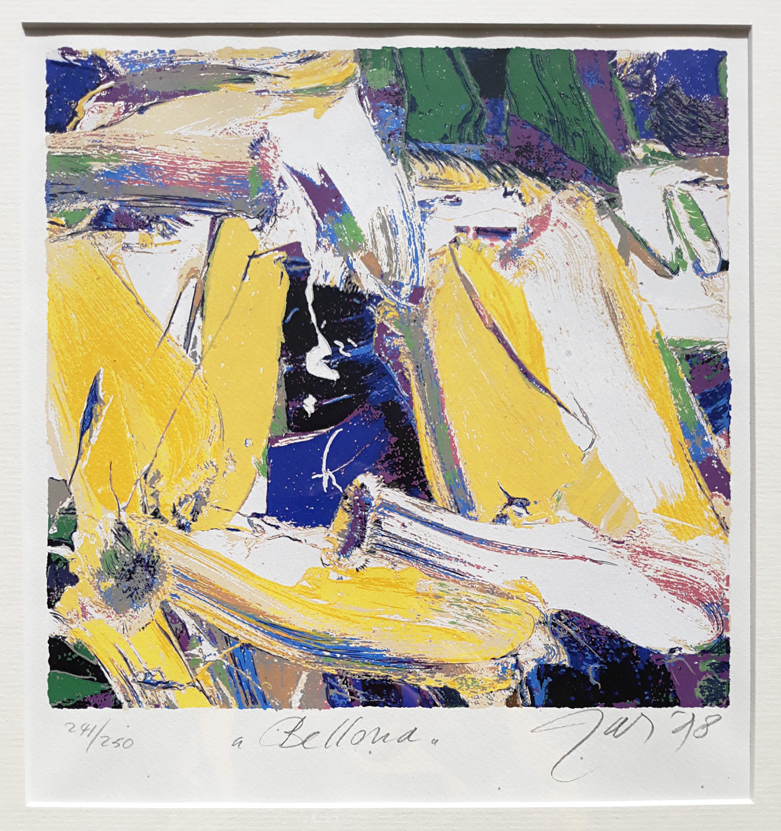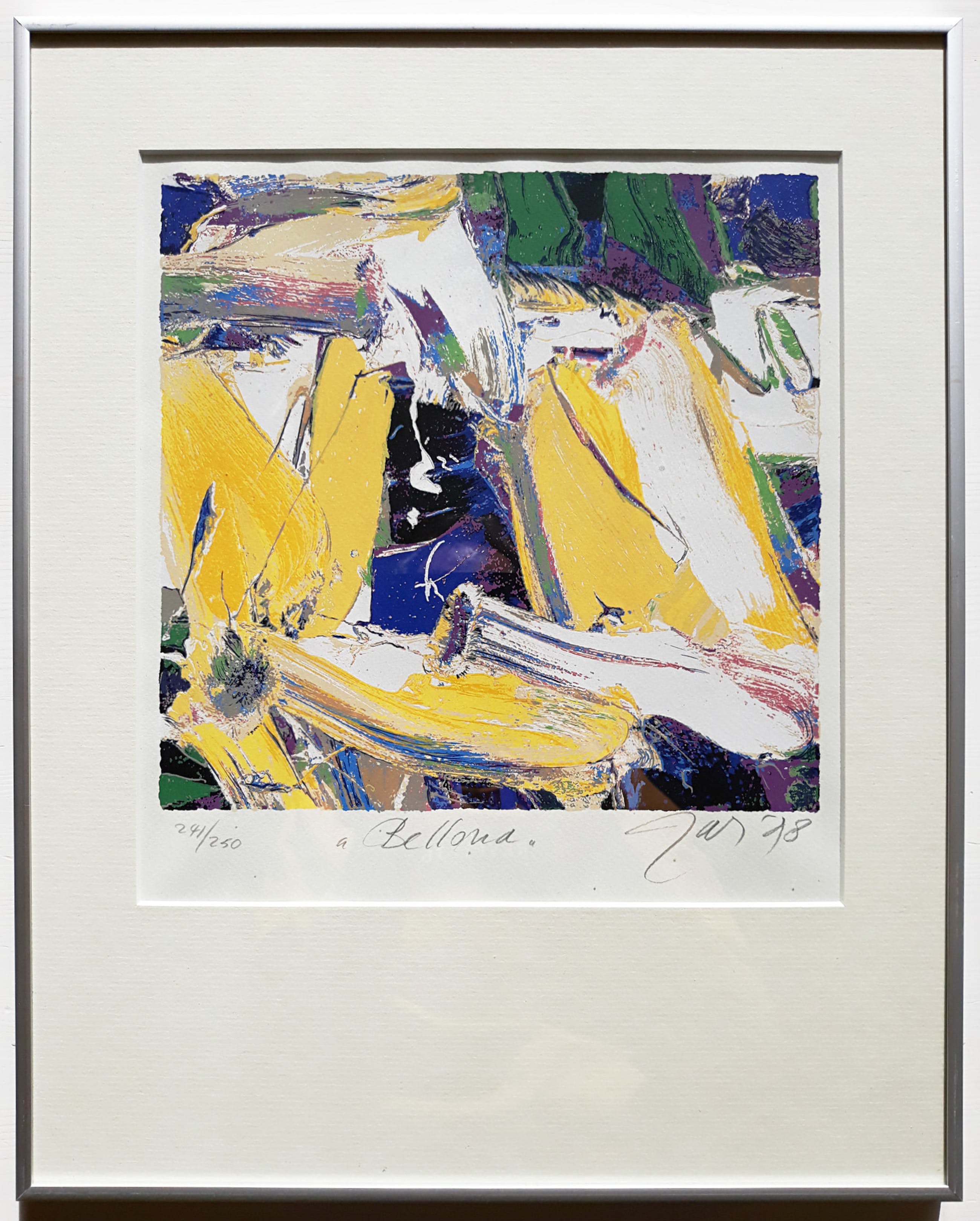 Prachtig, kleurrijk werk van JAS (Johan Adriaan Smit). Zeefdruk op papier, met potlood gesigneerd, gedateerd (’98), getiteld en genummerd (199/250).
