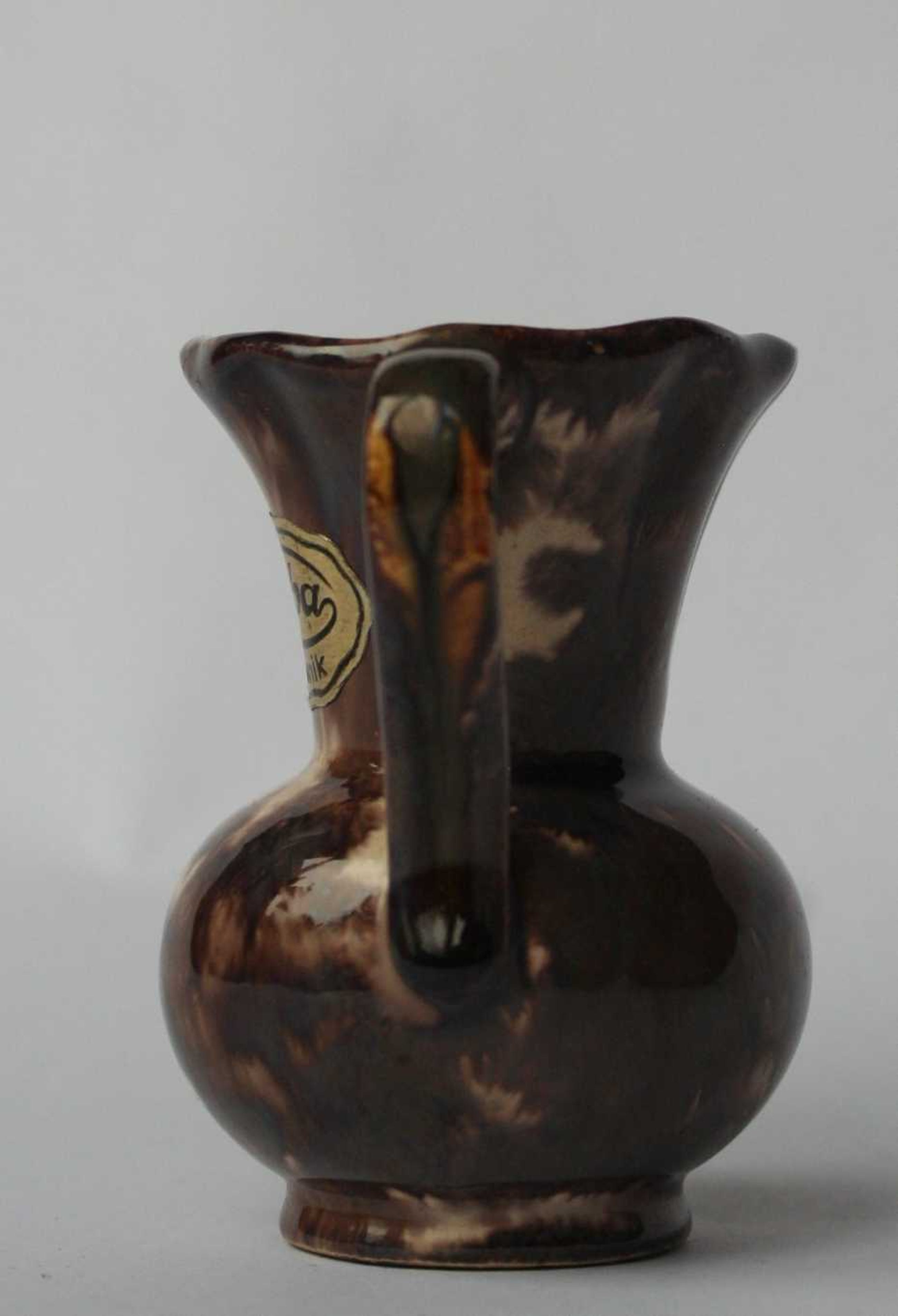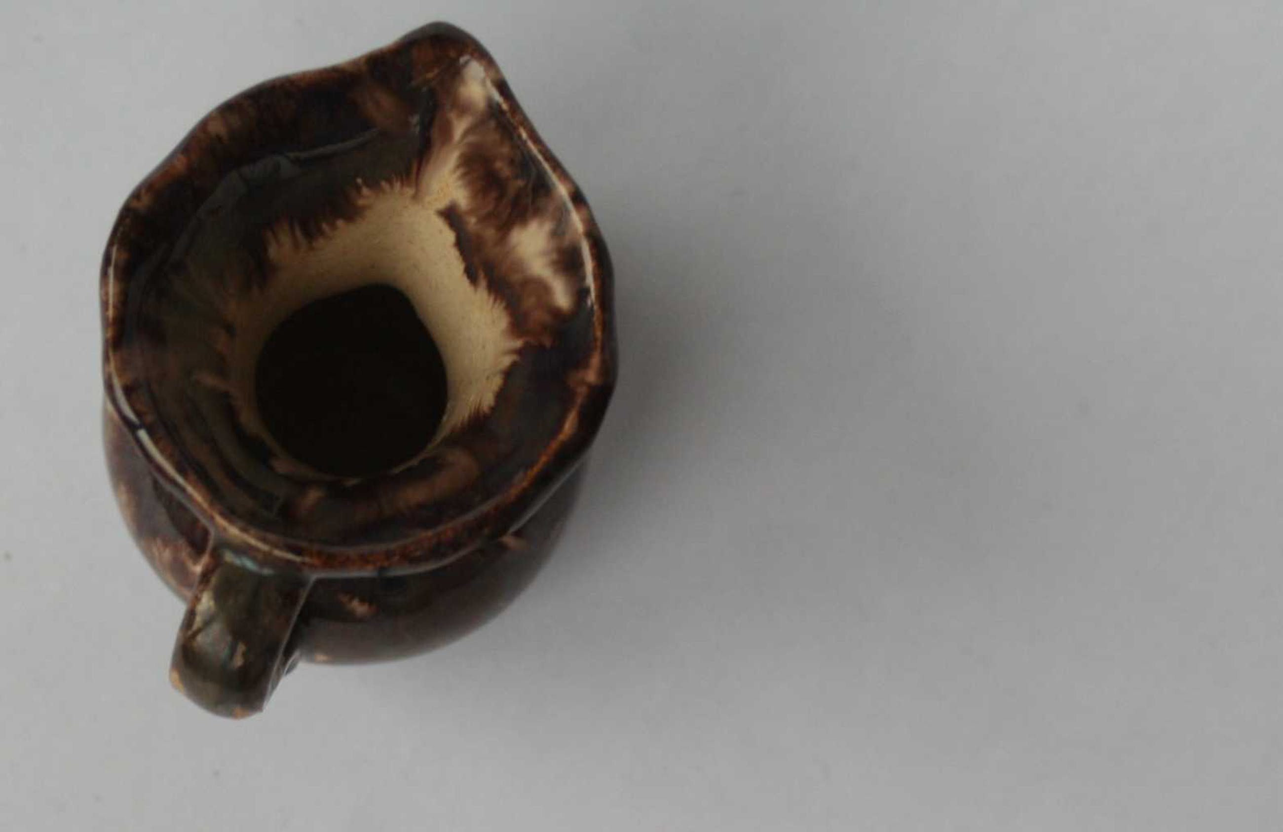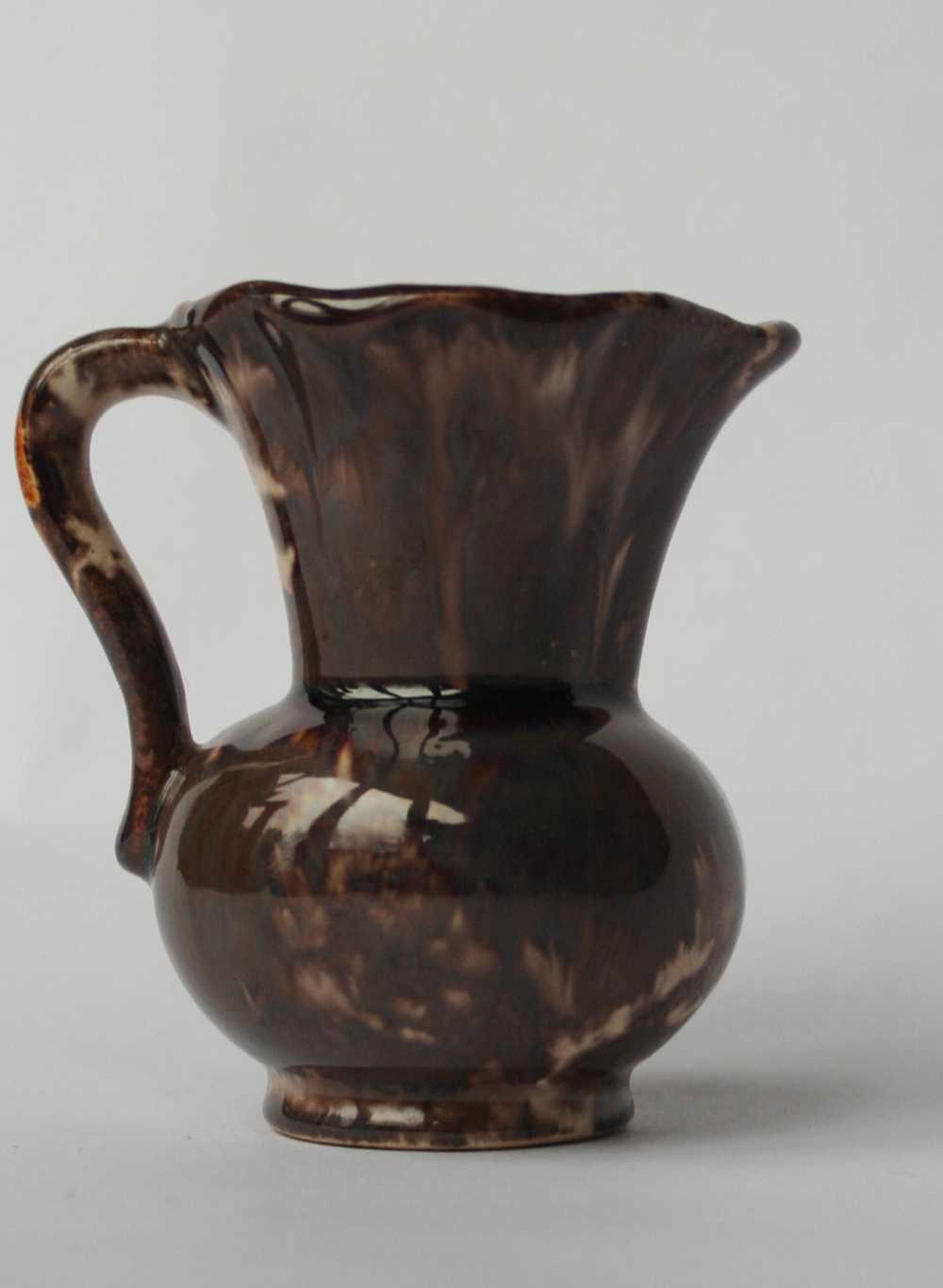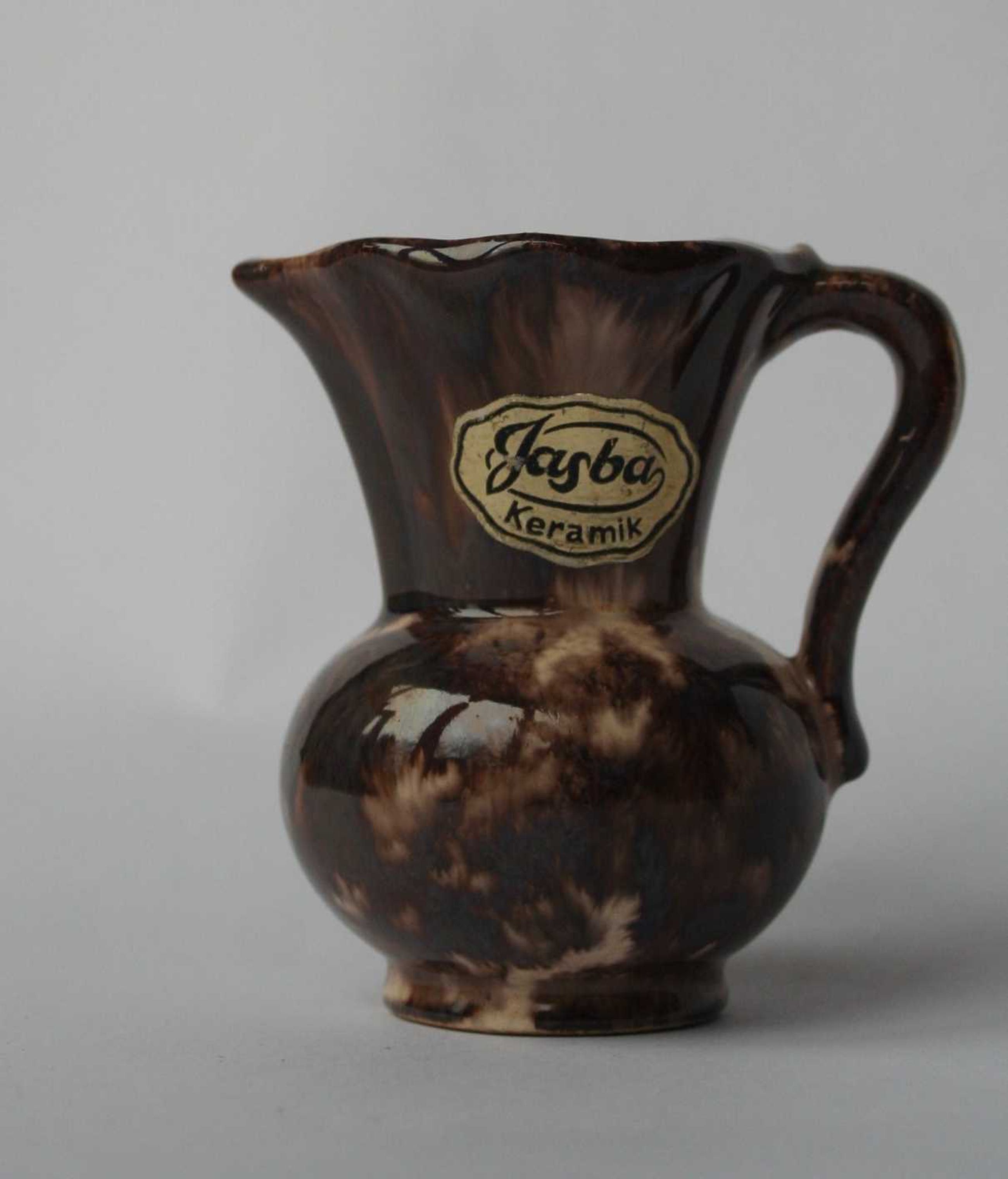 Kleine schenkkan van Jasba, in bruin / creme uitlopend glazuur. Sier / verzamelobject. Heeft ook een paarse tint en op het hengsel oranje / geel. Aan de onderzijde staat Germany en nummer 156, niet duidelijk leesbaar. Combineer eventueel met een van mijn andere keramiek objecten en bespaar in verzendkosten.
