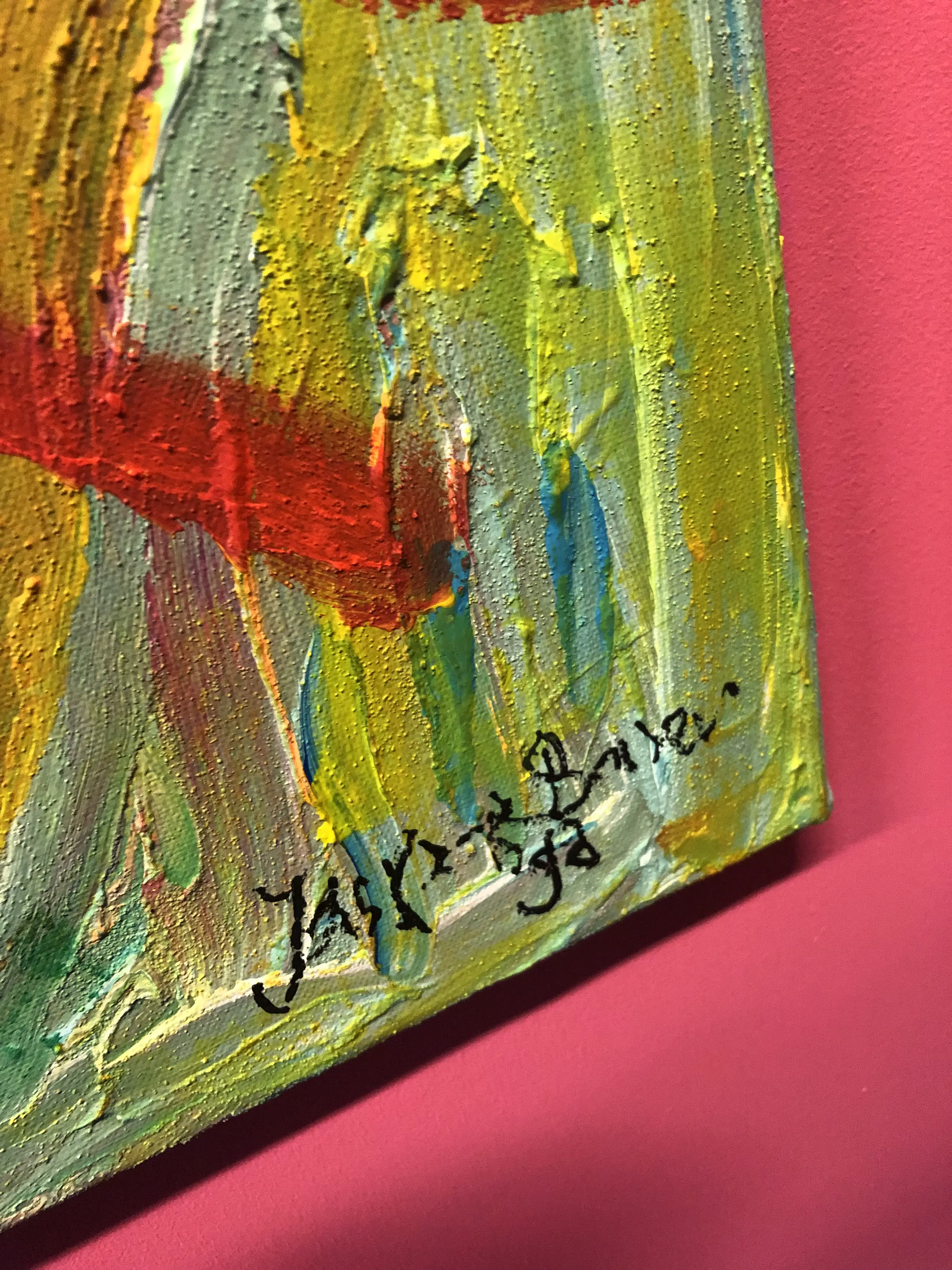 Dit werk is in nieuwe baklijst gezet. De verf is dik opgebracht en is geschilderd met kwast en aangebracht met schildersmes. Het canvas is linnen. Het werk kan direct opgehangen worden. En is nu in het atelier.