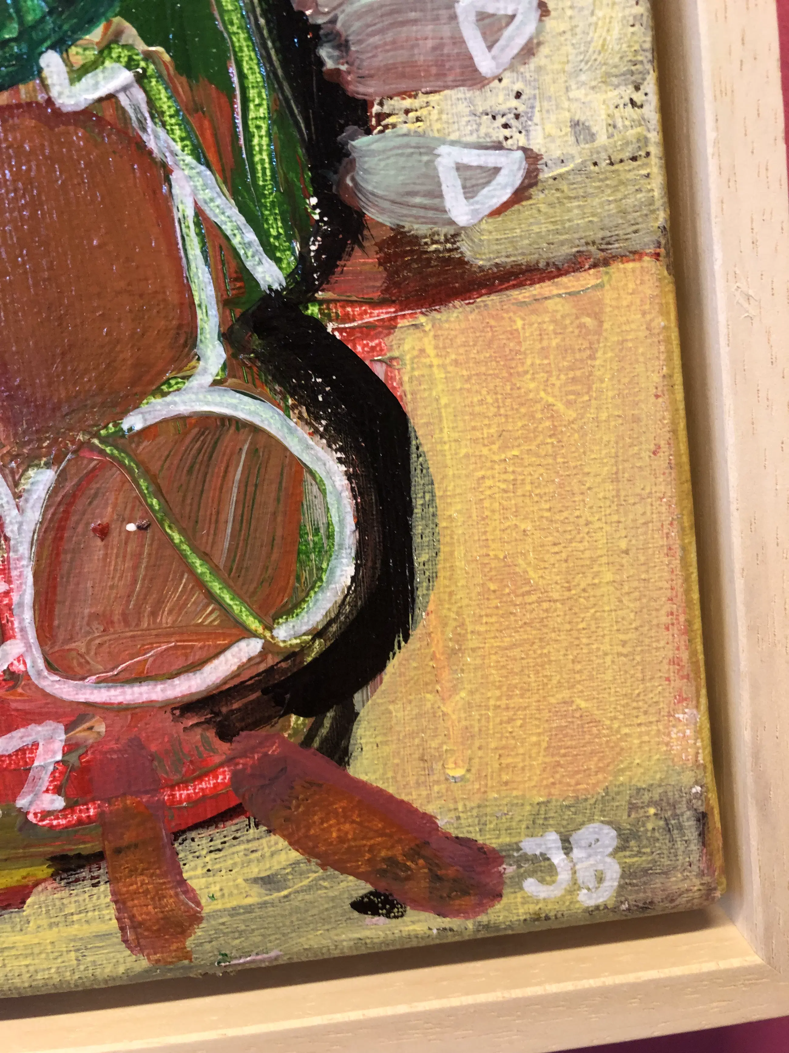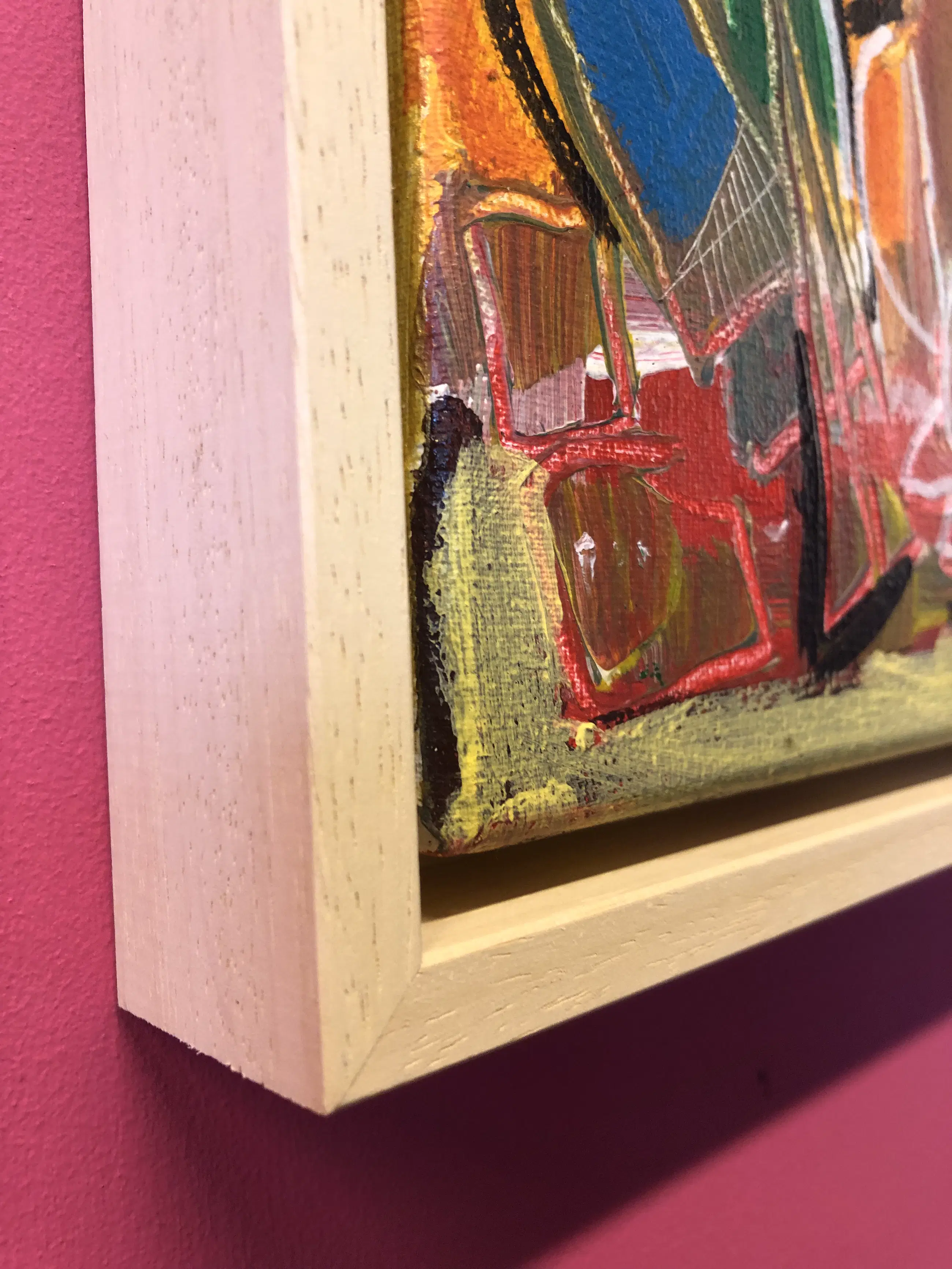 Leuk schilderij in baklijst. Uit het atelier van de kunstenaar. Kan zo aan de muur.
