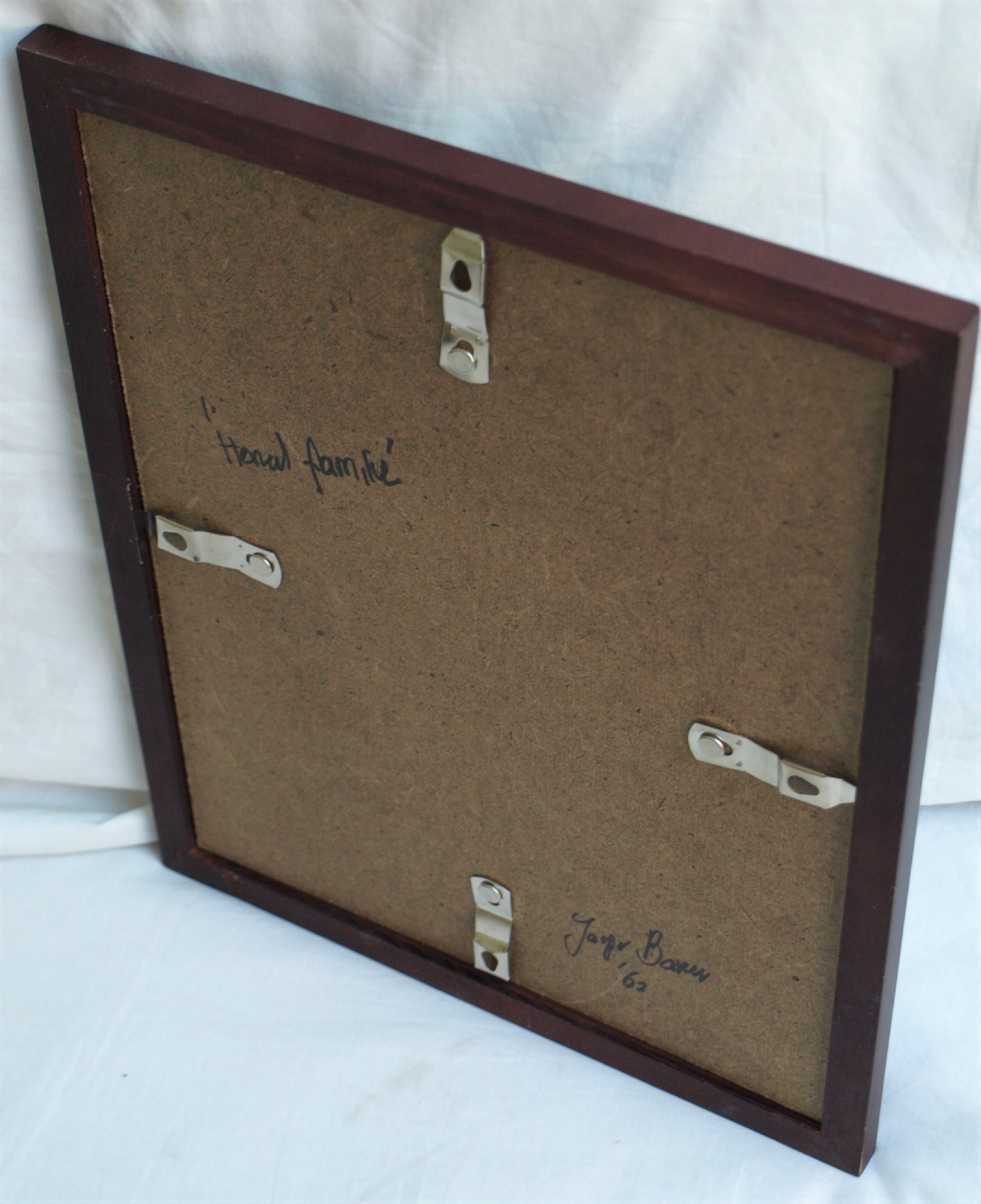 -Gesigneerd met de initialen van de kunstenaar (‘JB’) en gedateerd linksonder. Ook gesigneerd en getiteld op de achterkant van de lijst.