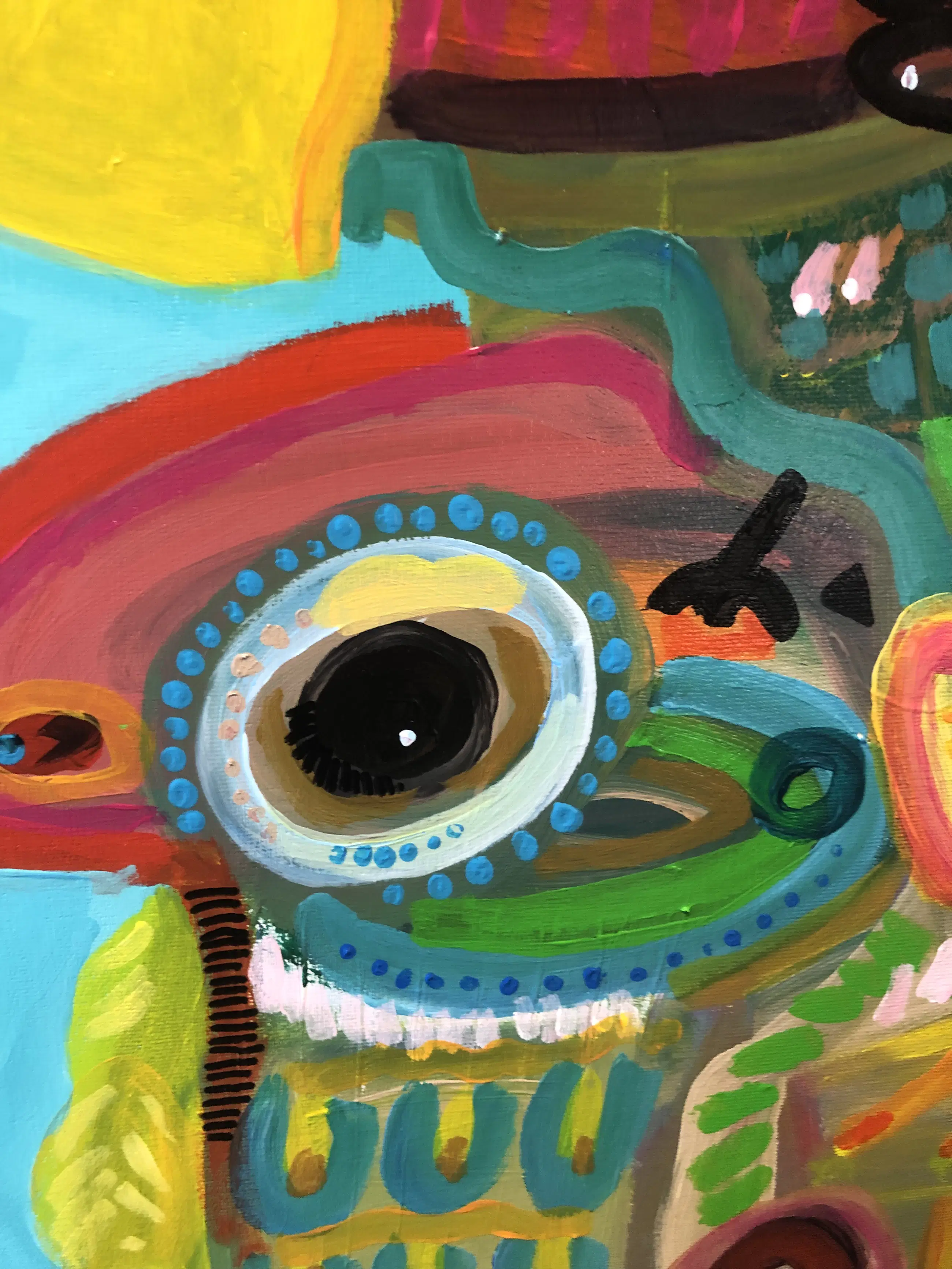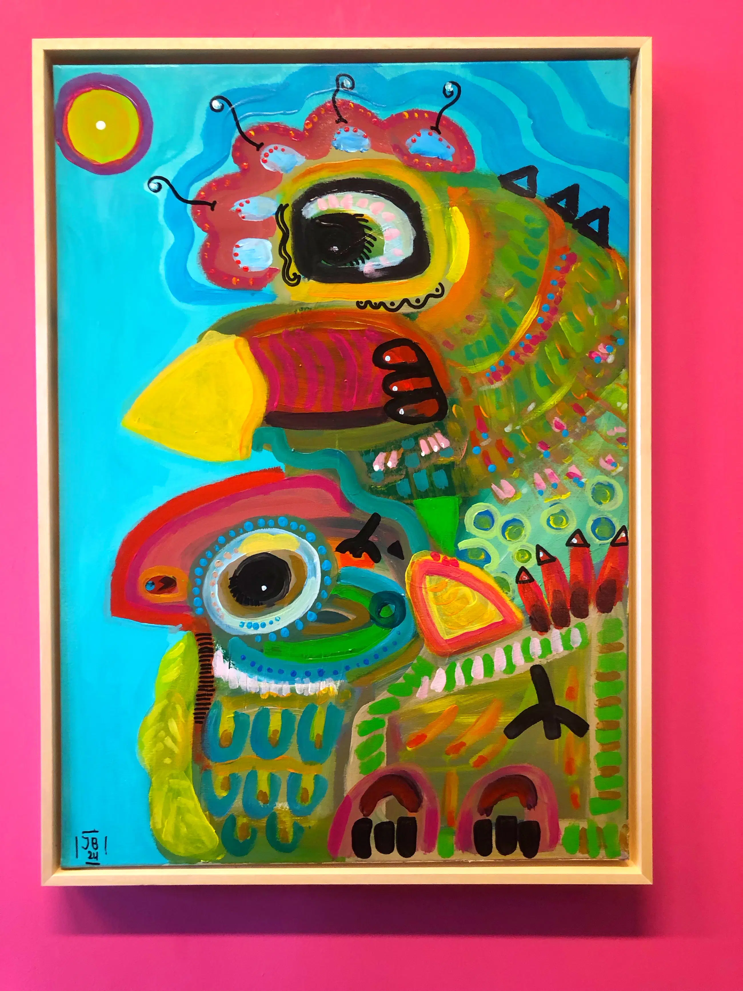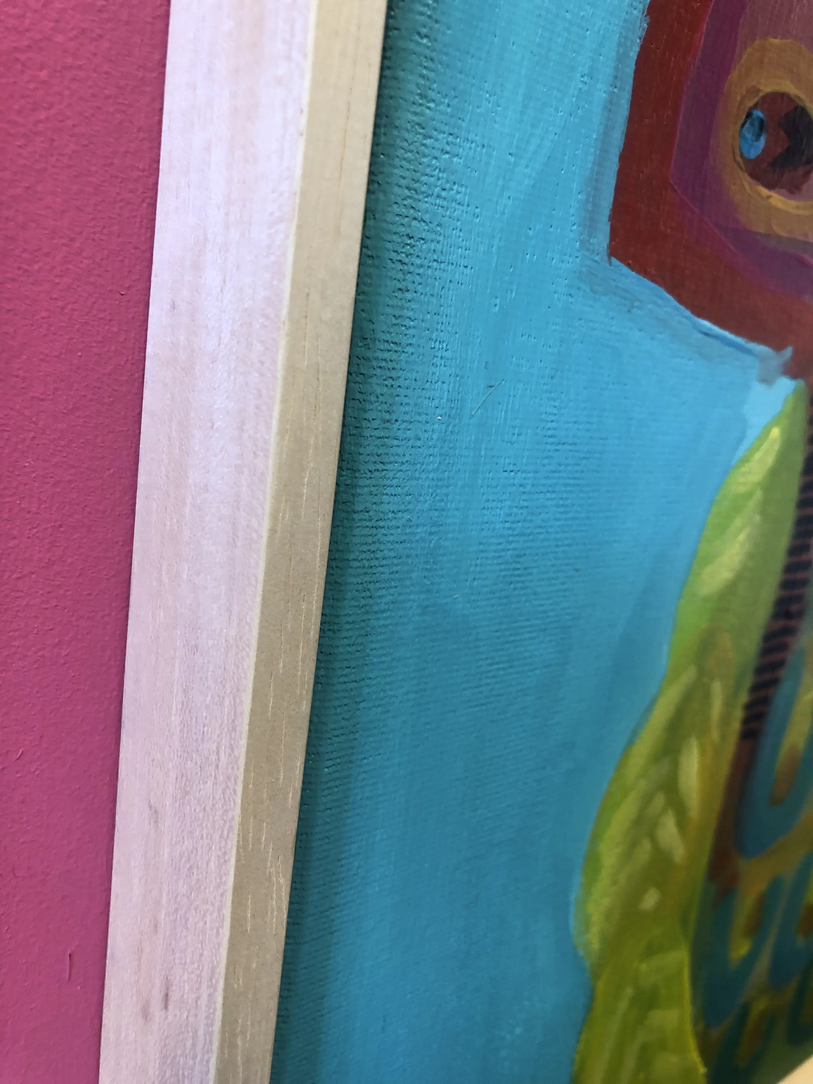 Dit schilderij uit 2024 is bevestigd in een nieuwe baklijst. Het werk staat in het atelier van Jasper en kan worden bezichtigd.