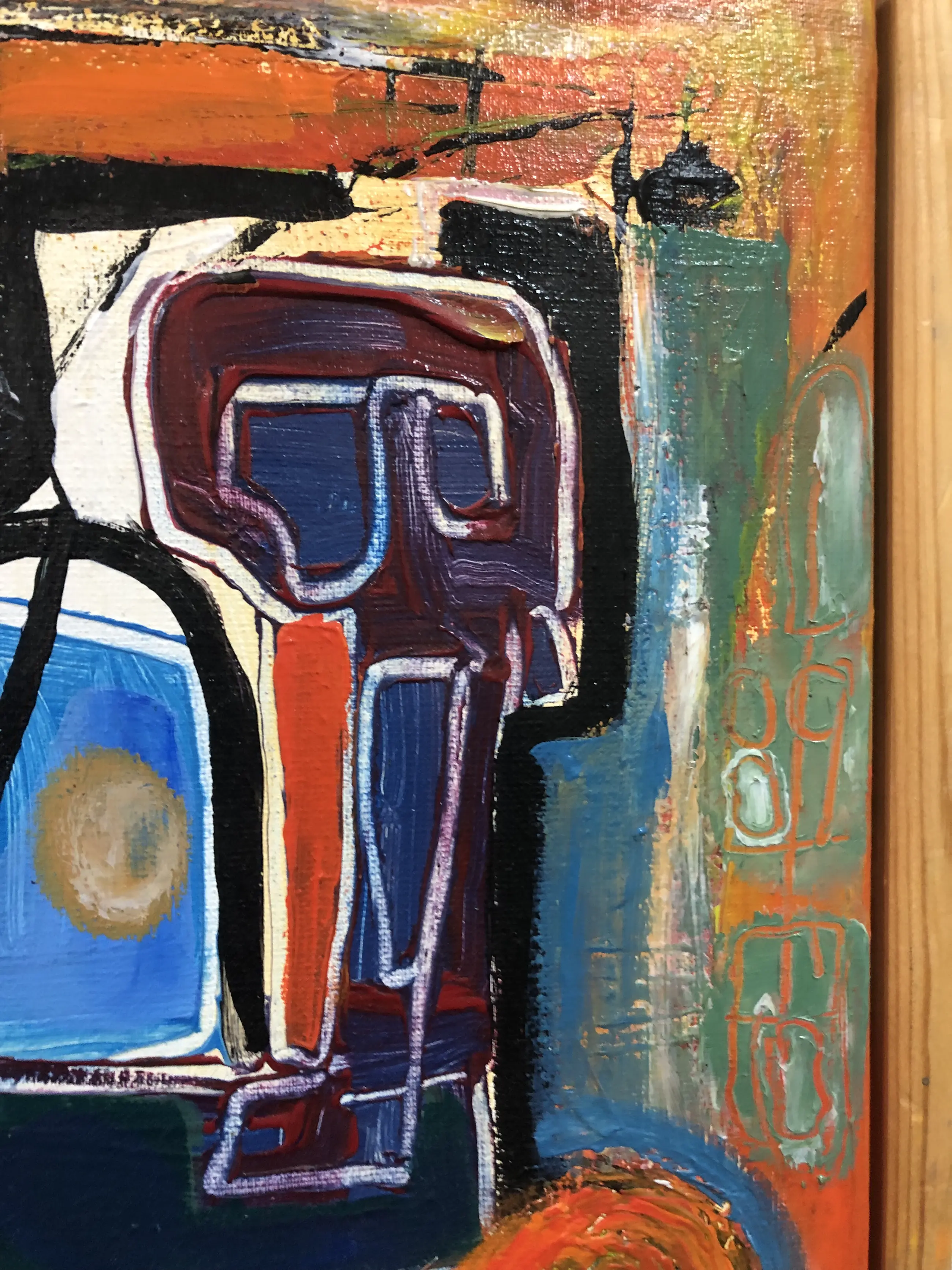Olieverf schilderij uit 1992. Staat nu in het atelier. Kan zo aan de muur