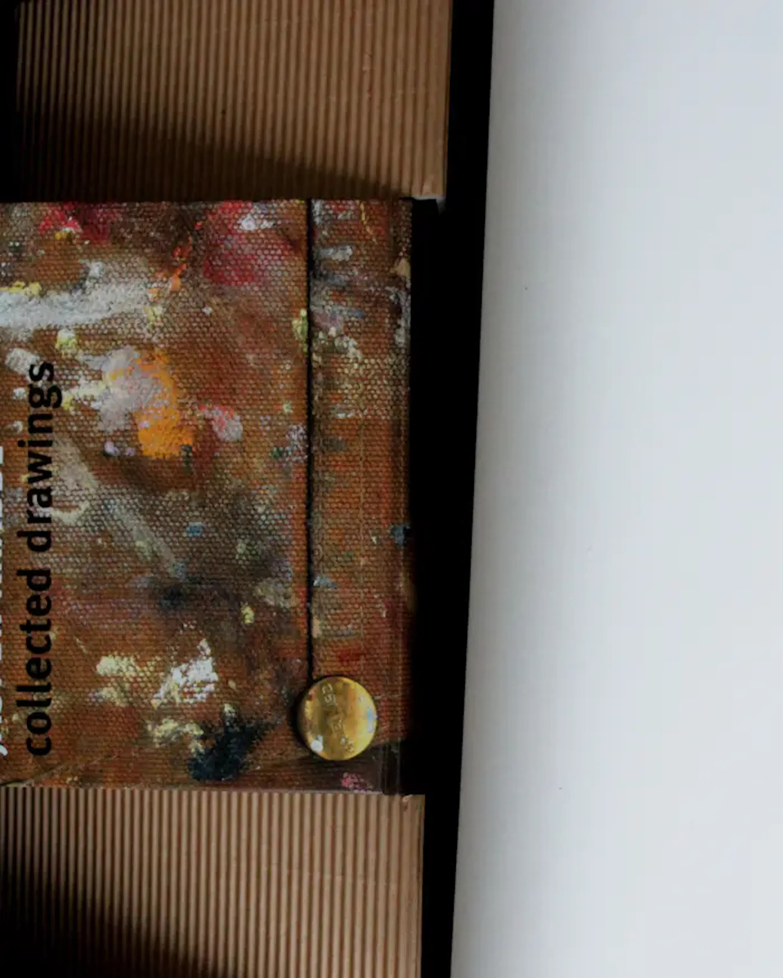 Grafiiek/werk zit opgerold bij doos. Het blad golf hierdoor.