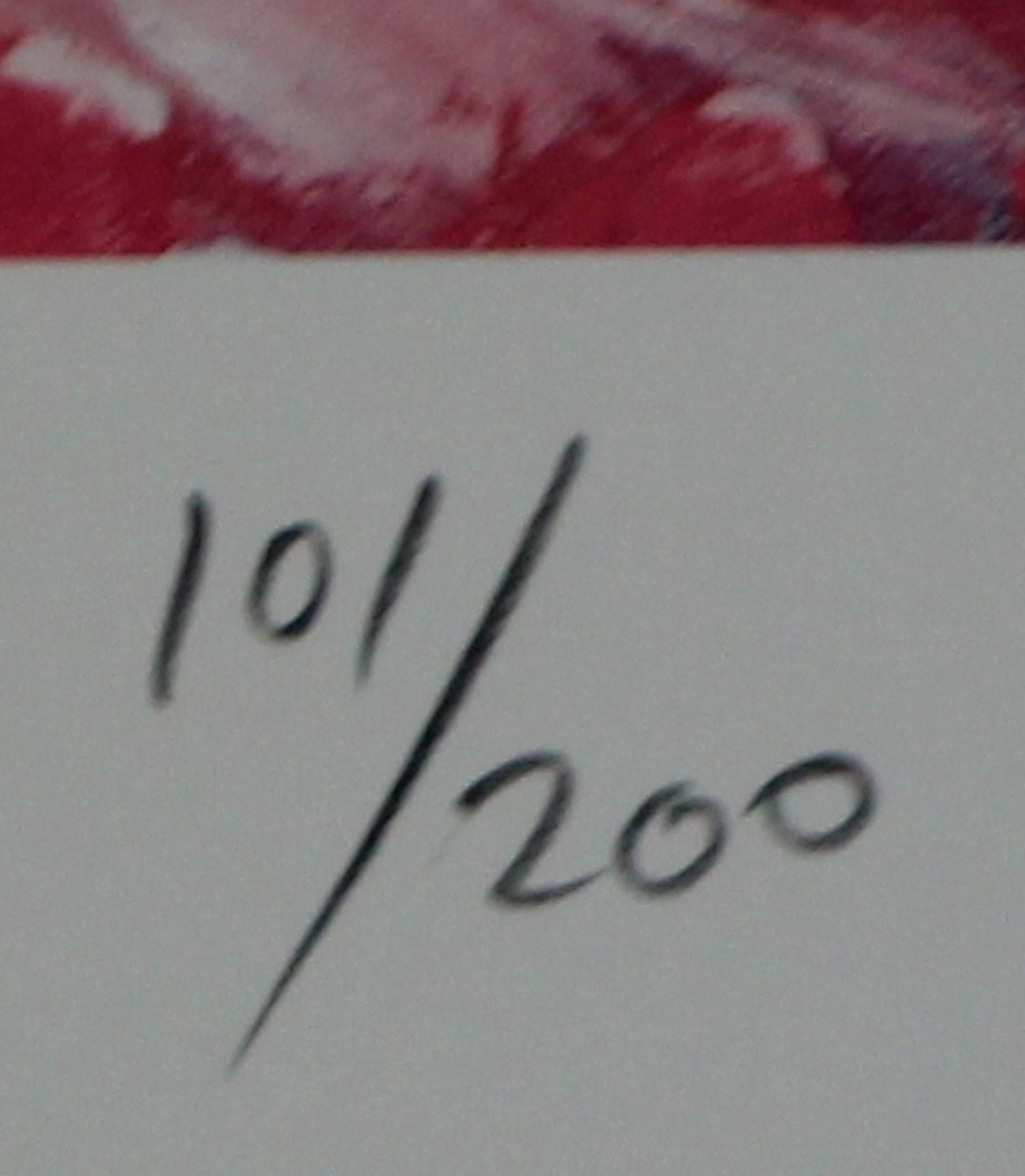 Zeefdruk van Jasper Krabbe. Afmetingen blad: H35 x b45cm. Afmetingen voorstelling: H22.5 x b37.5cm. Het werk is rechtsonder, met potlood, gesigneerd door de kunstenaar. De authenticiteit van het aangeboden werk wordt volledig gegarandeerd. Een certificaat van echtheid kan, op aanvraag, worden gemaild.
