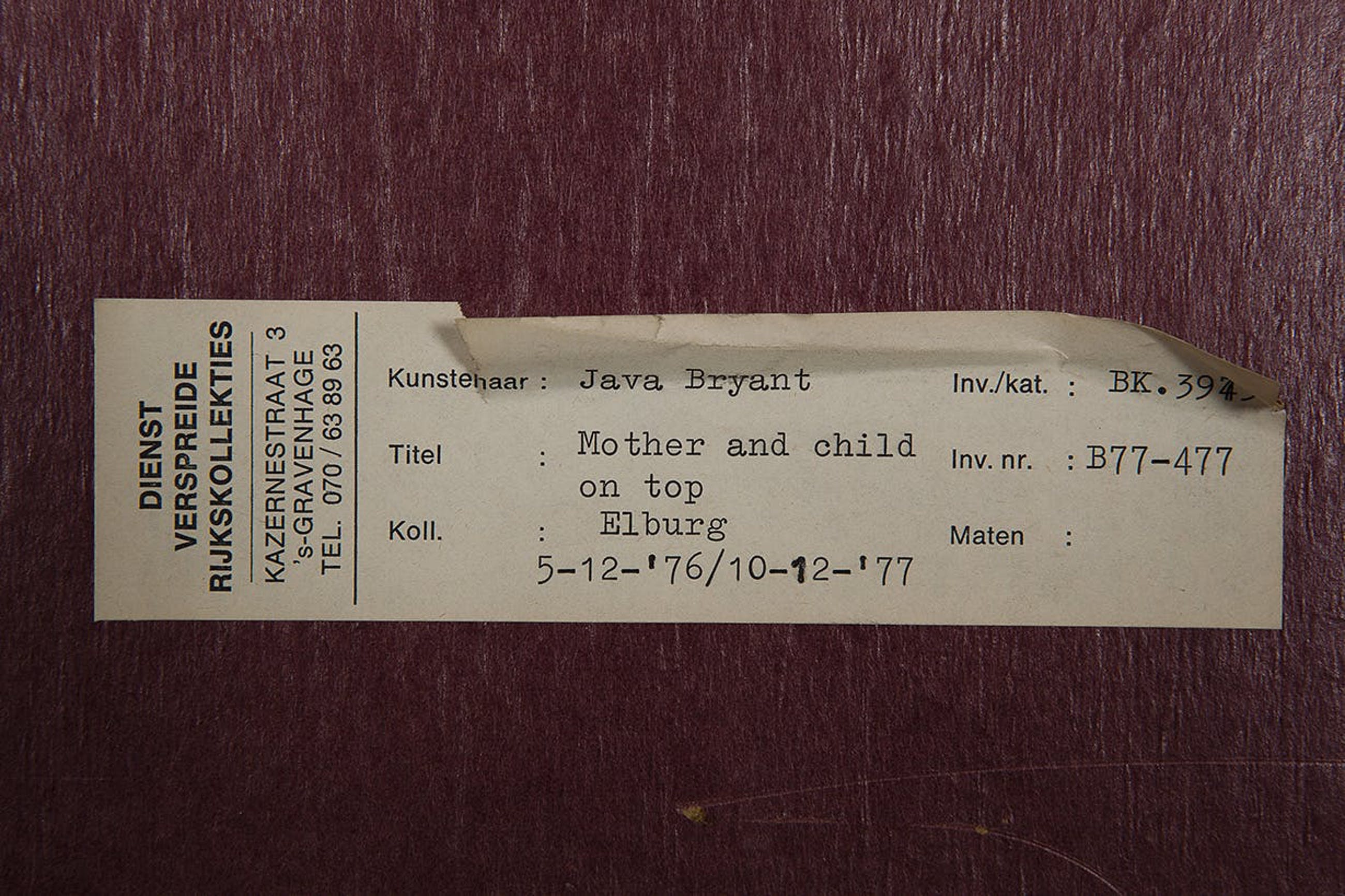 Herkomst: BKR Elburg (Het kunstwerk is afgevoerd uit de rijkscollectie in 2018)