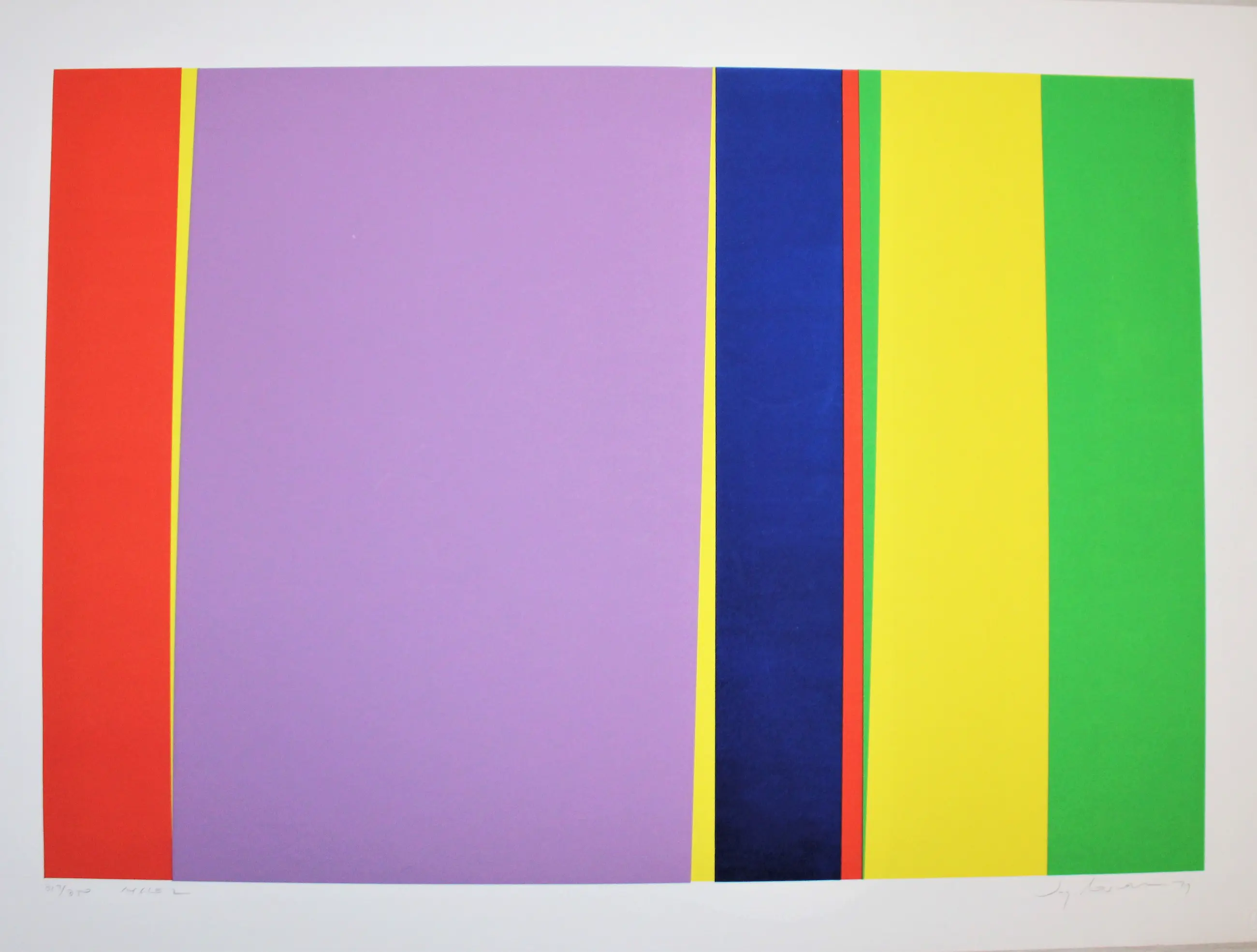 Jay Rosenblum, Amerikaan (1933-1989). Titel: "Cyclus 2" 1979. Techniek: zeefdruk op geschept papier. Beperkte oplage van 250. Handgesigneerd en genummerd in potlood. Zeer goede staat: Originele staat ongewijzigd, geen gebreken. Is nooit ingelijst geweest.