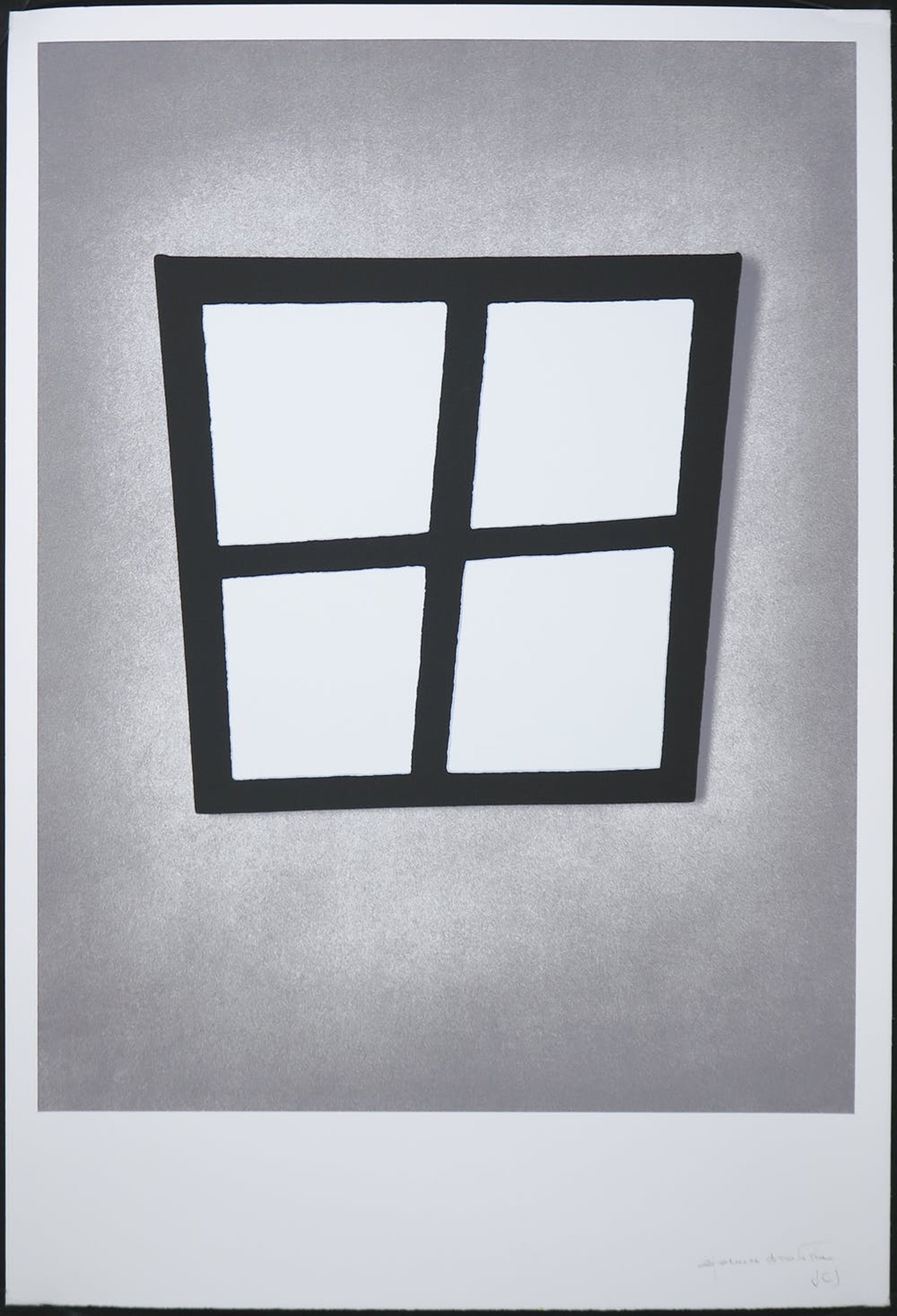 JCJ VANDERHEYDEN wist met minimale vormen, zoals vlakken en strepen een beeld met optimale spanning te creeeren. Voor deze zeefdruk werkte hij alleen met zwart-wit tinten, maar door de suggestie van licht wordt het werk zeer ruimtelijk. De vlakverdeling doet denken aan een venster, een belangrijk motief in zijn werk. Deze zeefdruk maakt onderdeel uit van een serie werken op papier met de titel Deshima ’88 ’89.