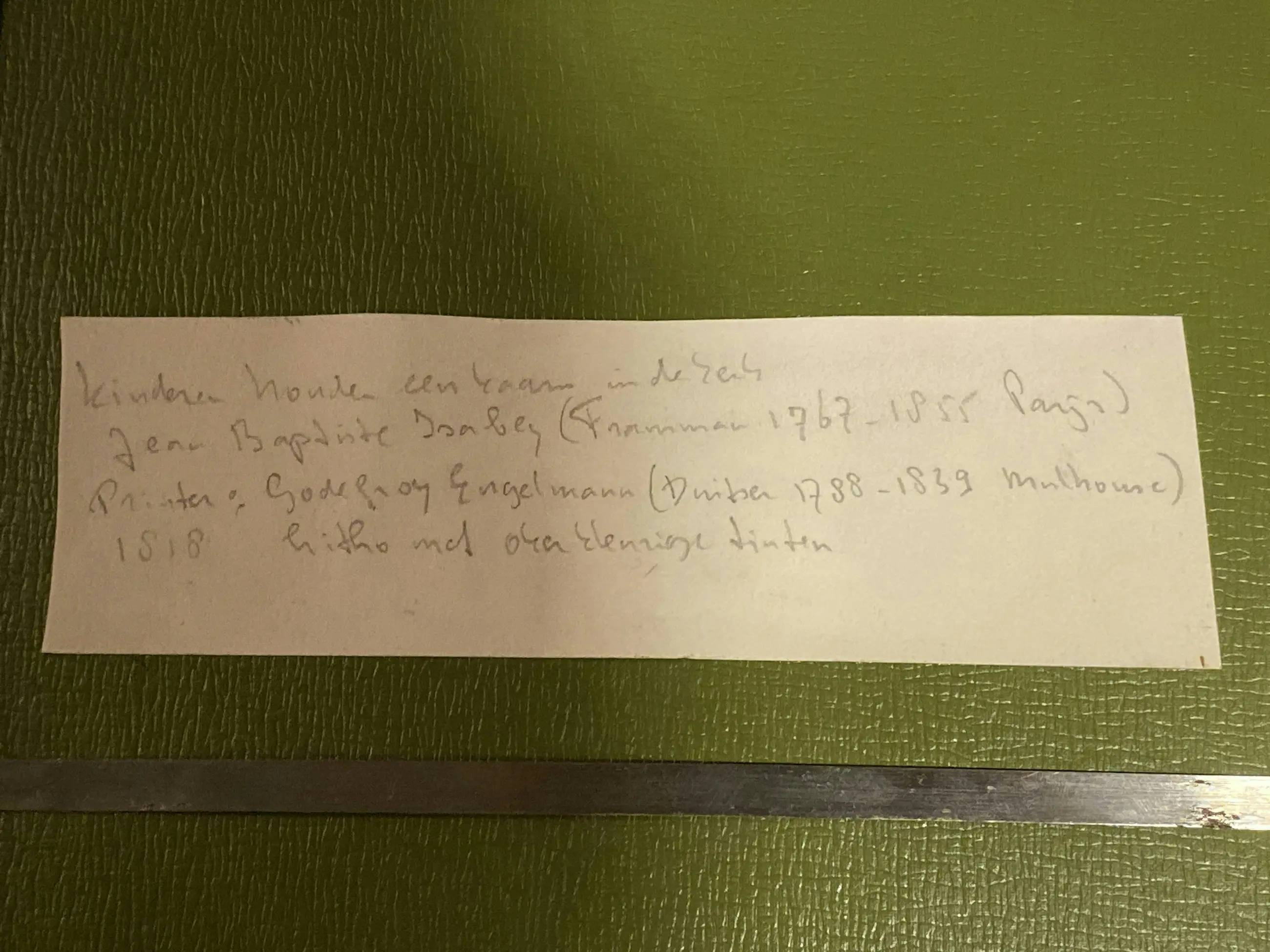 Papier vertoont authentieke verouderingskenmerken passend bij vroege 19e-eeuwse drukken. Ingelijst onder passe-partout. | |||||||