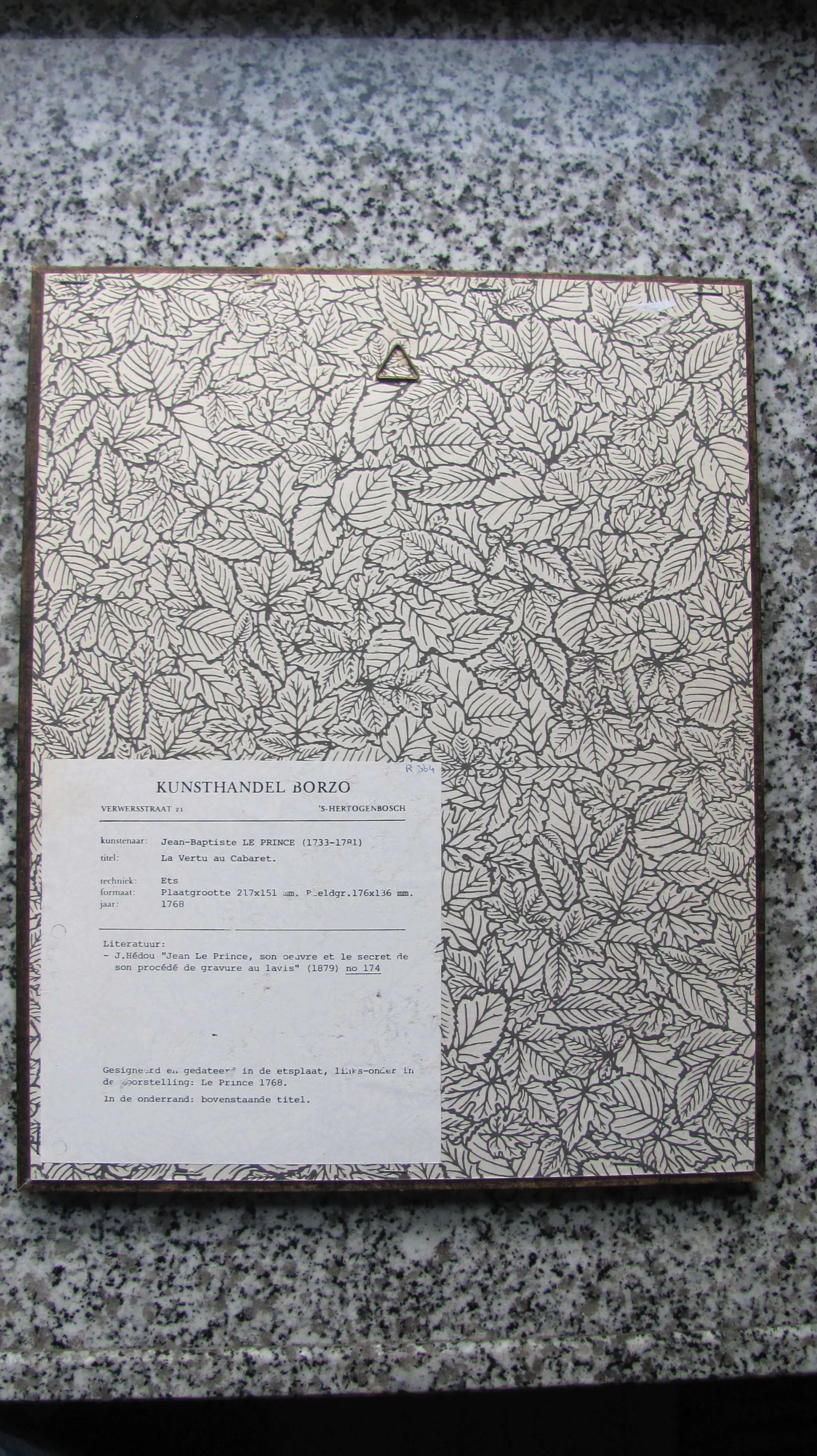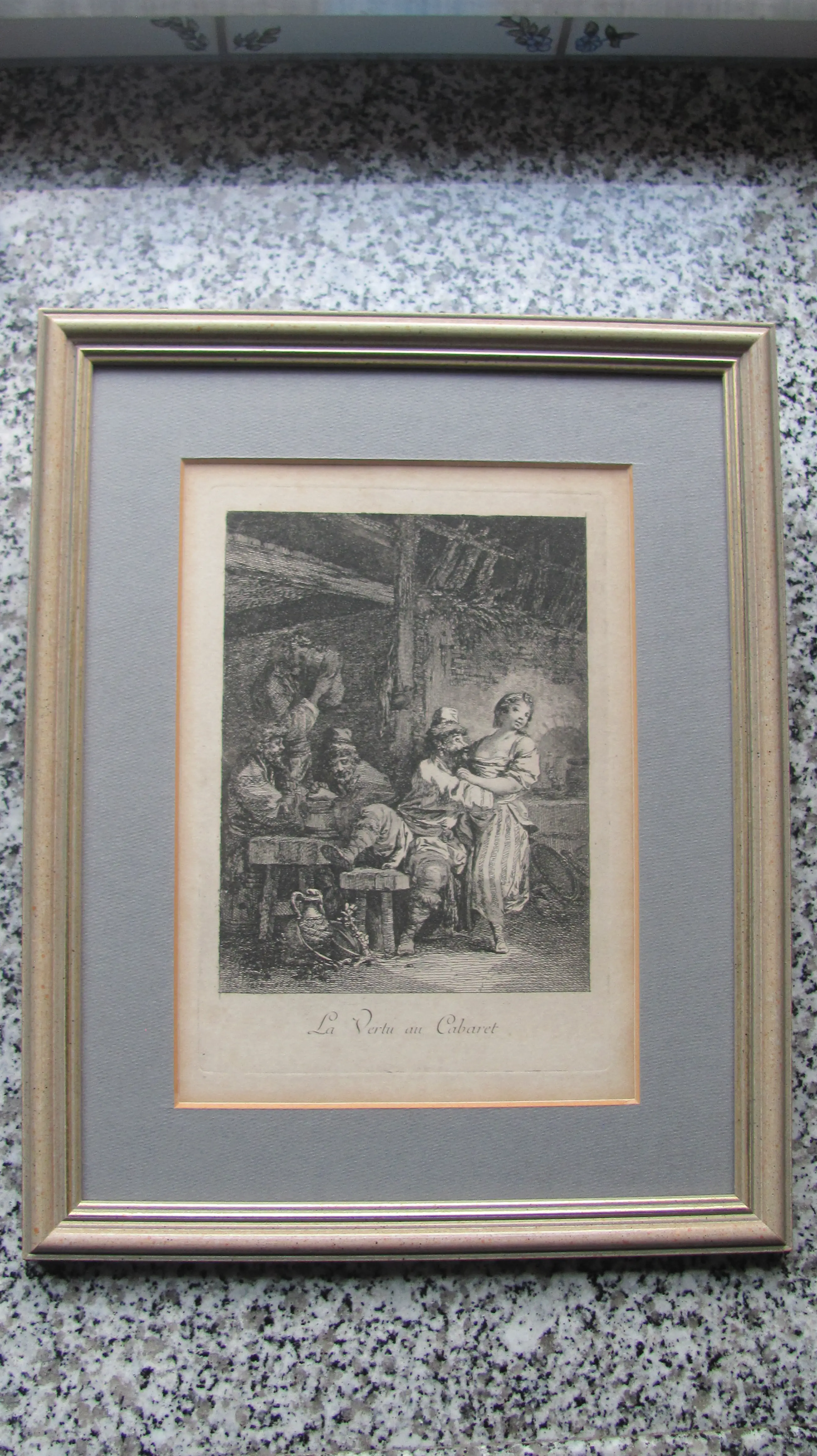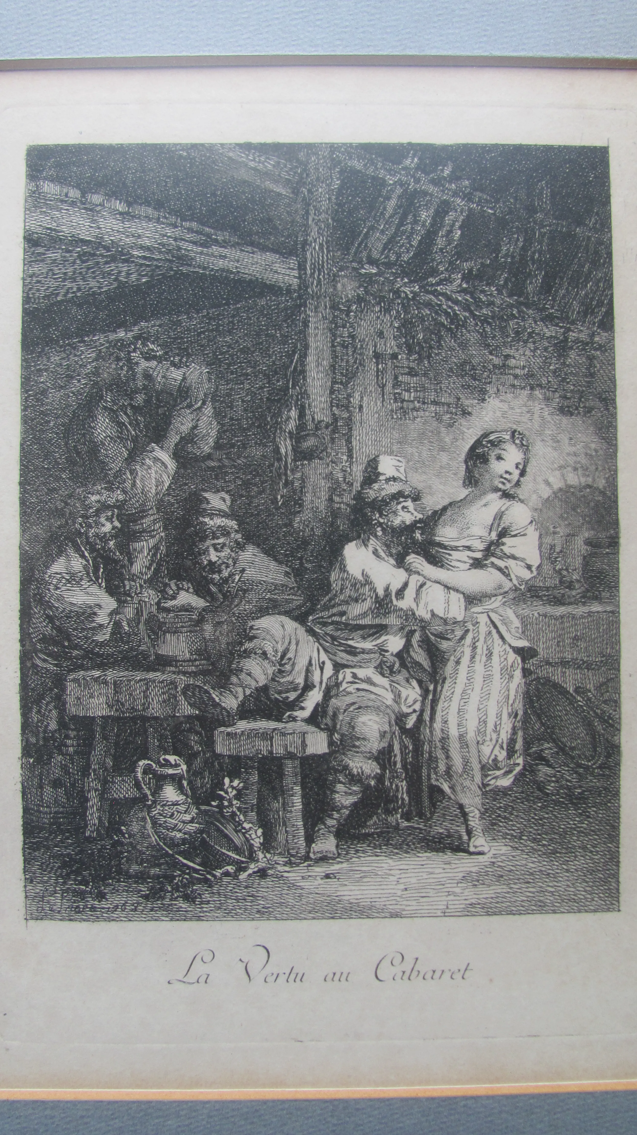 Licht erotische kroegscene van Jean-Baptiste le Prince. Ets, lijst, passepartout en ontspiegelend glas in prima staat.