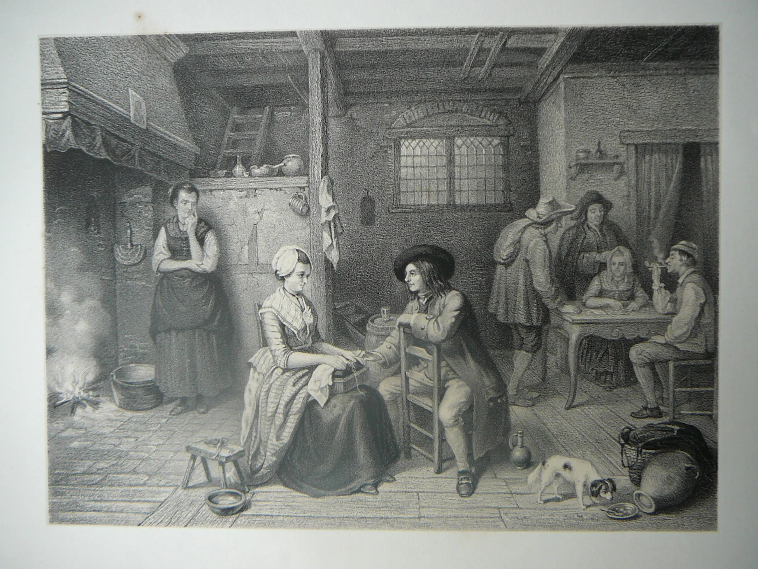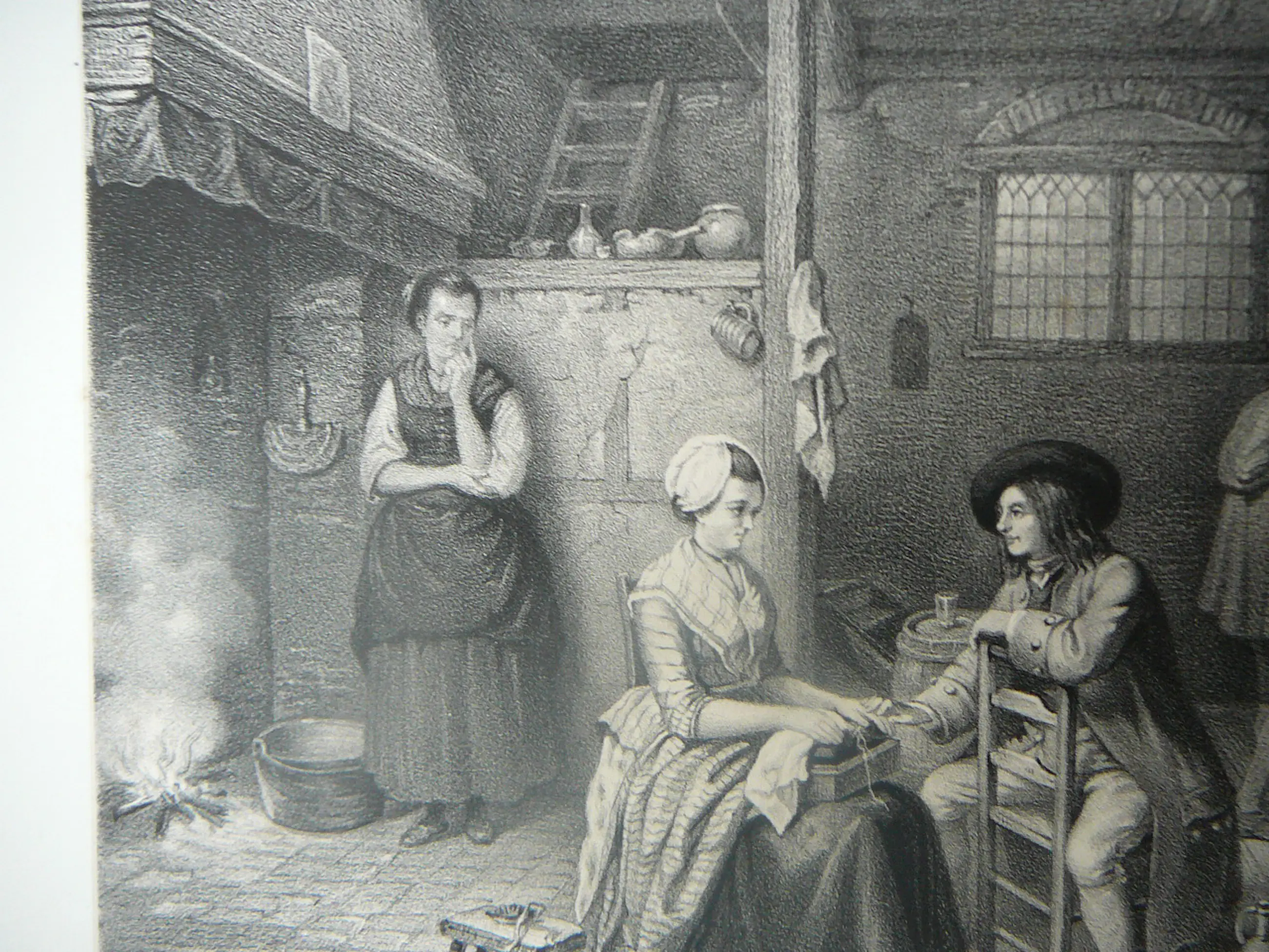 Mooie Litho naar J.B.Madou boerenbinnenhuis in de 18e eeuw